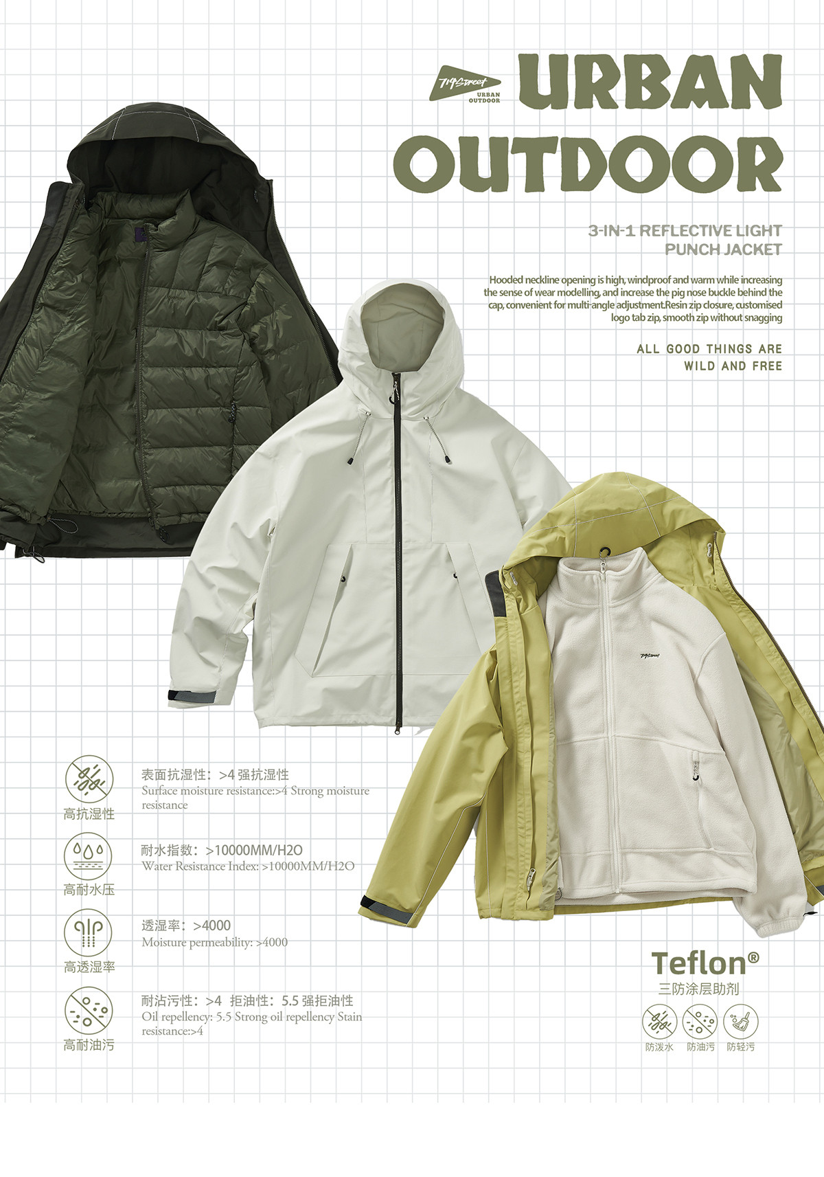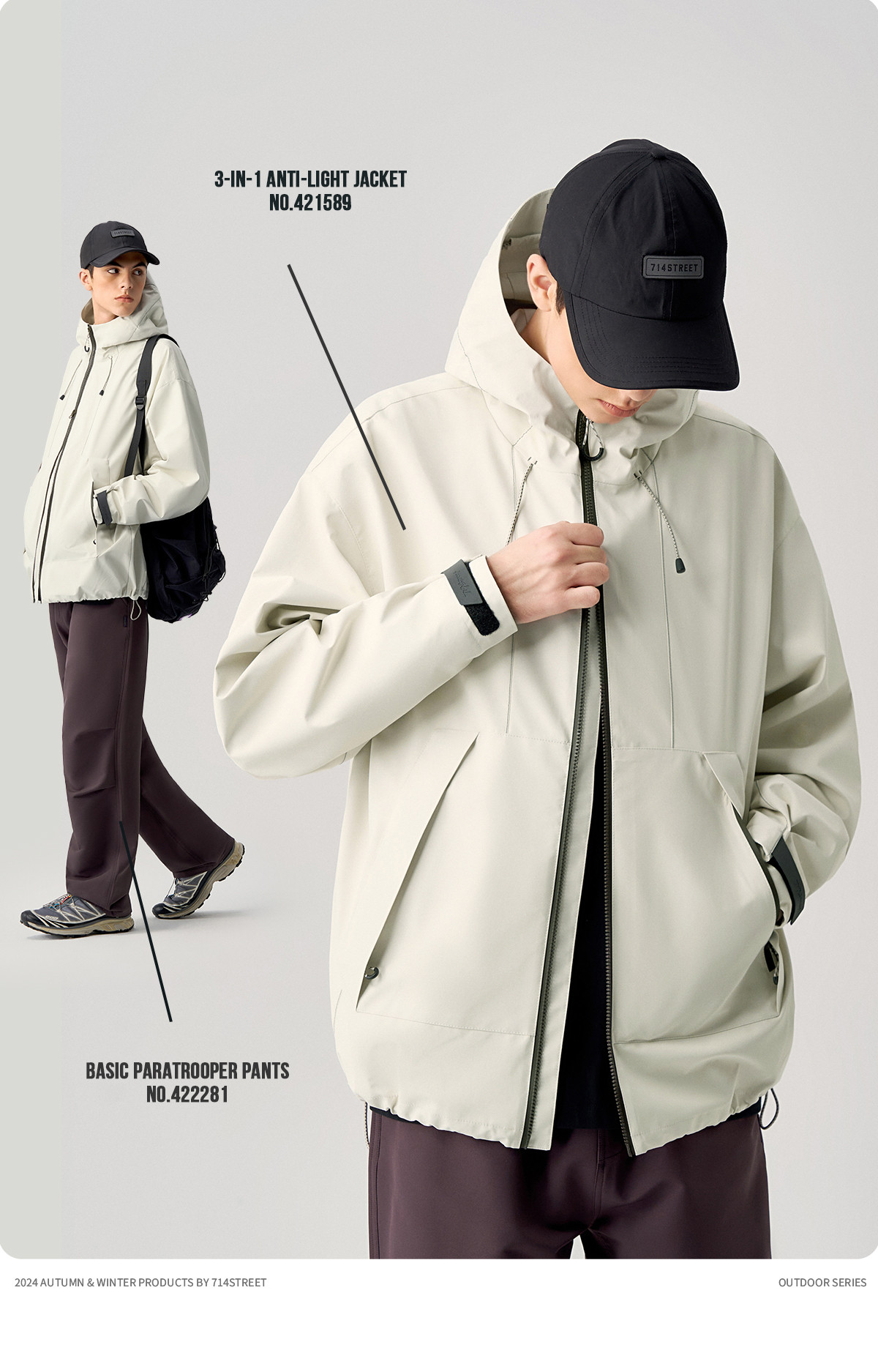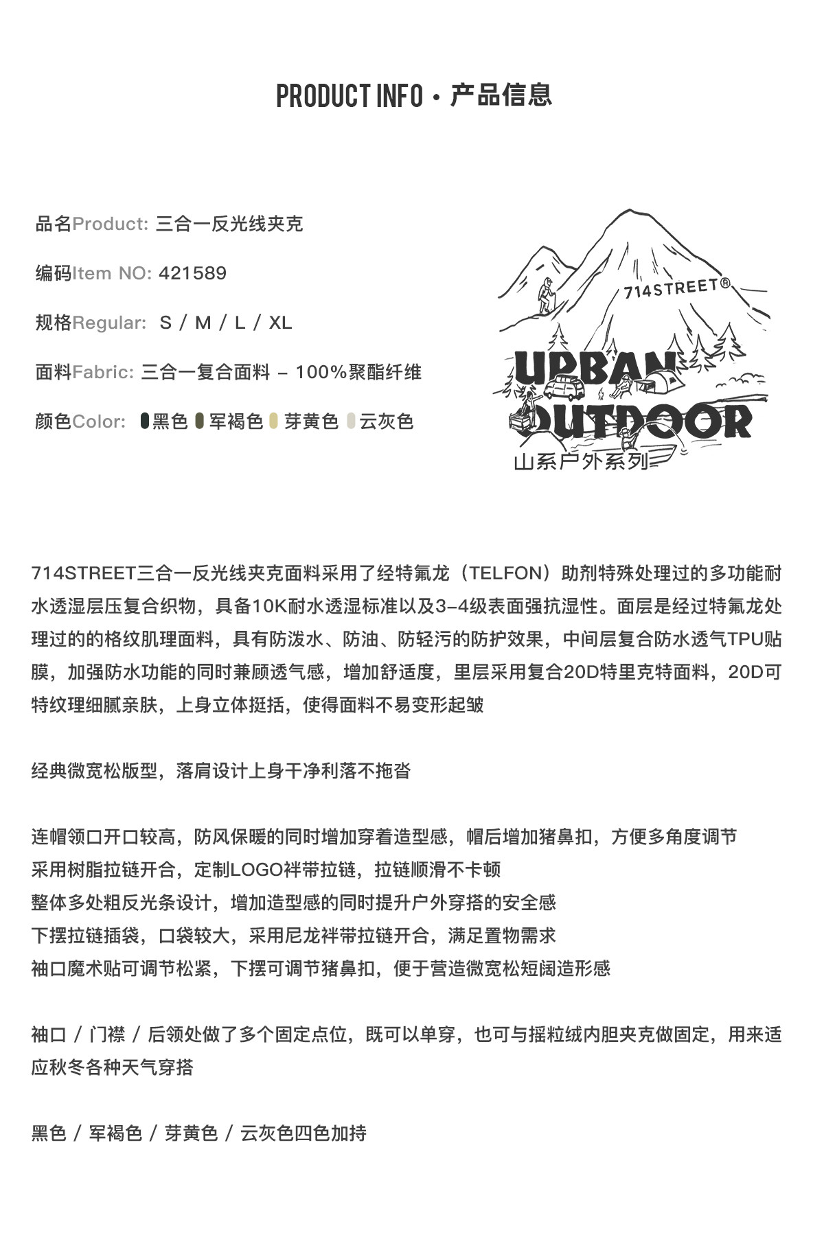 714street山系户外反光防风三合一冲锋衣外套男秋季新款宽松夹克