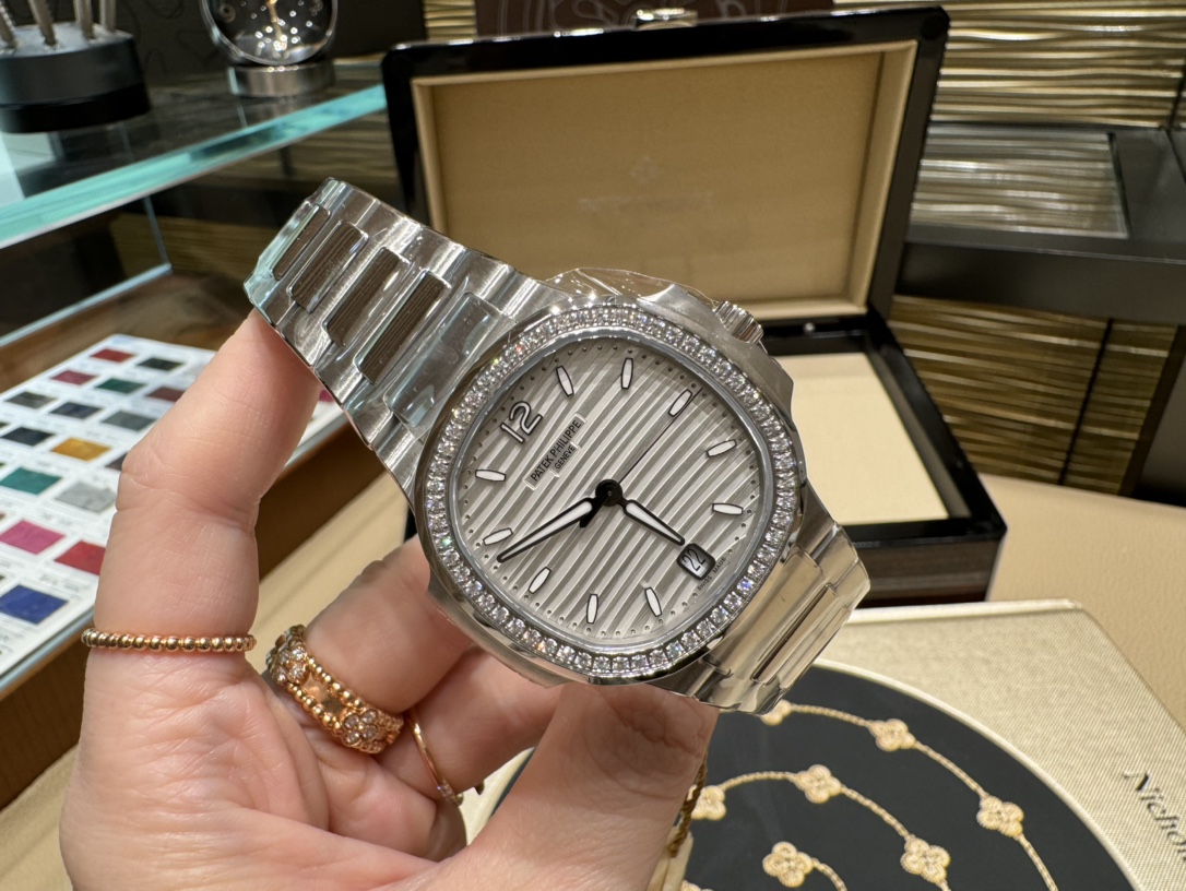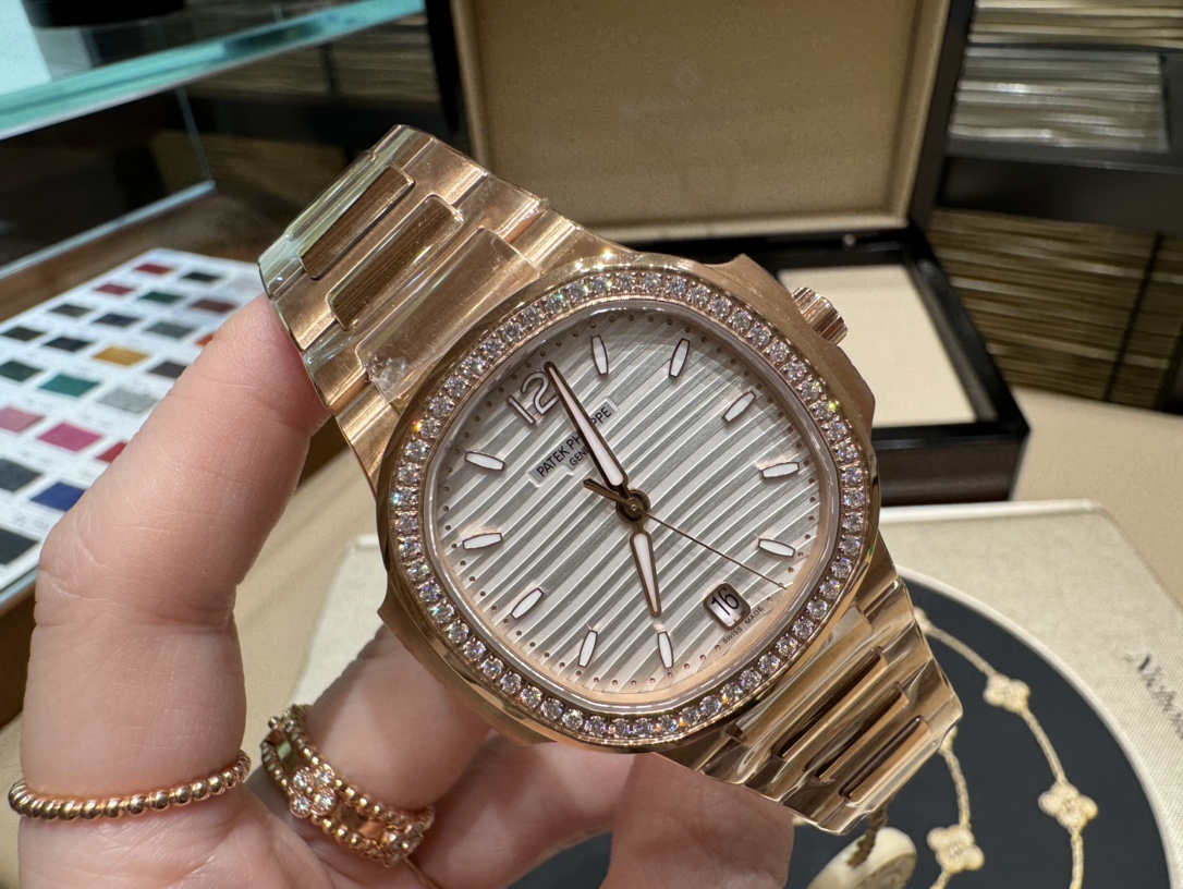 SH024 百达翡丽鹦鹉螺7118系列银色钻圈、玫瑰金钻圈 女表35.2mm自动机械机芯(SH)