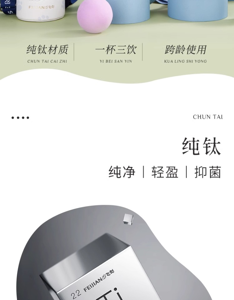 【森哥优选】飞剑 纯钛儿童保温水杯带吸管一杯两用斜挎便捷小学生钛杯