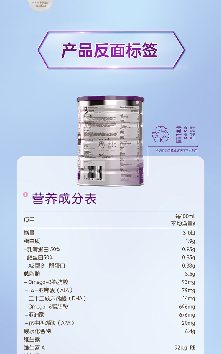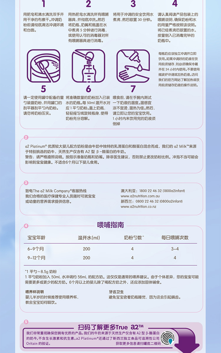 澳洲A2婴幼儿配方奶粉2段900g(适合6-12个月)