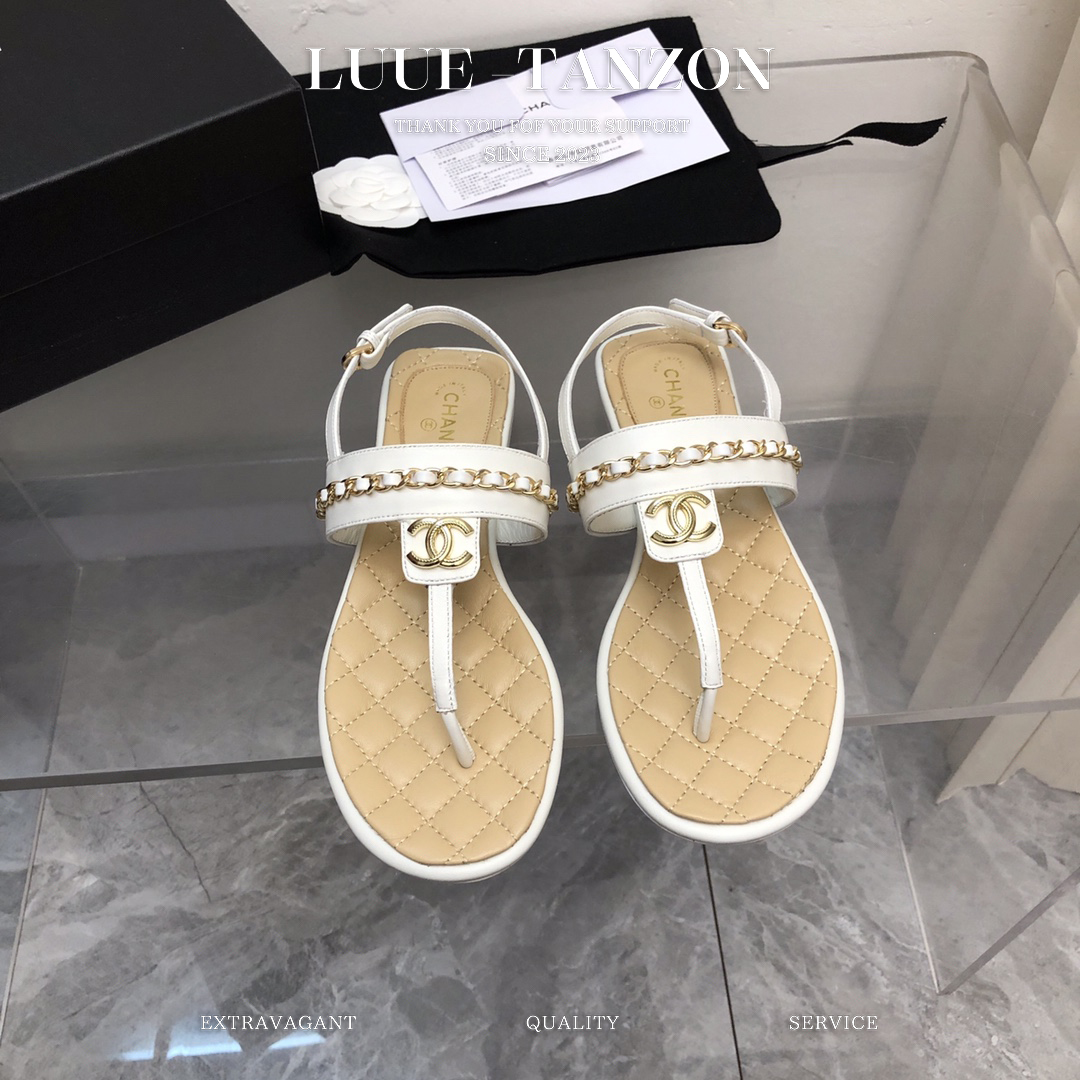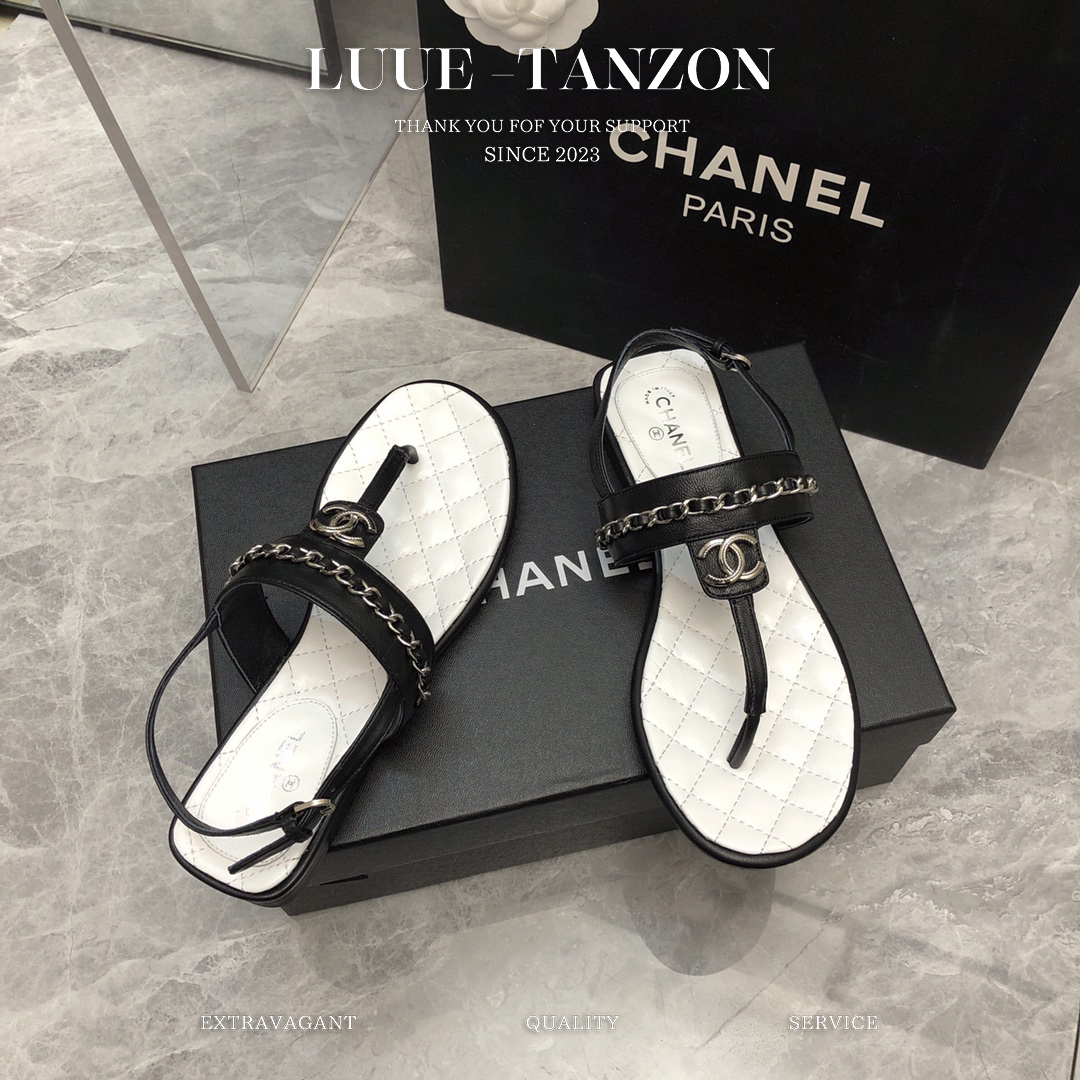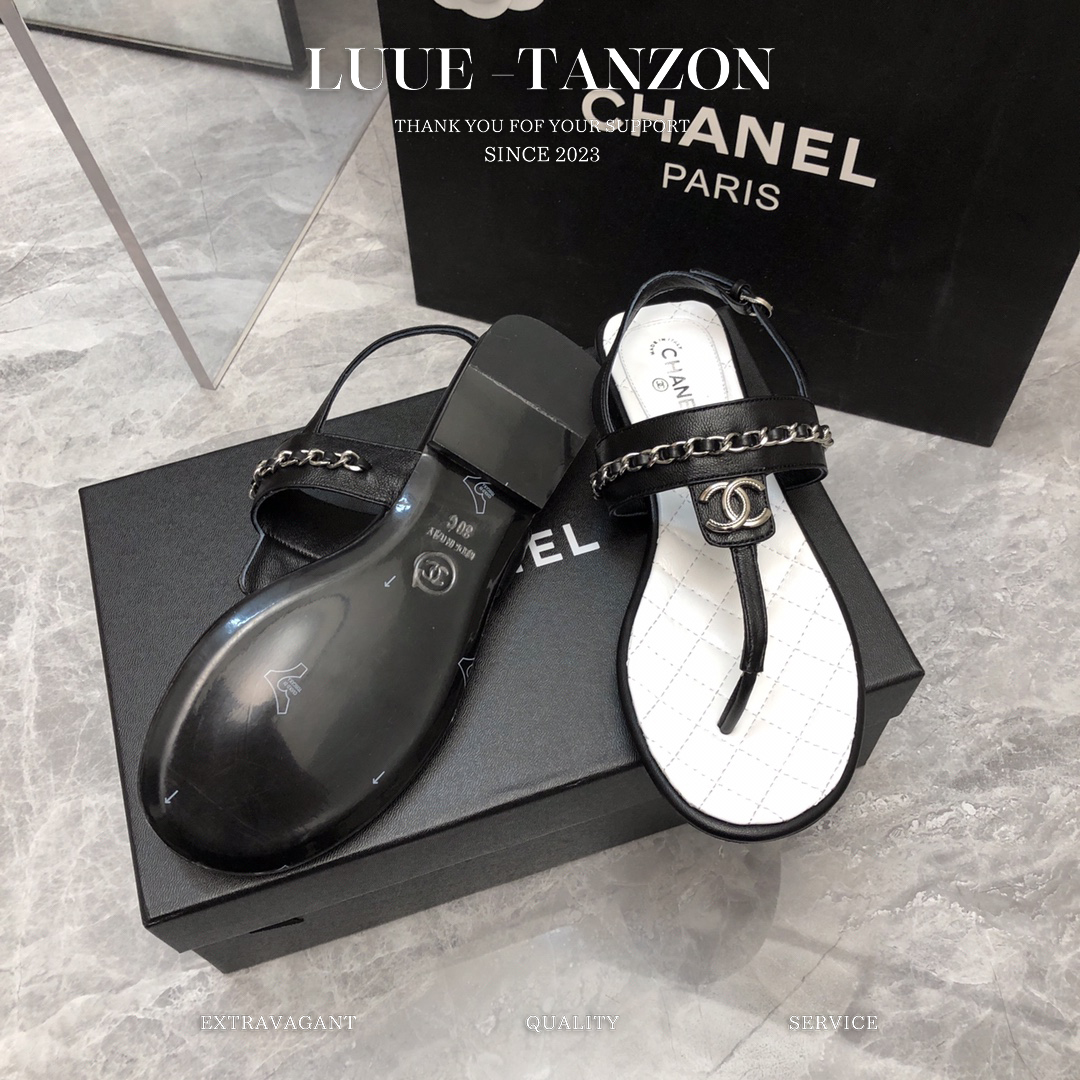 金属链条点缀显得整个人凉鞋贵贵的哟