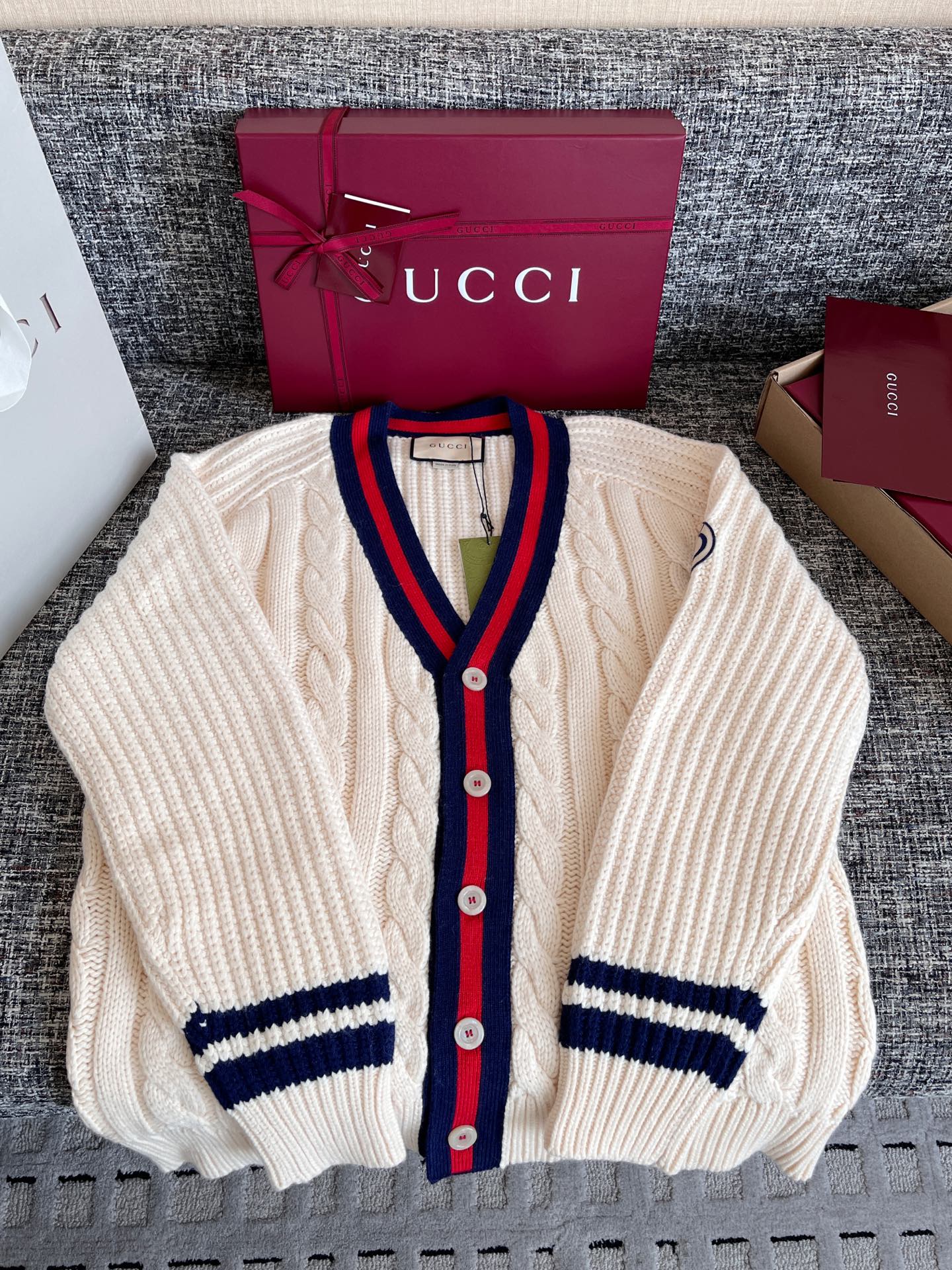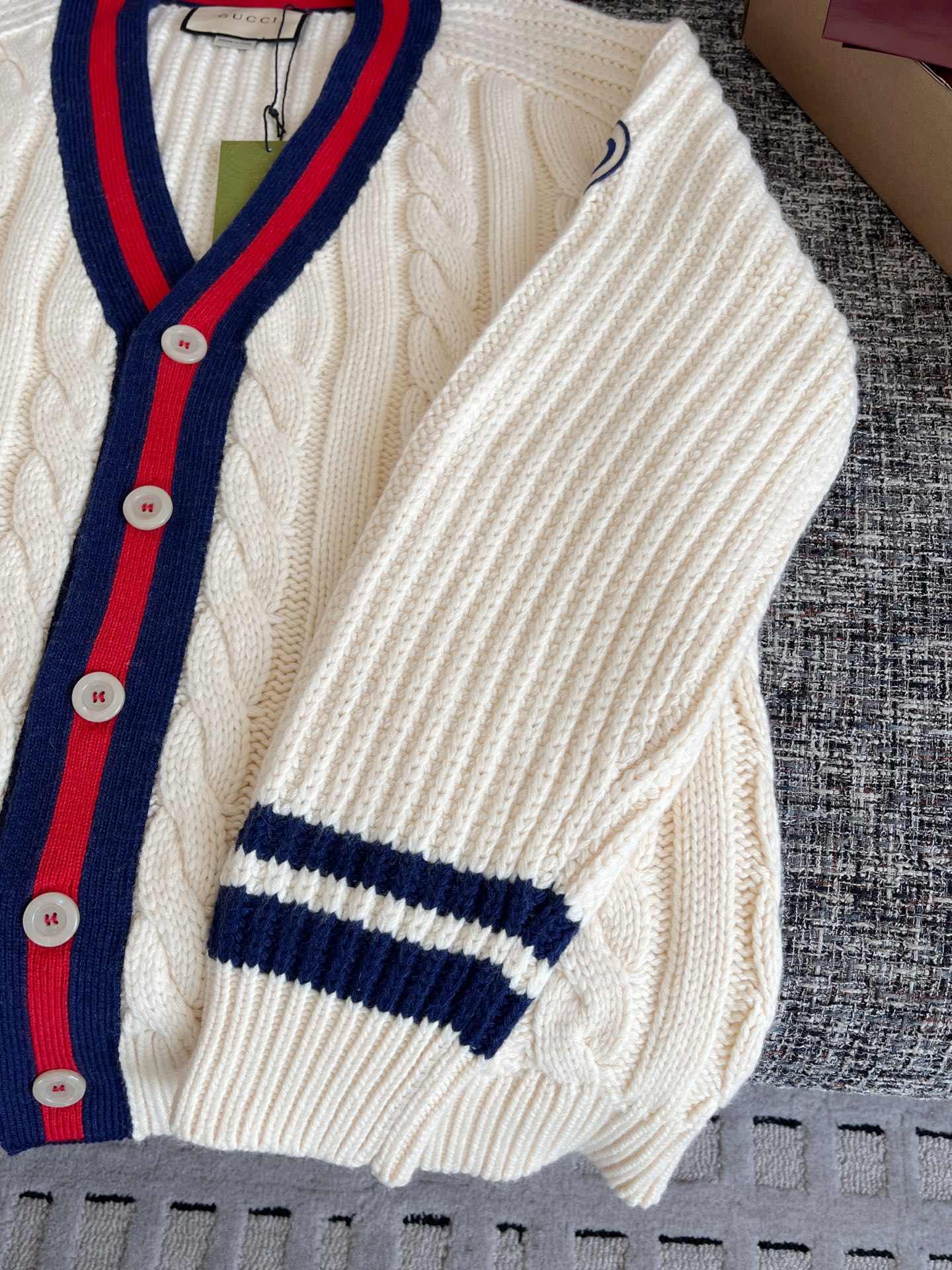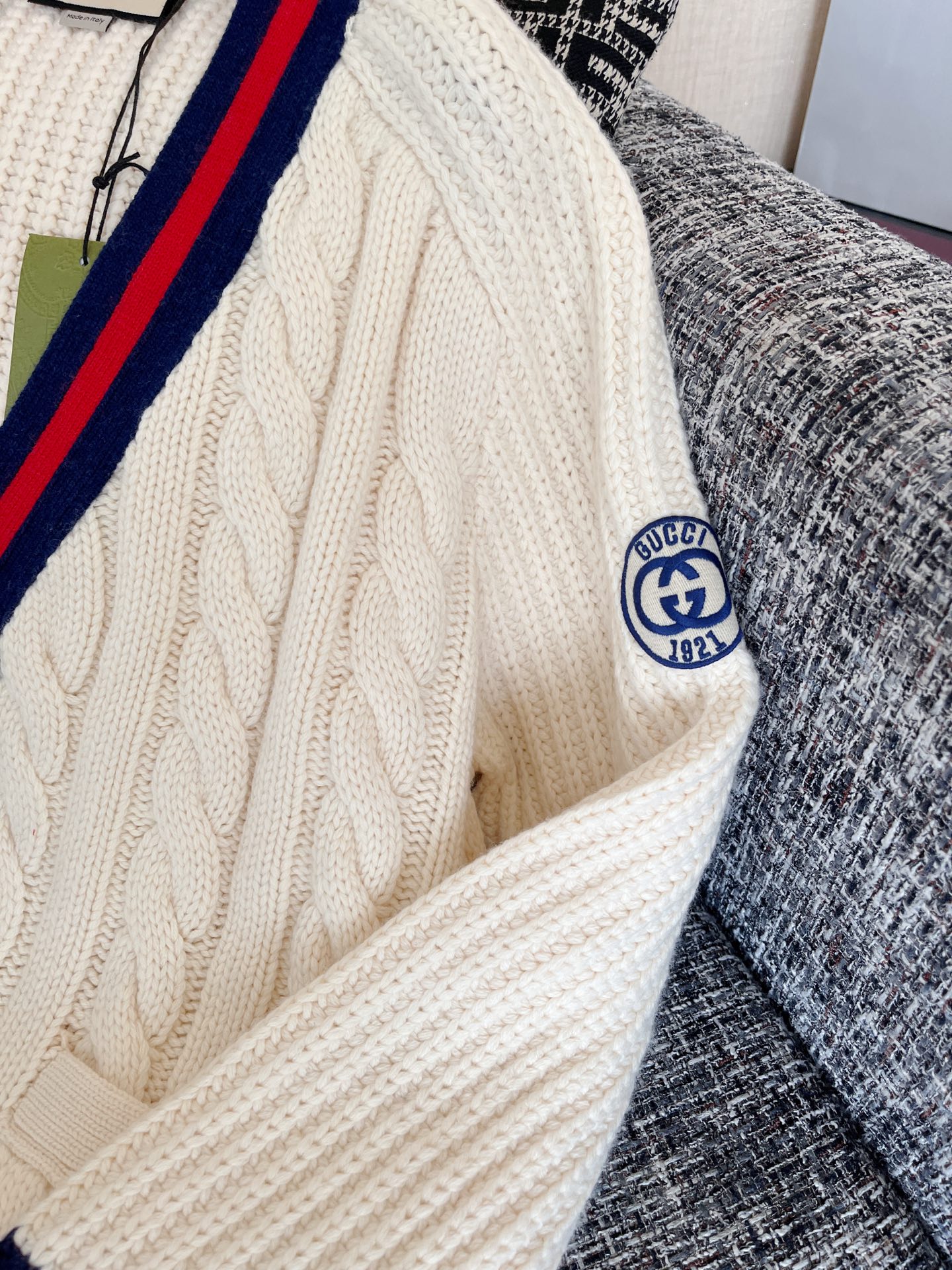 Gucci古驰 25早秋新款织带绞花针织开衫🐮12400购买Zp拆解打造,订织订染美利奴进口面料🐮真正用到100%羊毛纱线织布做到对版出货💪工艺放大看细节除还原度接近98以上 做工也无敌了🔥真正做到1:1还原 直接闭着眼购买👀码数:S M L XL