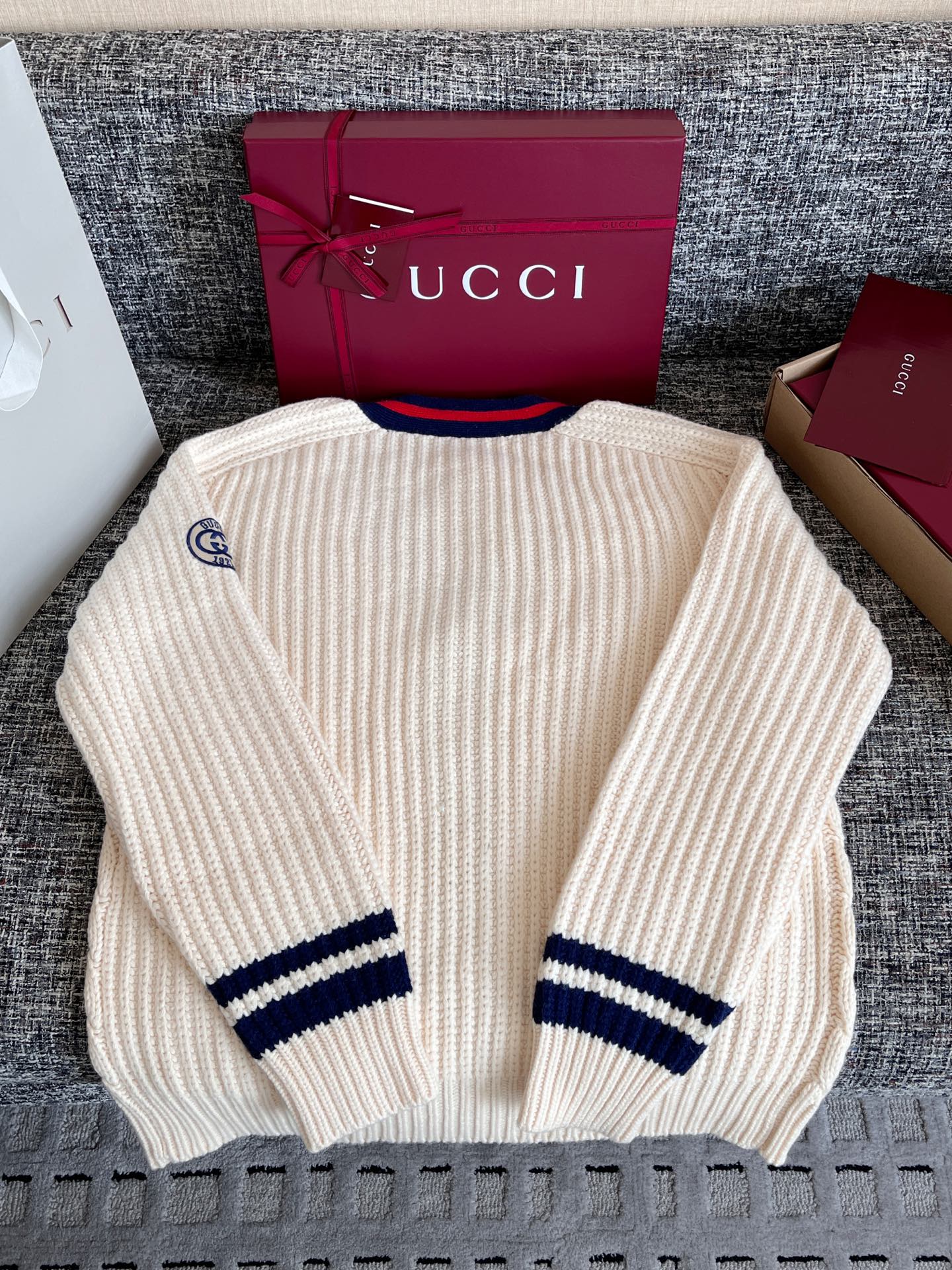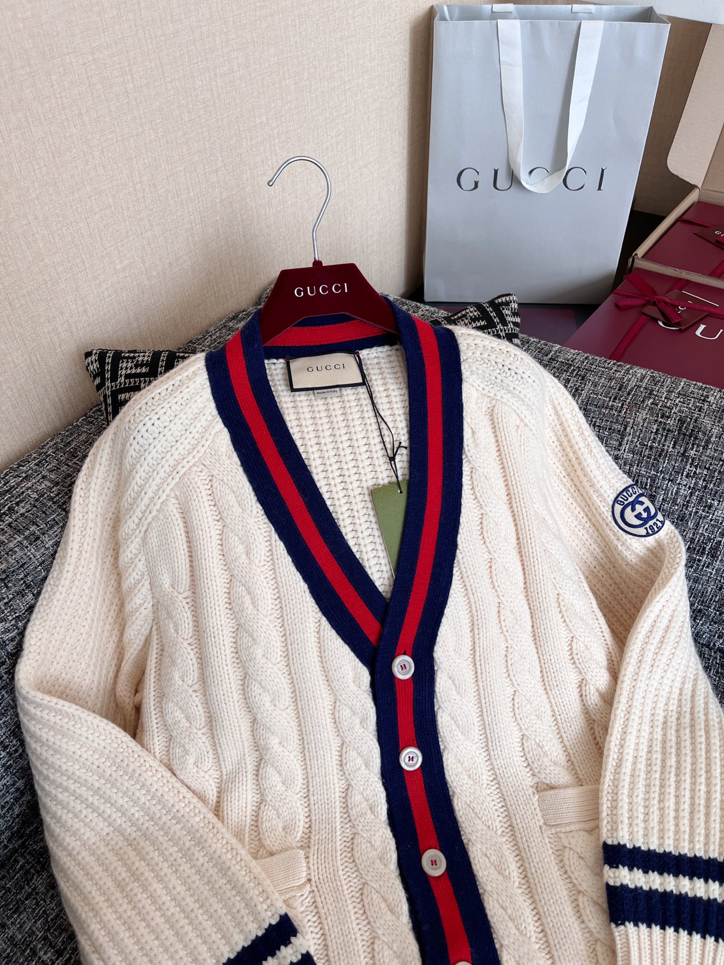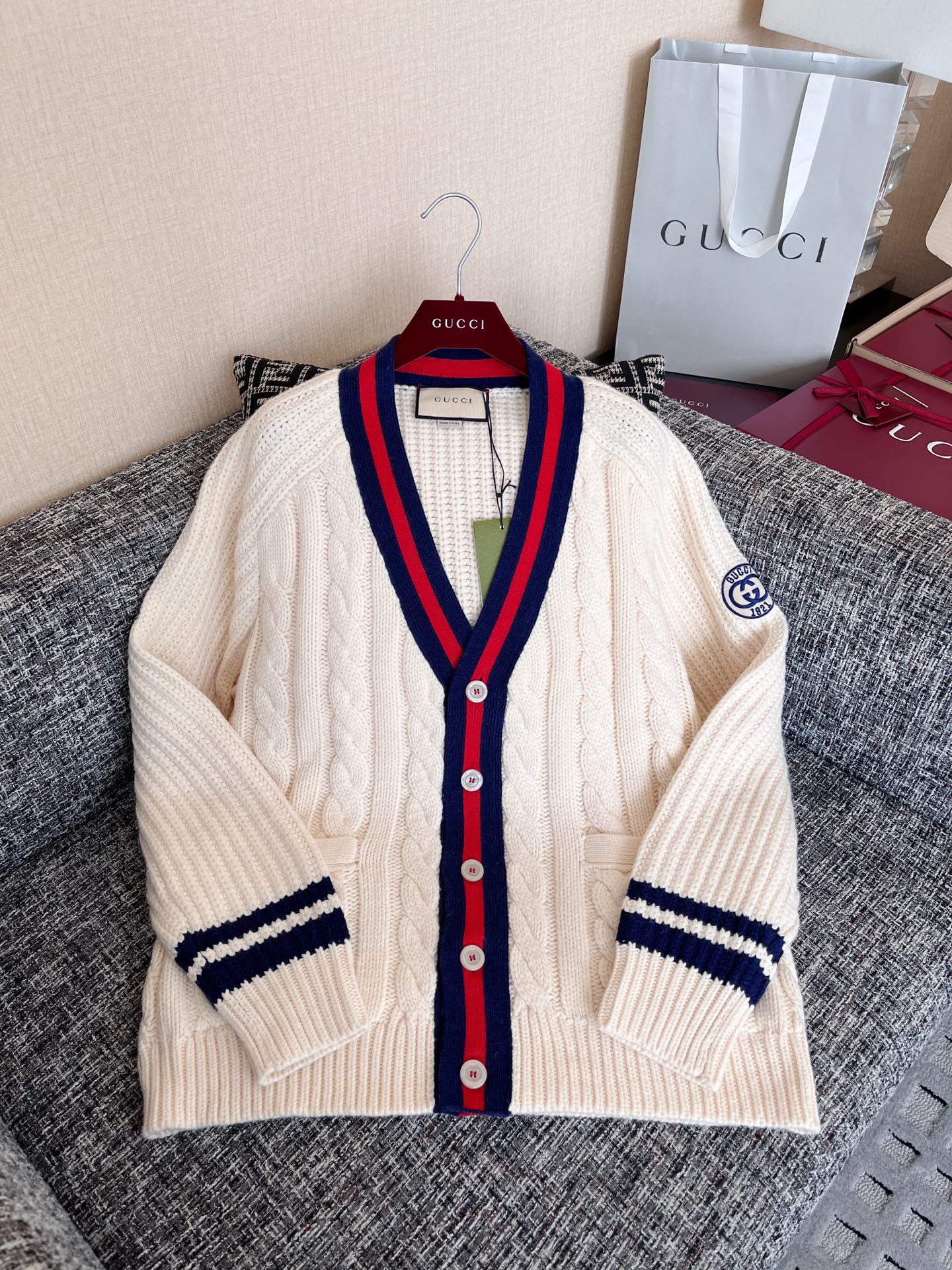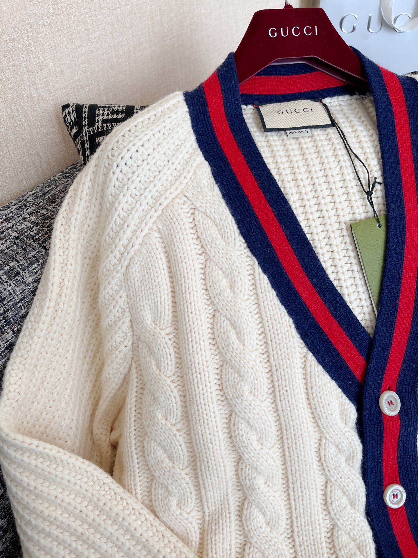 Gucci古驰 25早秋新款织带绞花针织开衫🐮12400购买Zp拆解打造,订织订染美利奴进口面料🐮真正用到100%羊毛纱线织布做到对版出货💪工艺放大看细节除还原度接近98以上 做工也无敌了🔥真正做到1:1还原 直接闭着眼购买👀码数:S M L XL