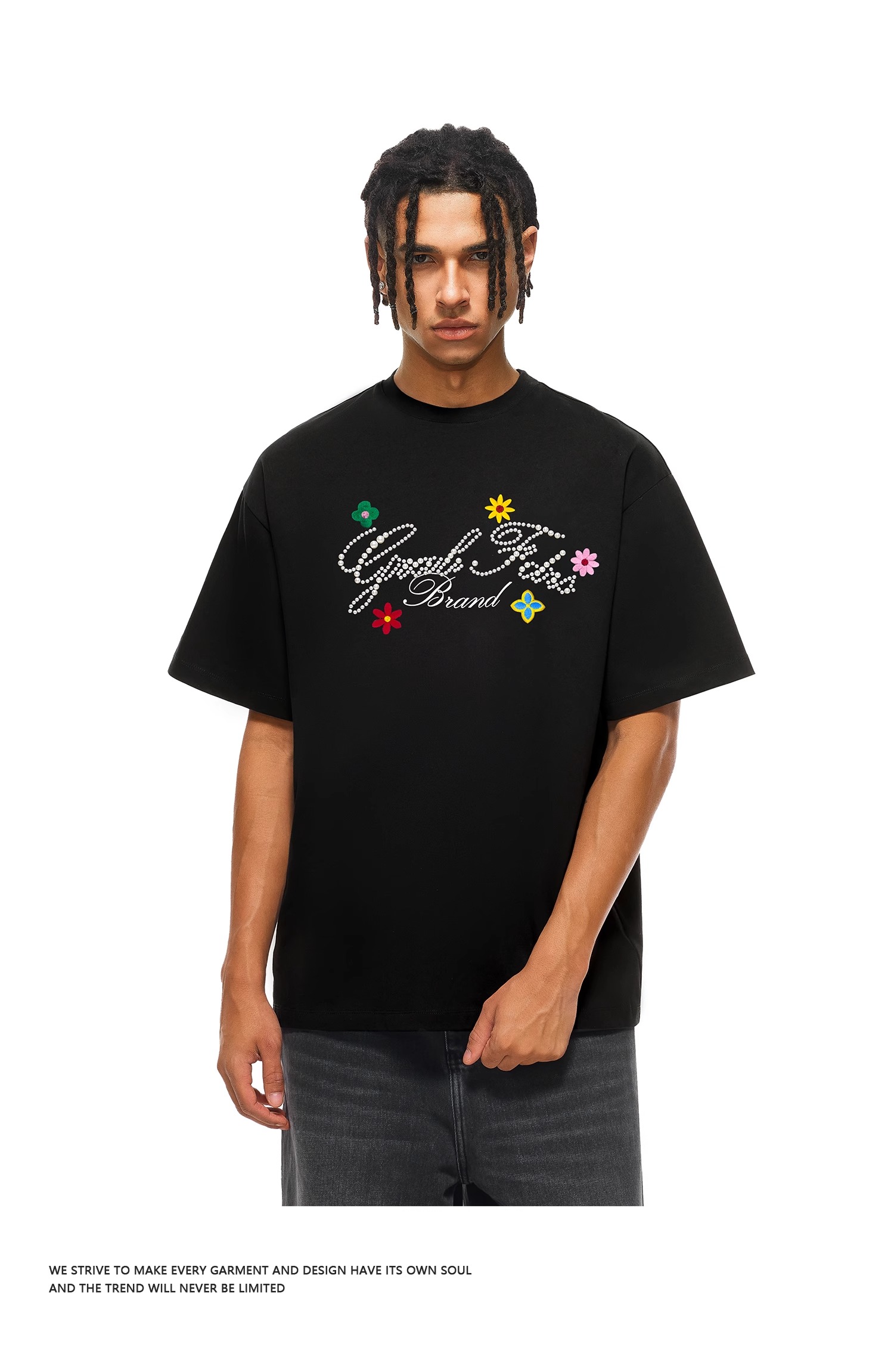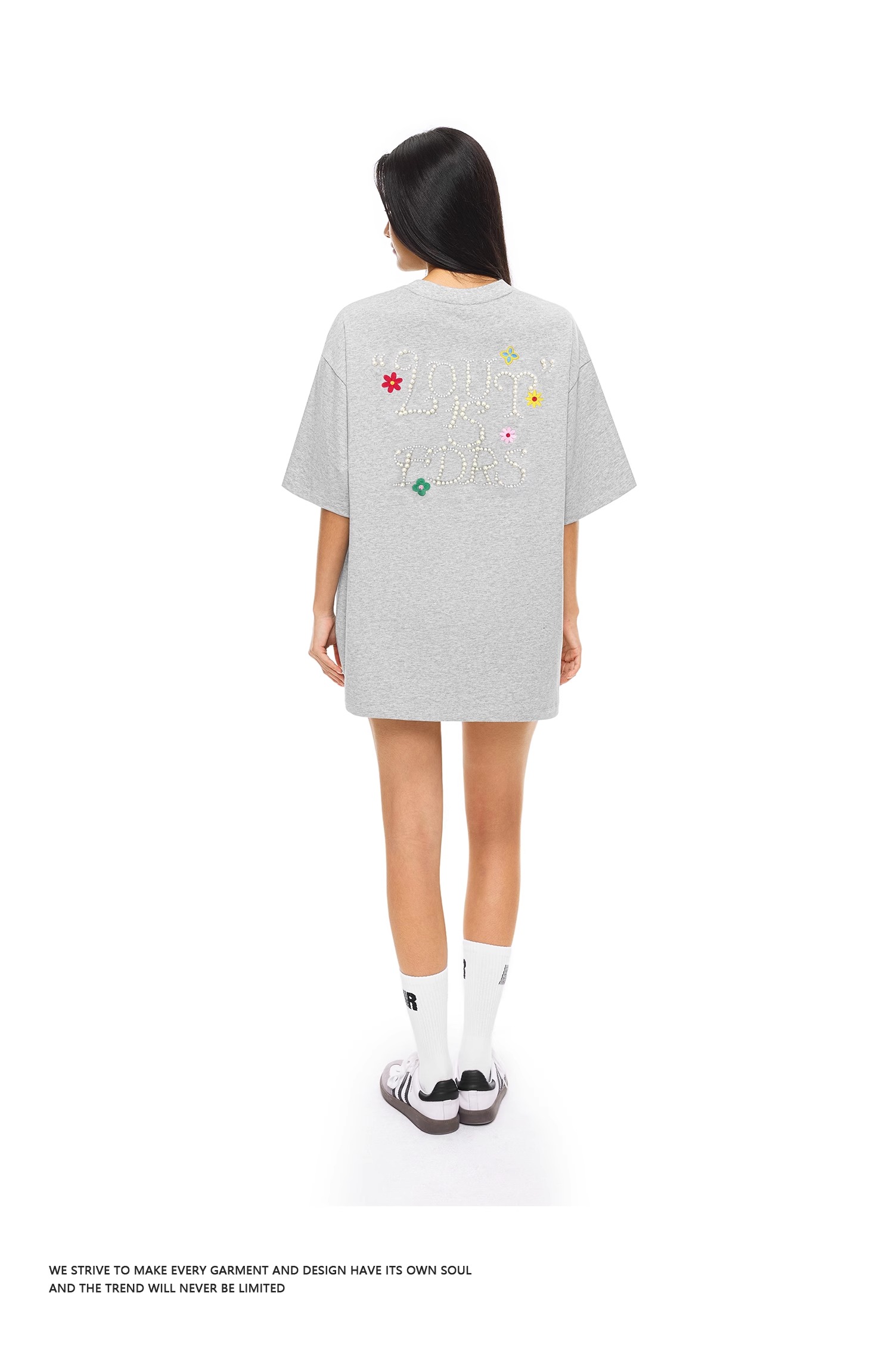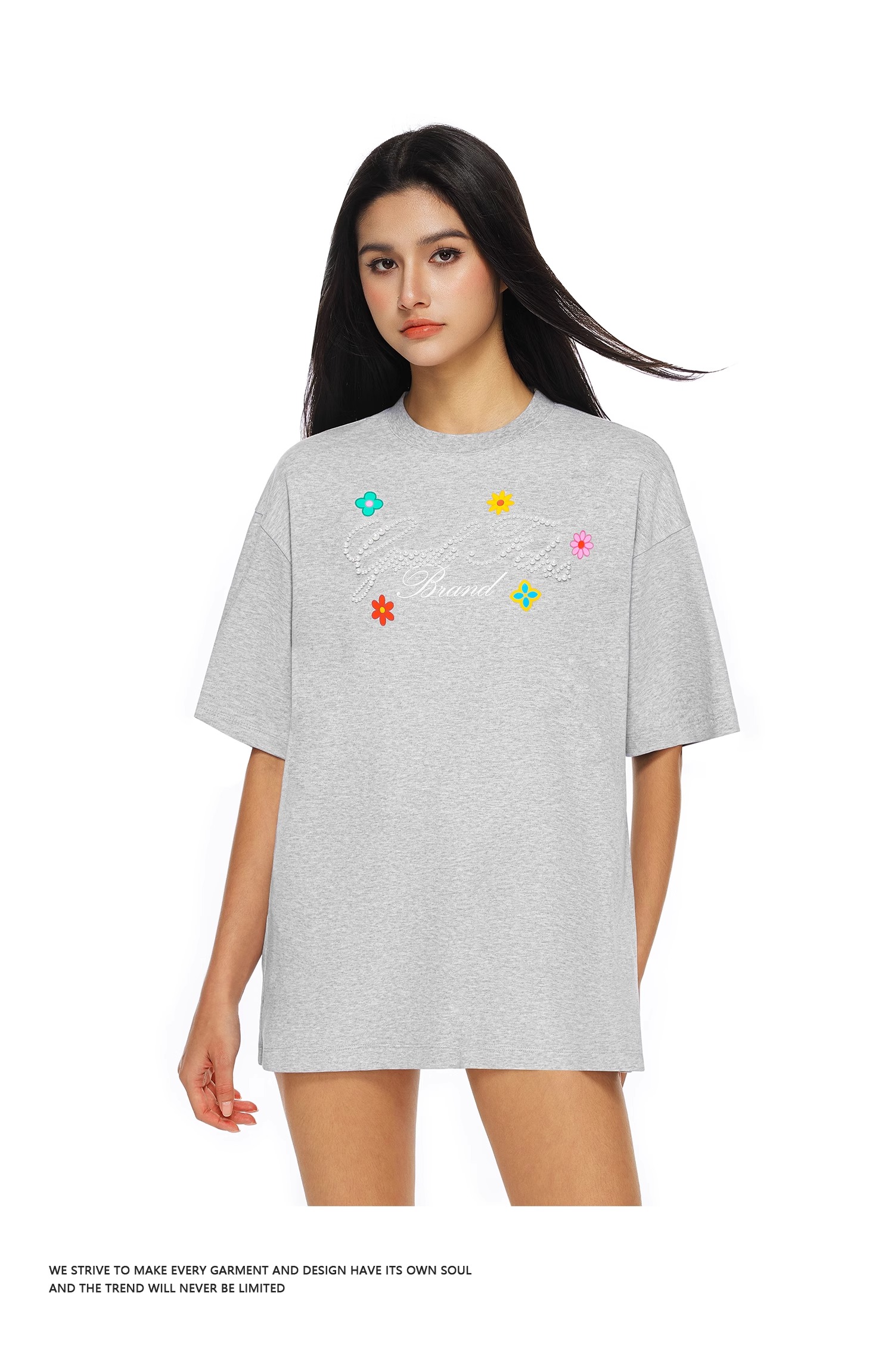 FDR官方店 珍珠绣花字母排版宽松短袖男女夏季潮牌情侣装体恤上衣