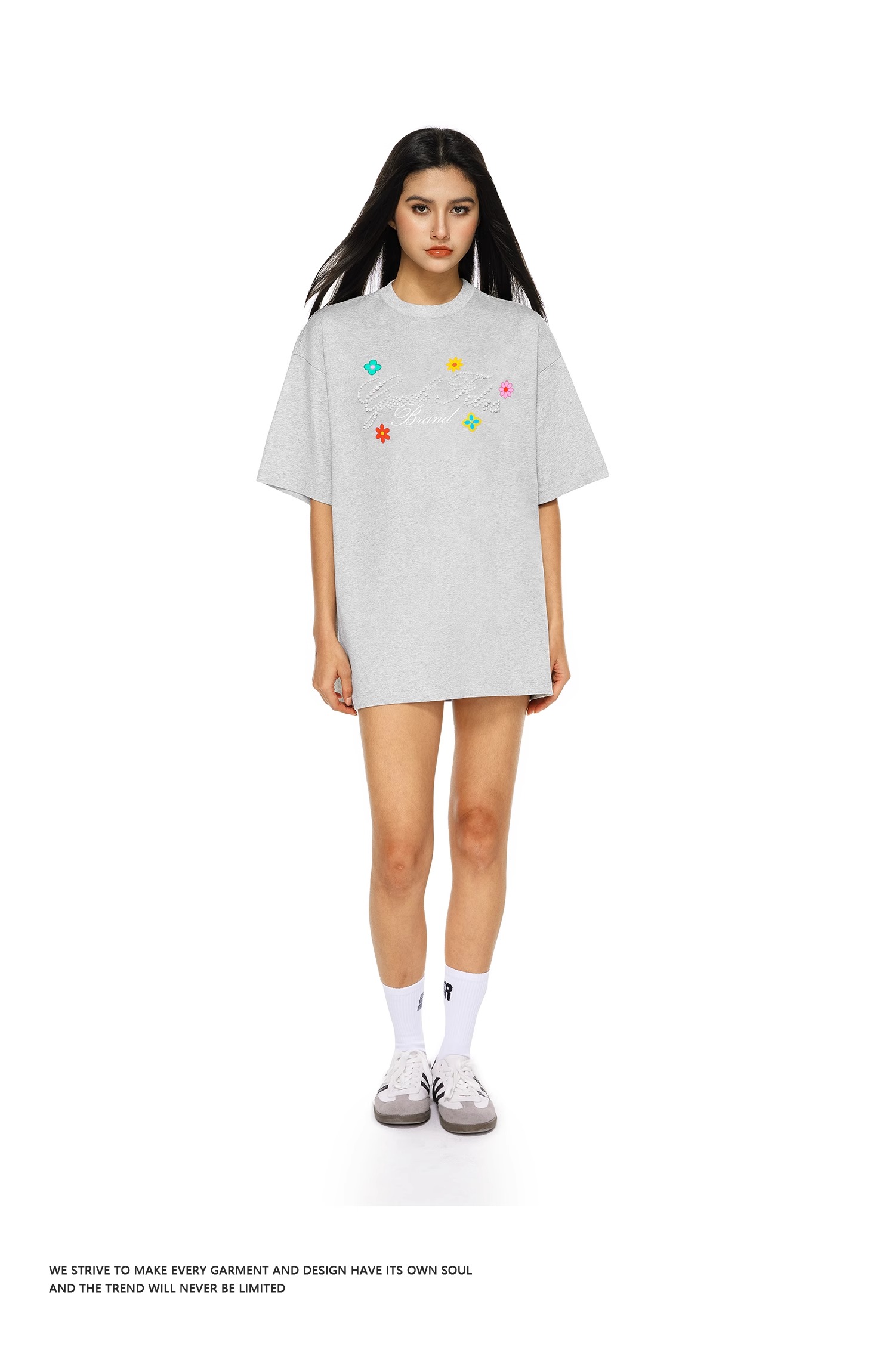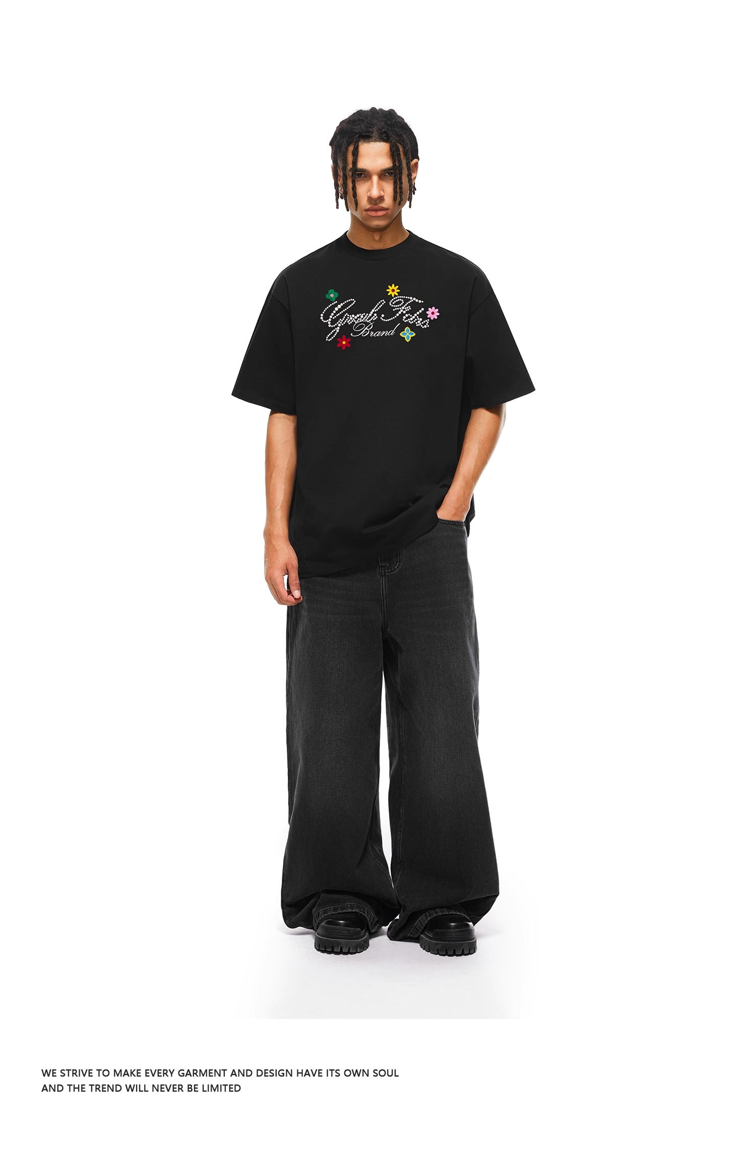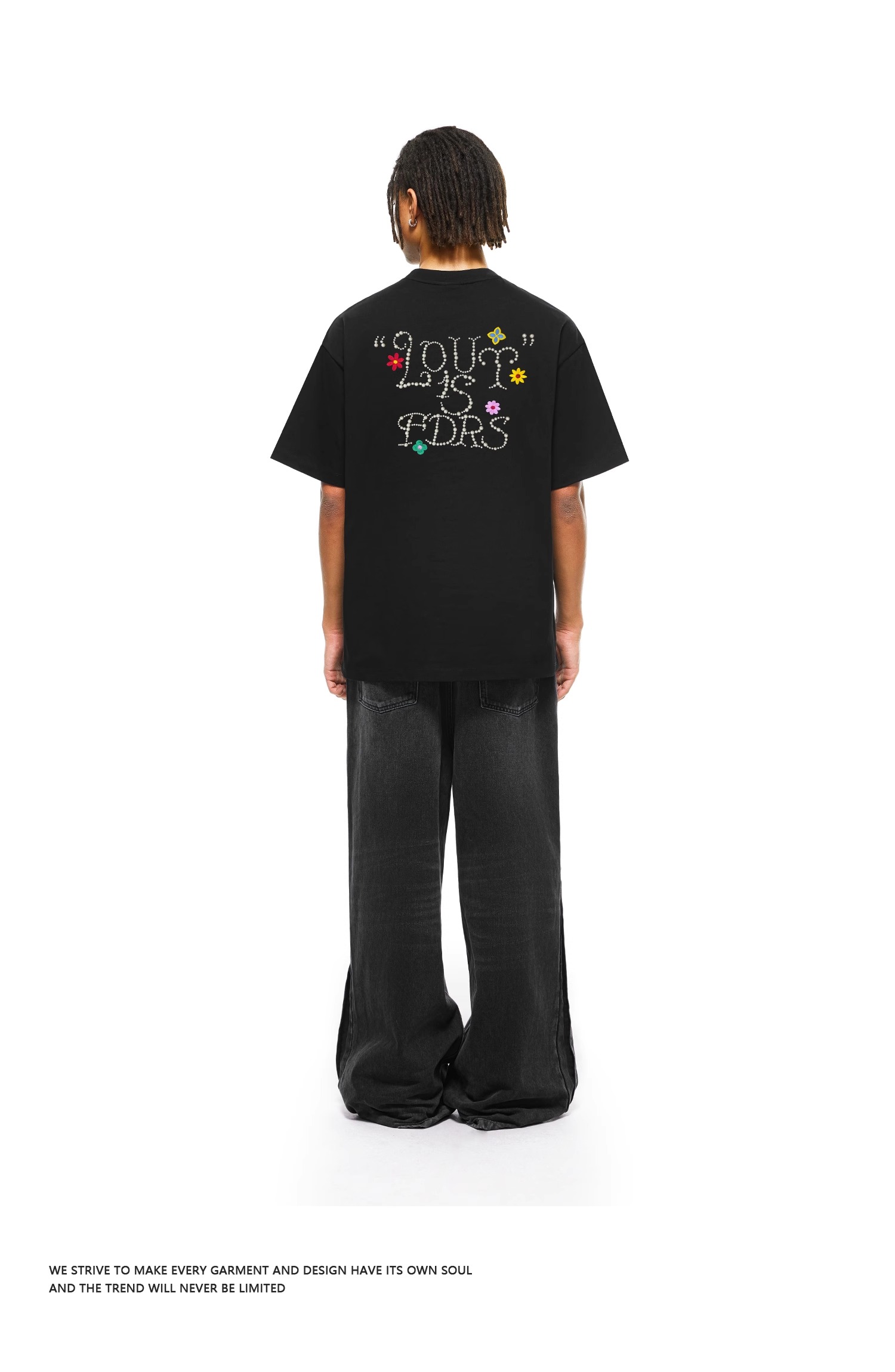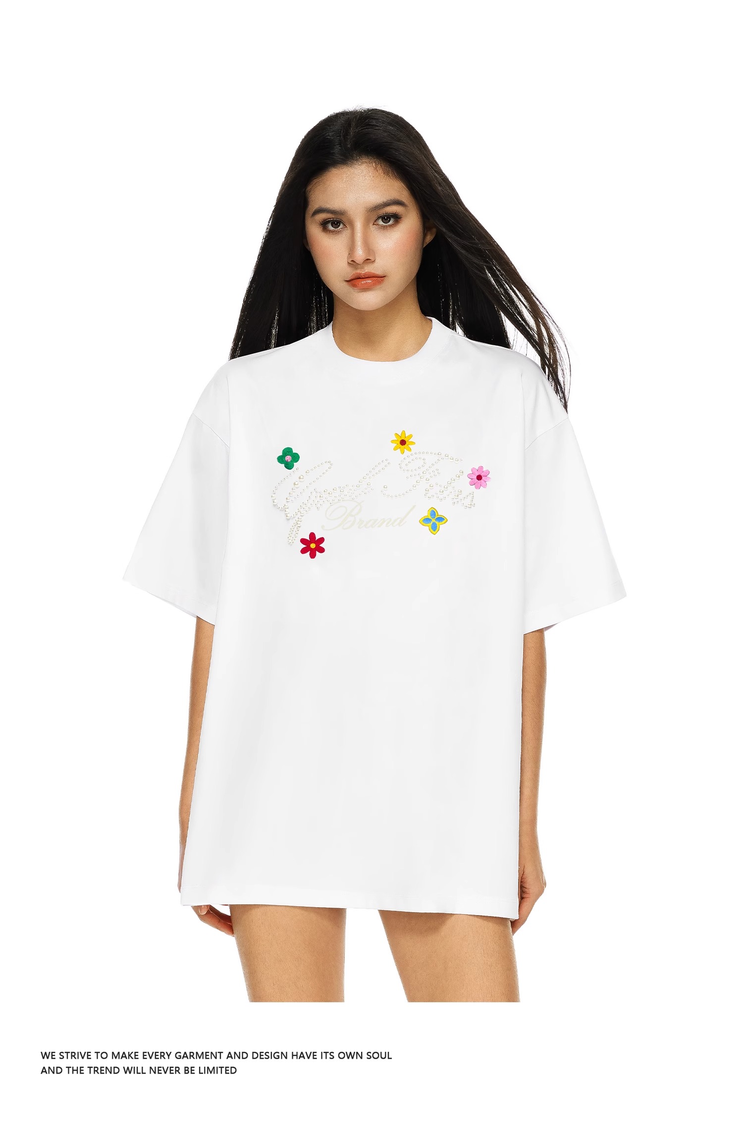 FDR官方店 珍珠绣花字母排版宽松短袖男女夏季潮牌情侣装体恤上衣