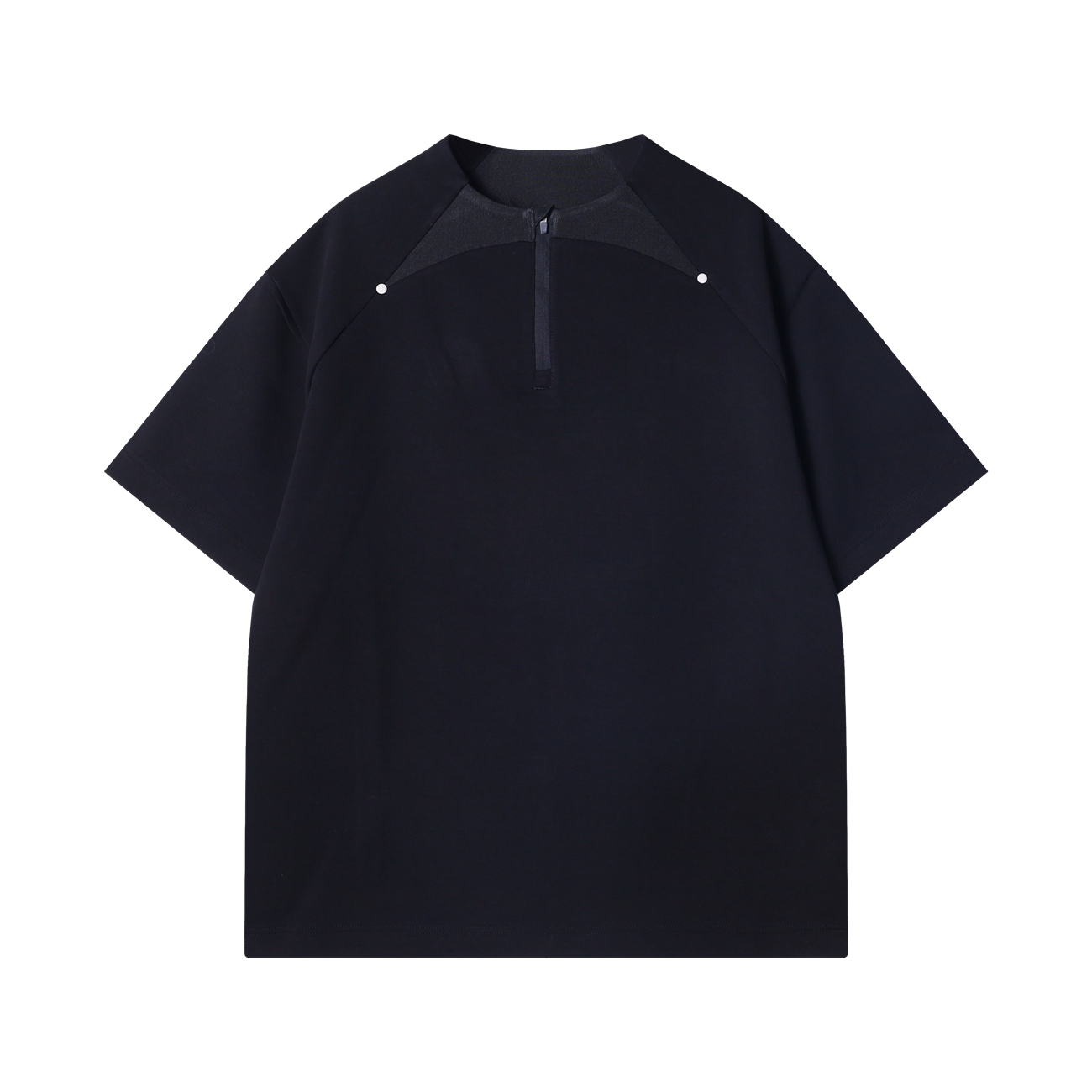 B1537夏季高级感新款美式复古纯色半拉链短袖T恤小众设计痞帅套头上衣
