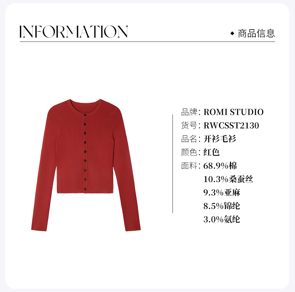 ROMI STUDIO“法式复古”蚕丝亚麻撞色坑条圆领针织开衫RWCSST2130