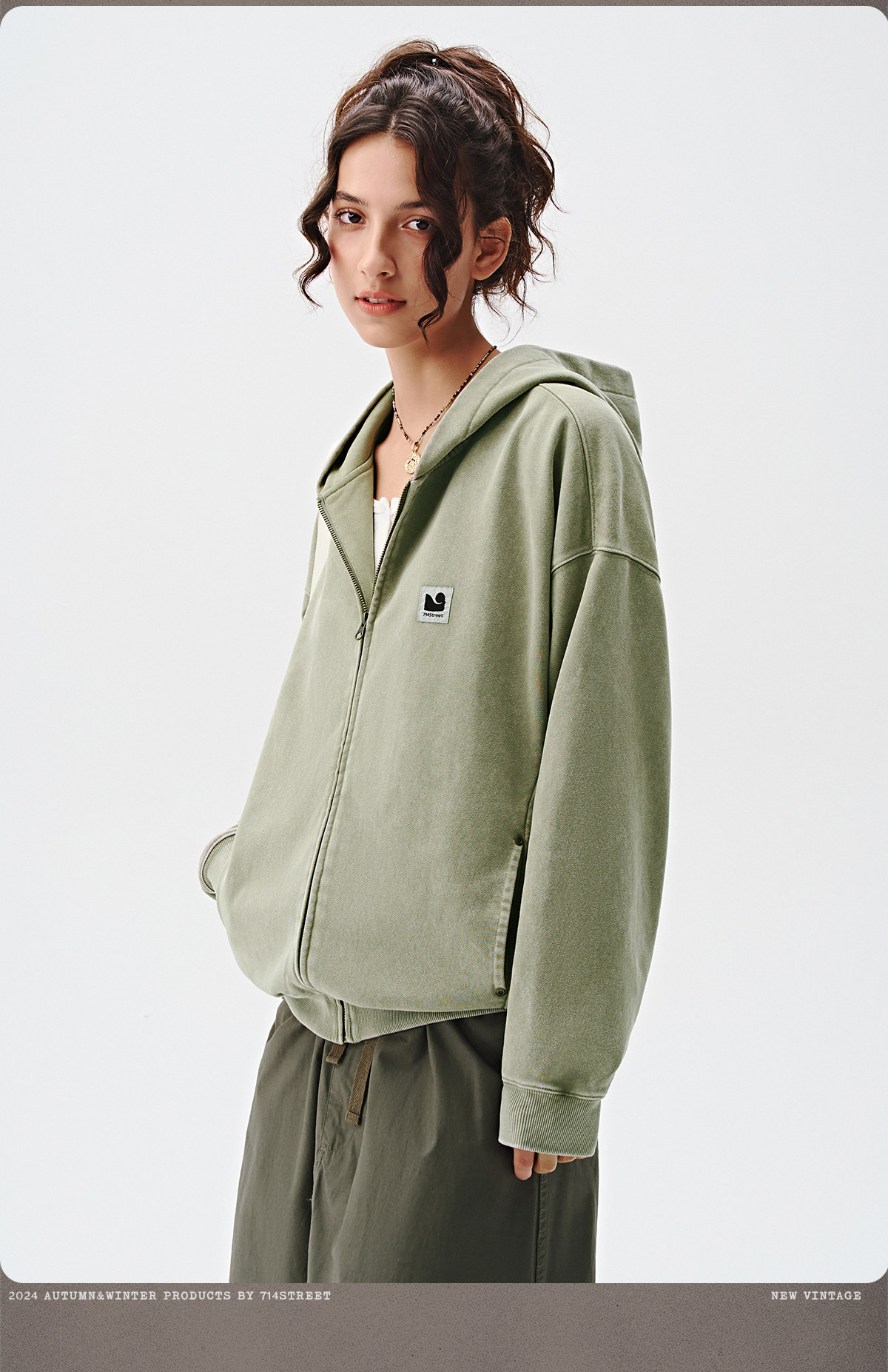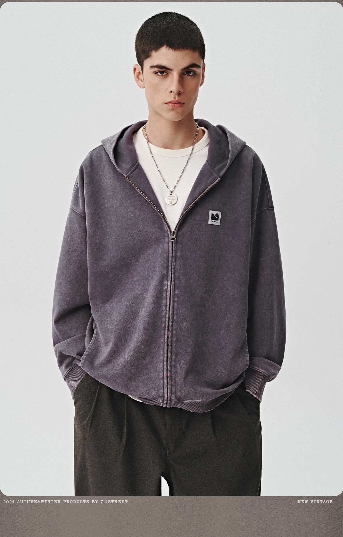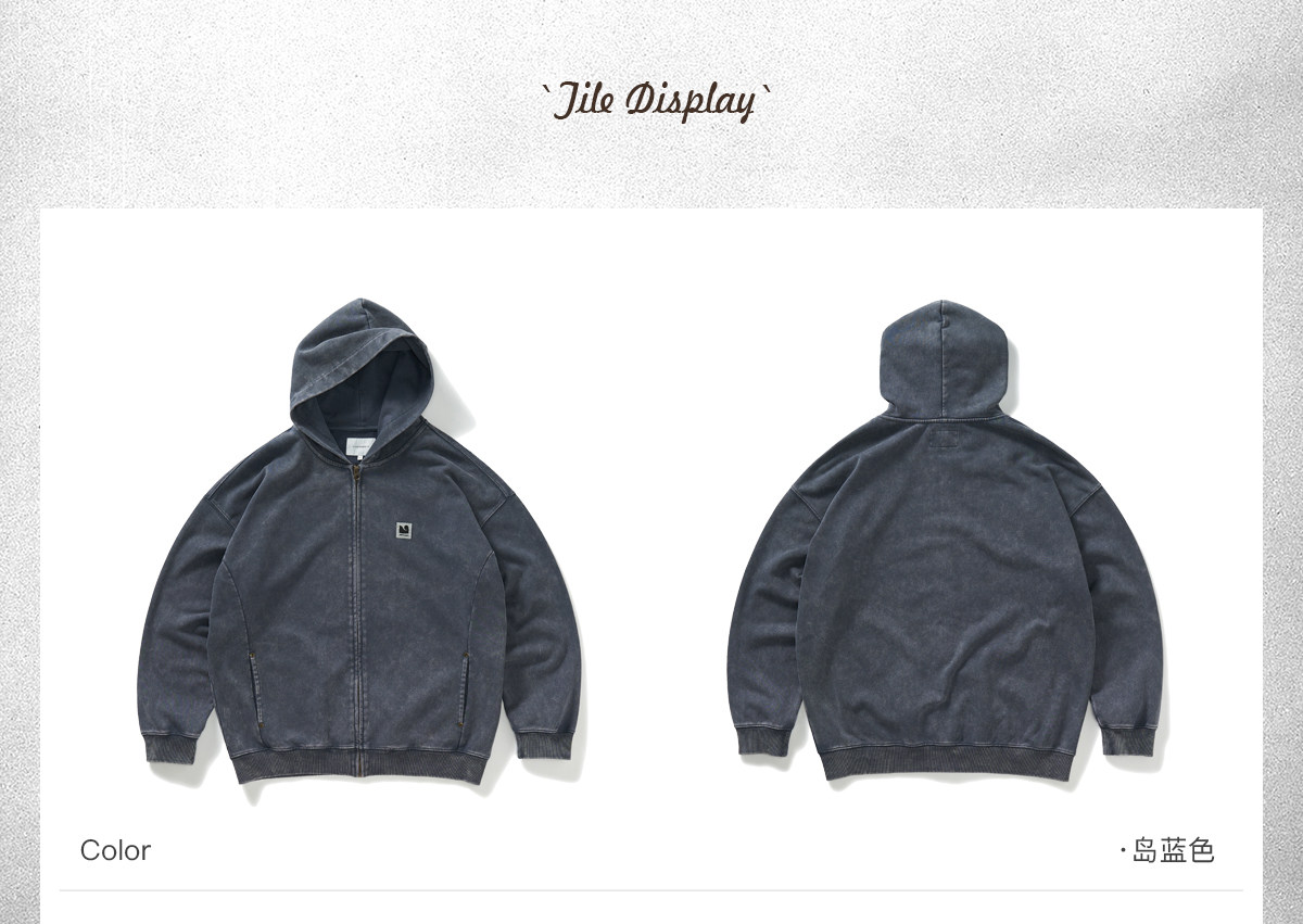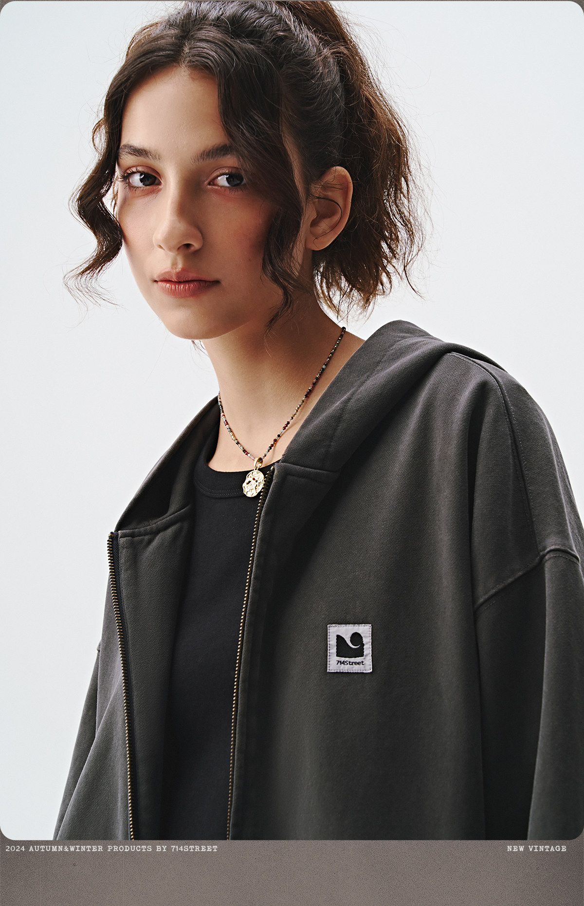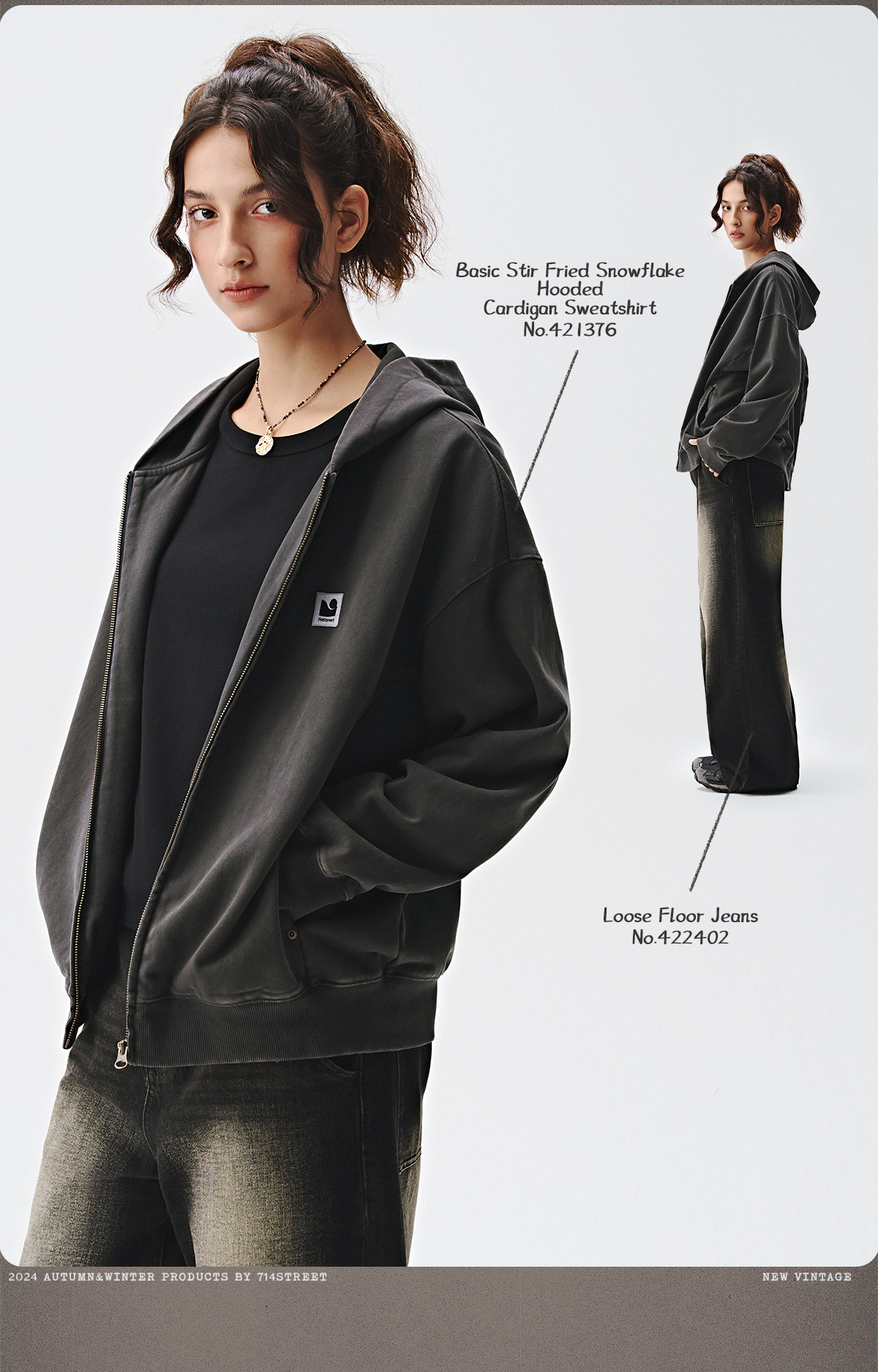 714street重磅水洗做旧连帽卫衣开衫男2024秋季新款针织外套女款