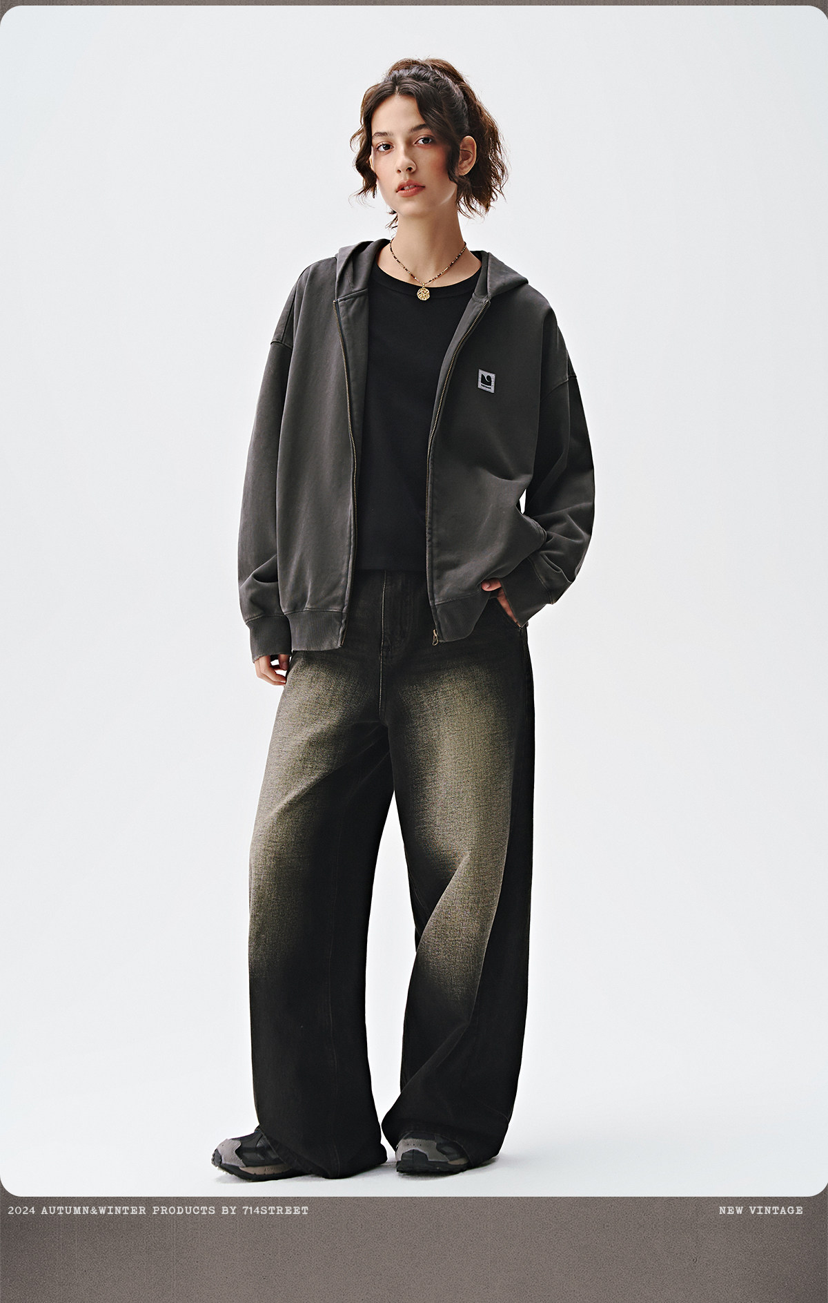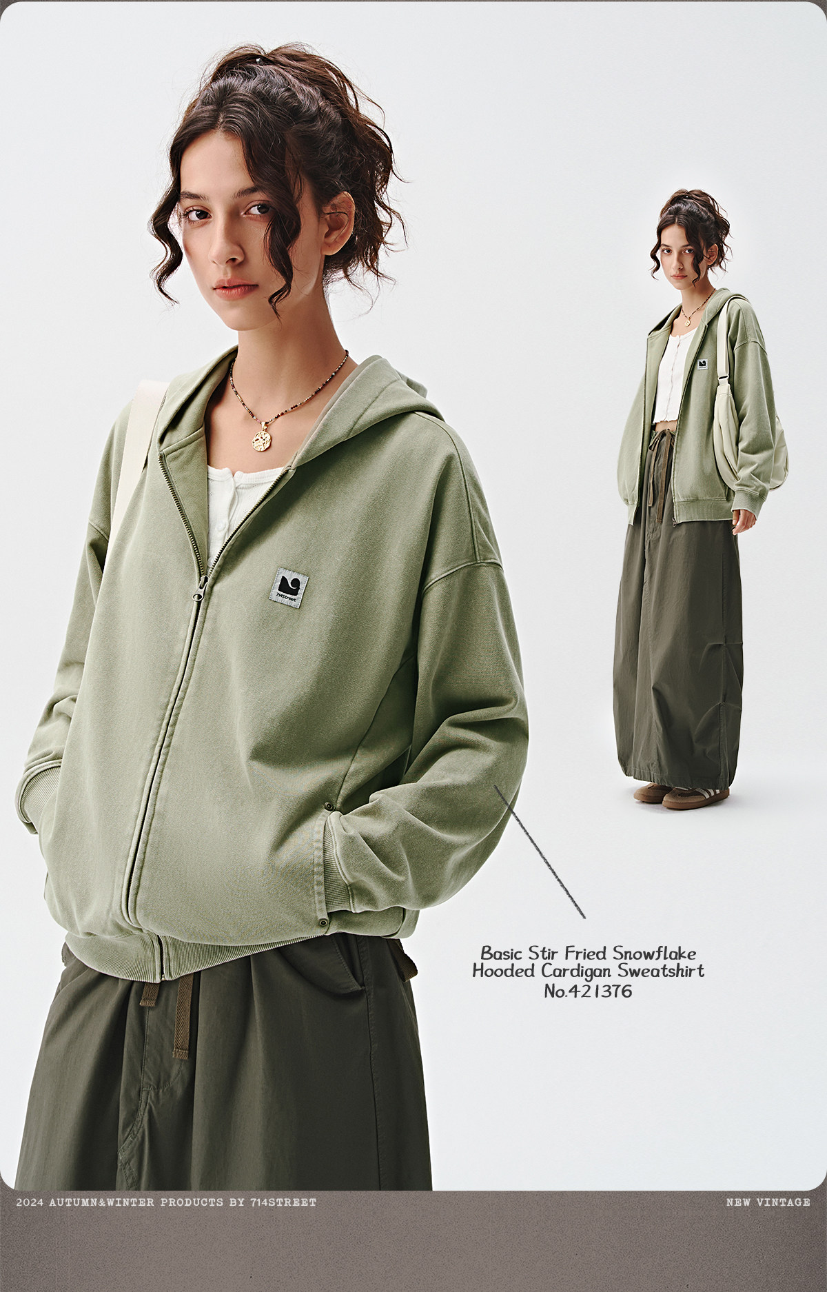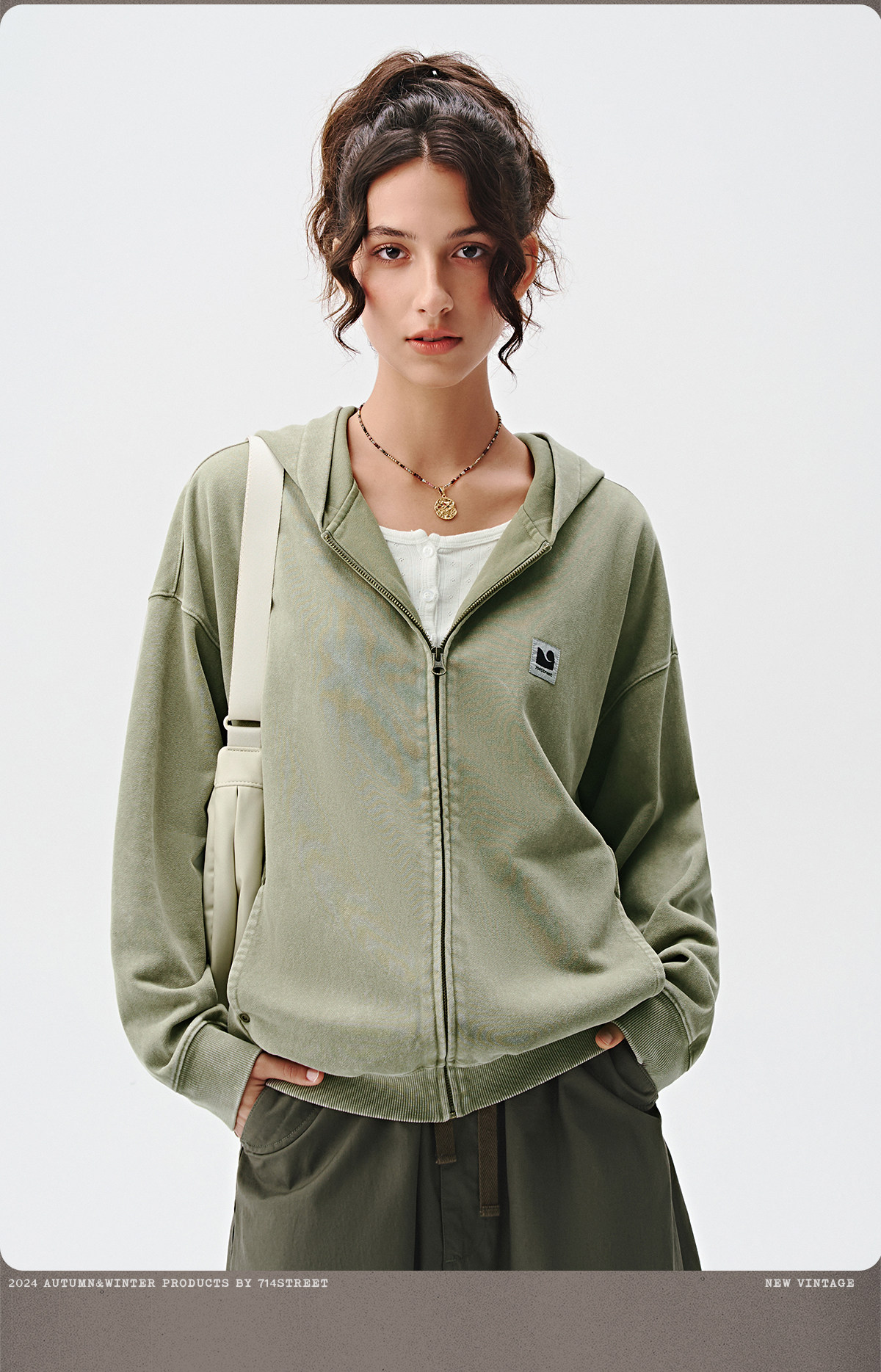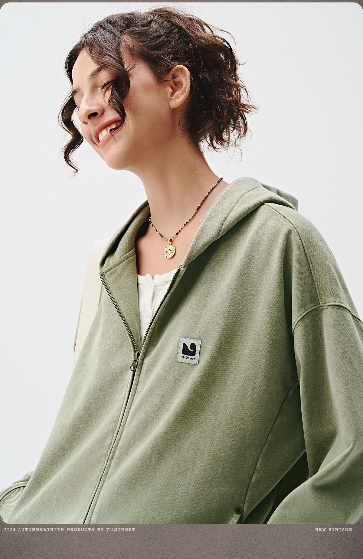 714street重磅水洗做旧连帽卫衣开衫男2024秋季新款针织外套女款