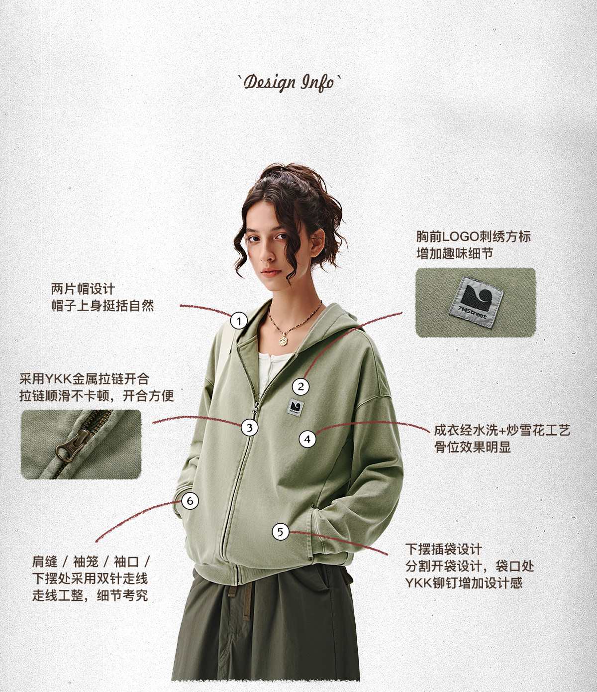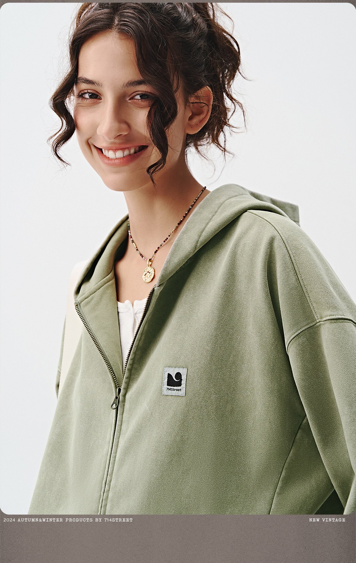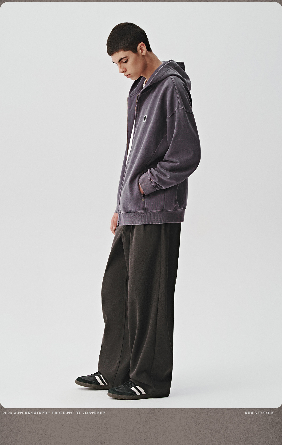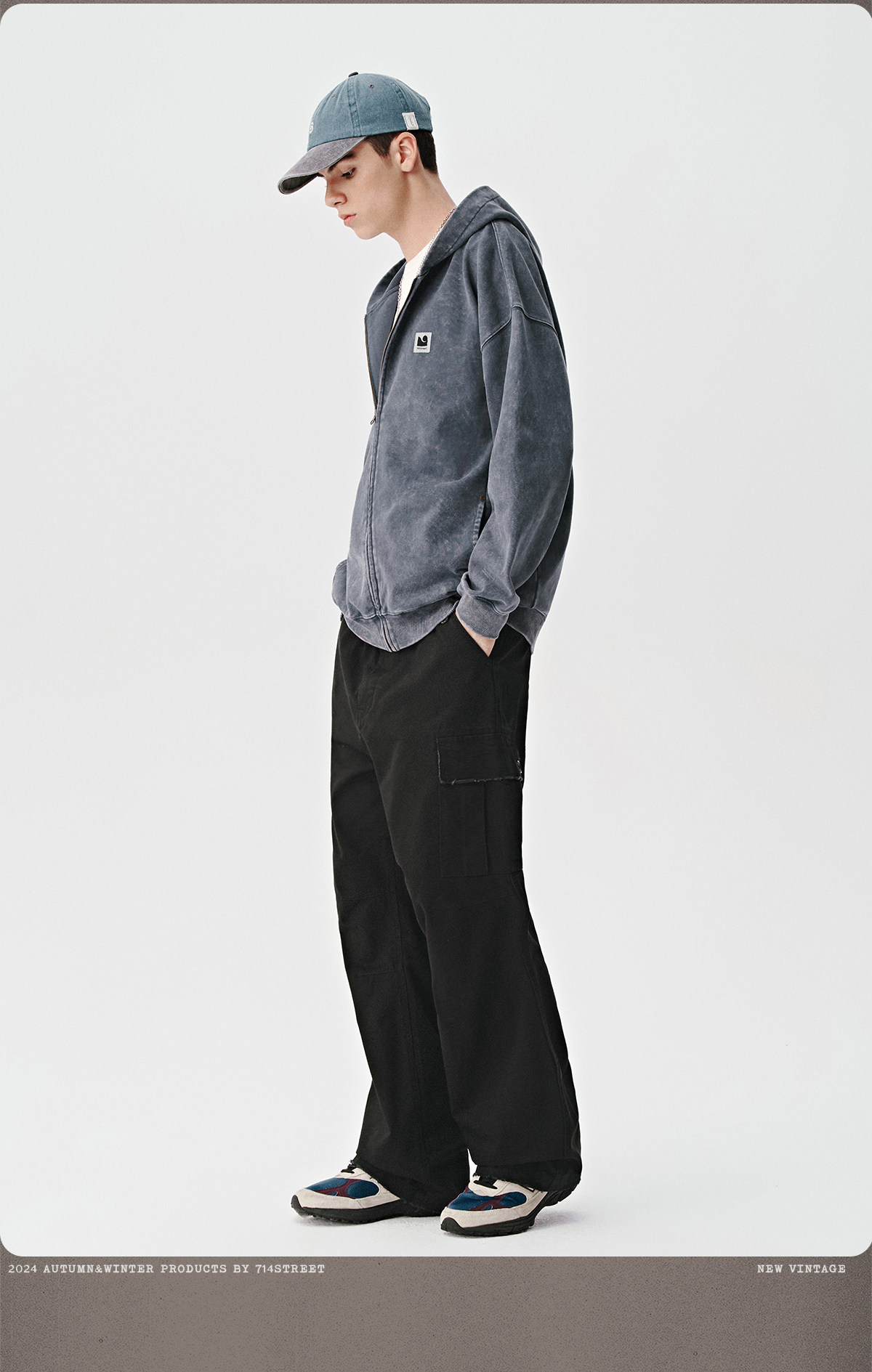 714street重磅水洗做旧连帽卫衣开衫男2024秋季新款针织外套女款
