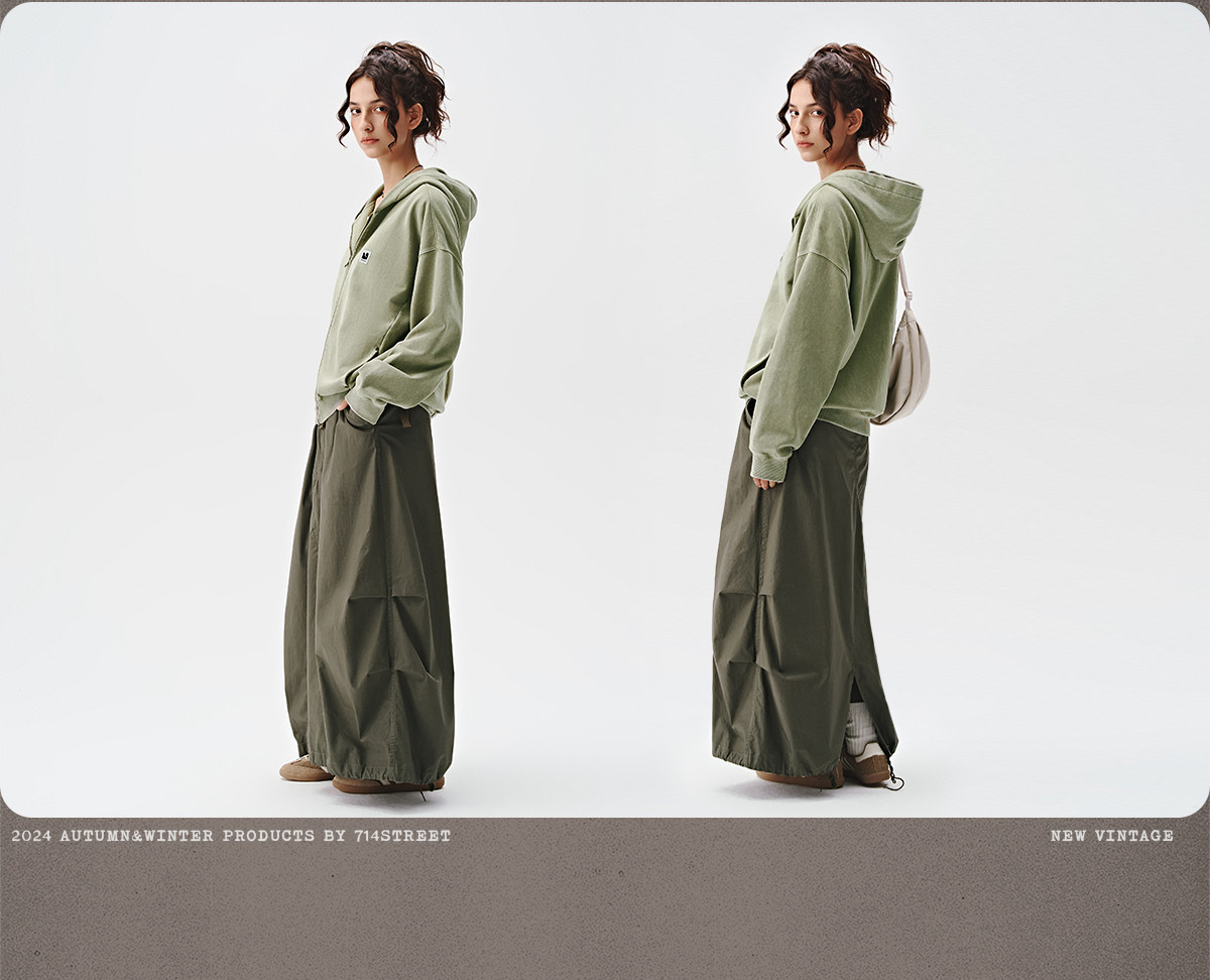 714street凉感防晒设计感花苞半身裙女夏季新款百搭休闲A字工装裙