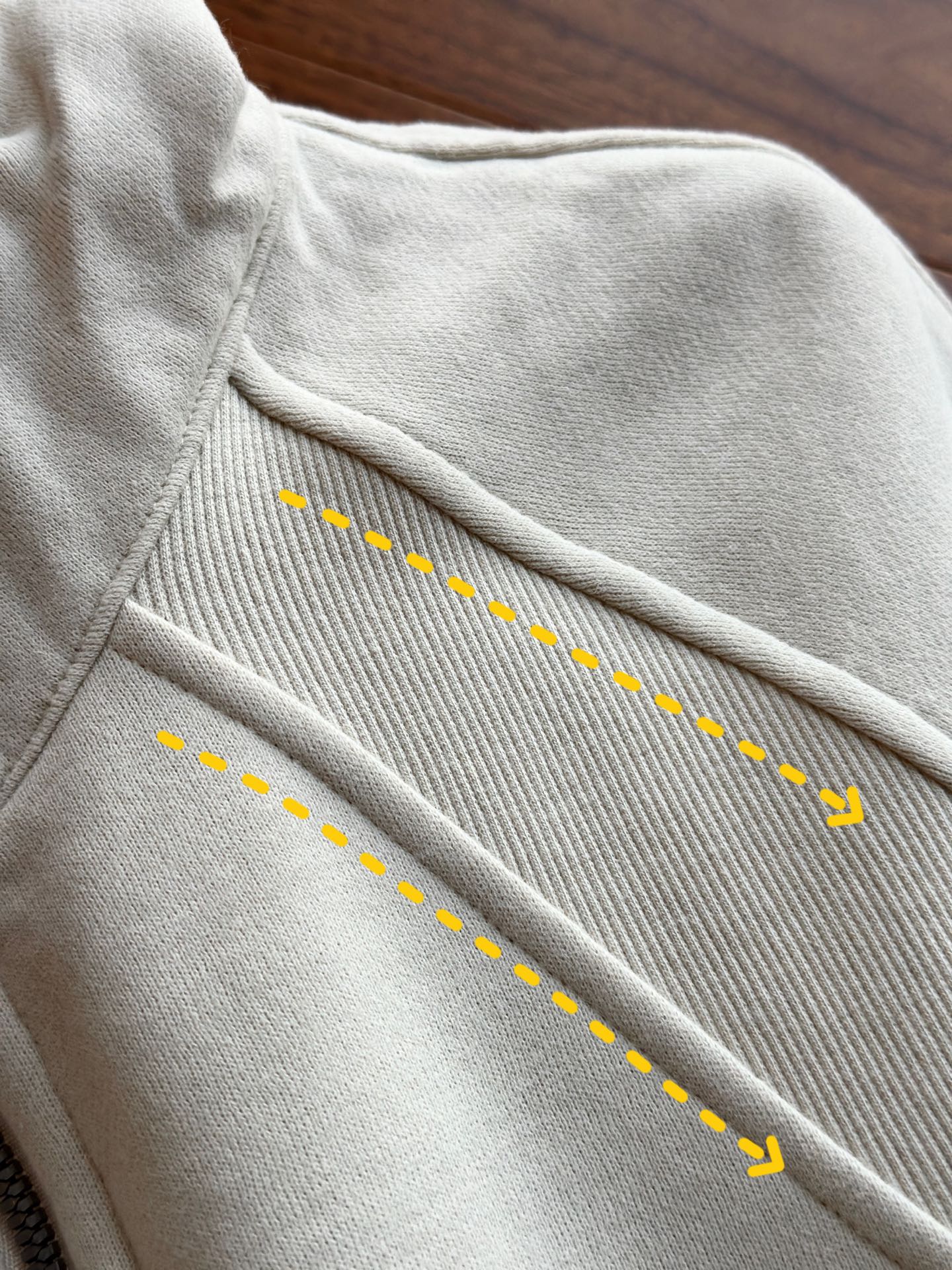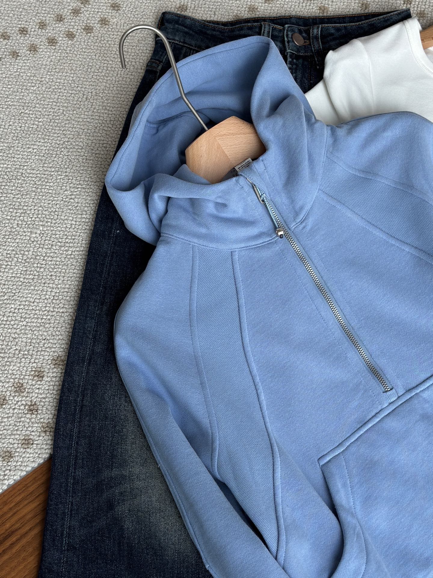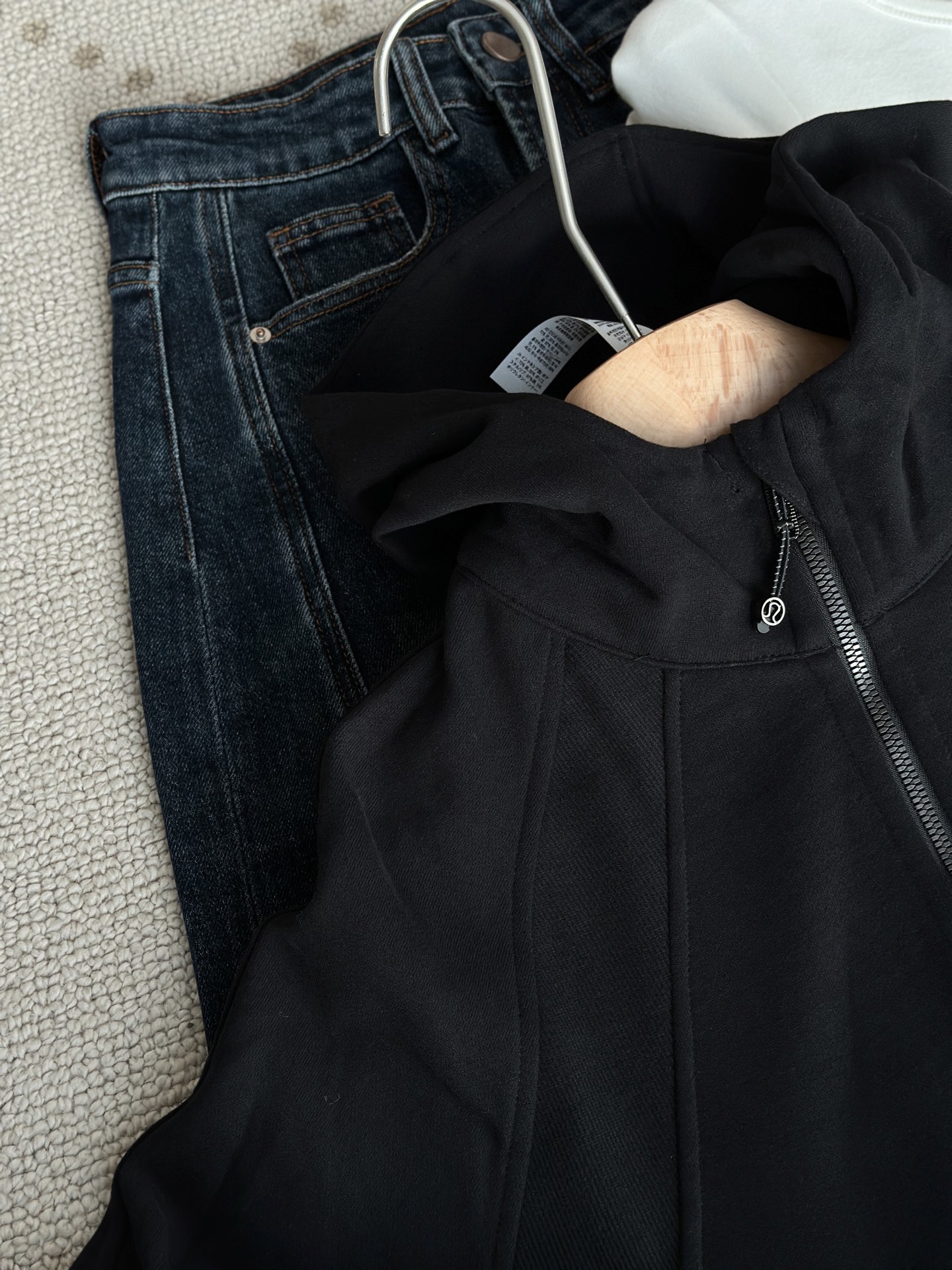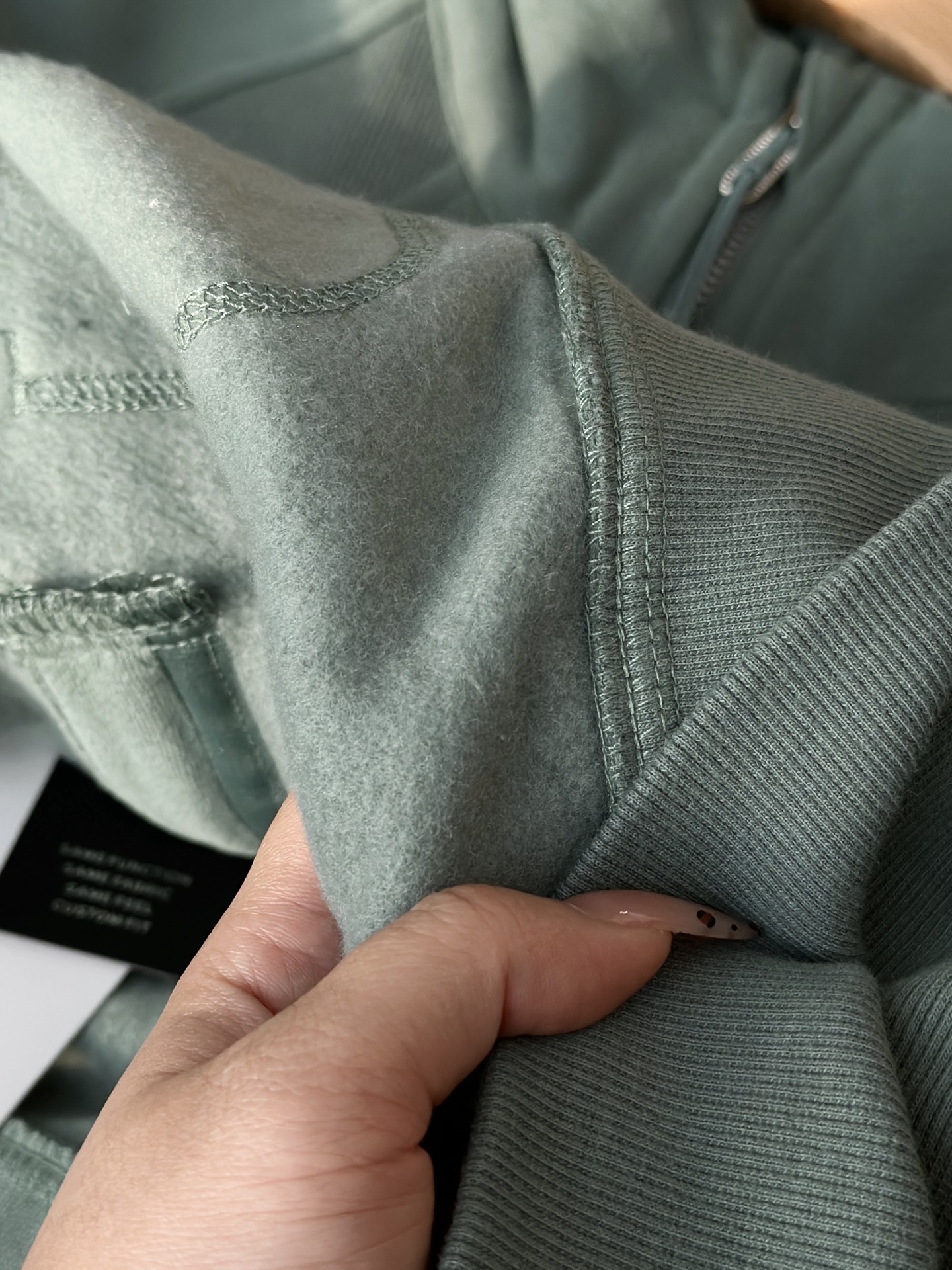 Luluemon秋冬scuba系列半拉链宽松连帽卫衣 整件卫衣多道裁片拼接的!显的头身比特别协调!两个袖管大大的!然后长短也很完美!帽子也是大大的!真的是秋冬衣橱必不可少阿! scuba的侧面和下摆都做了螺纹弹力针织,很聪明的设计点,一般女孩子的身材就是这几个地方会有区别,做成弹力针织就能完美适配每一种体型!谁穿都是又瘦又好看的 尺码:xs s m l