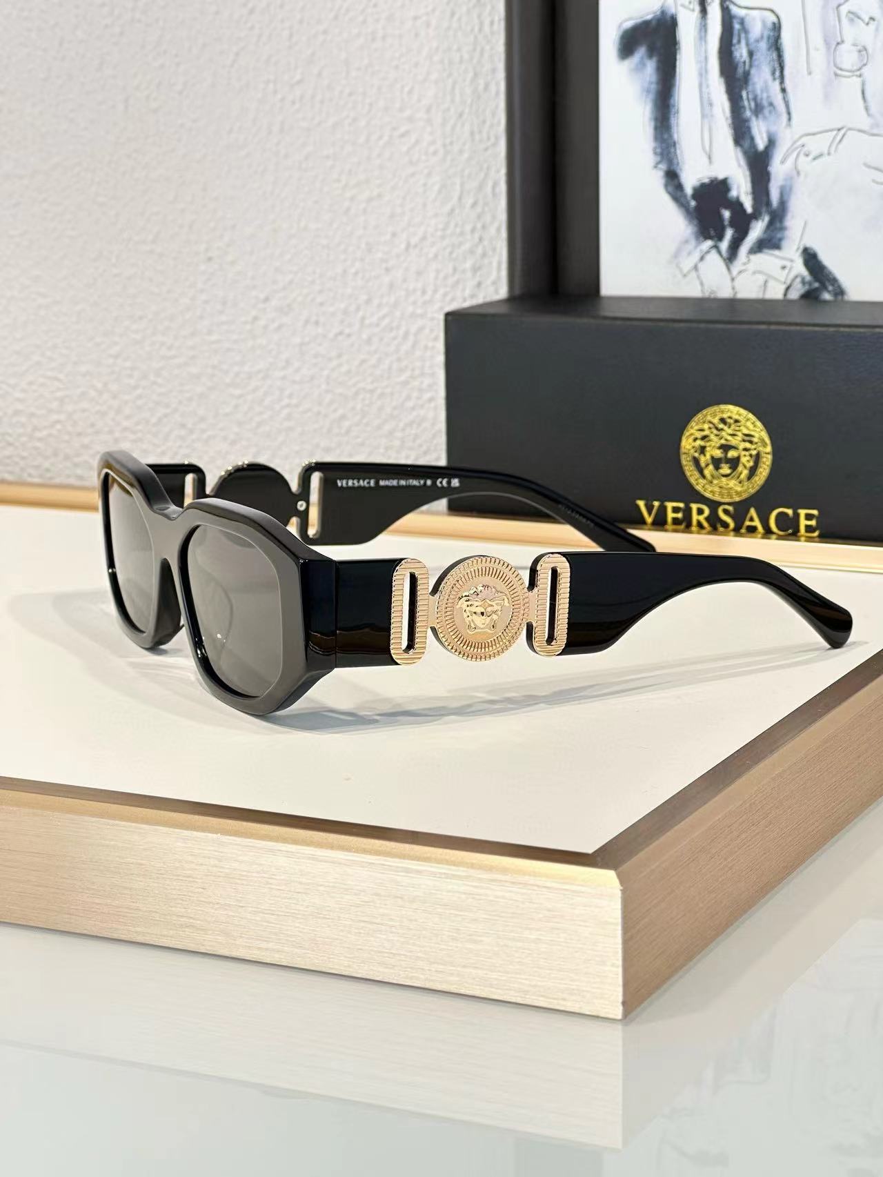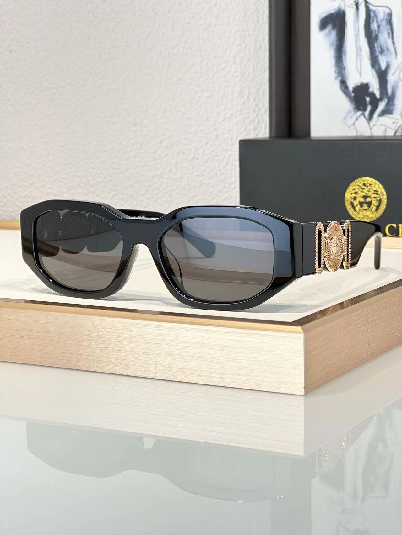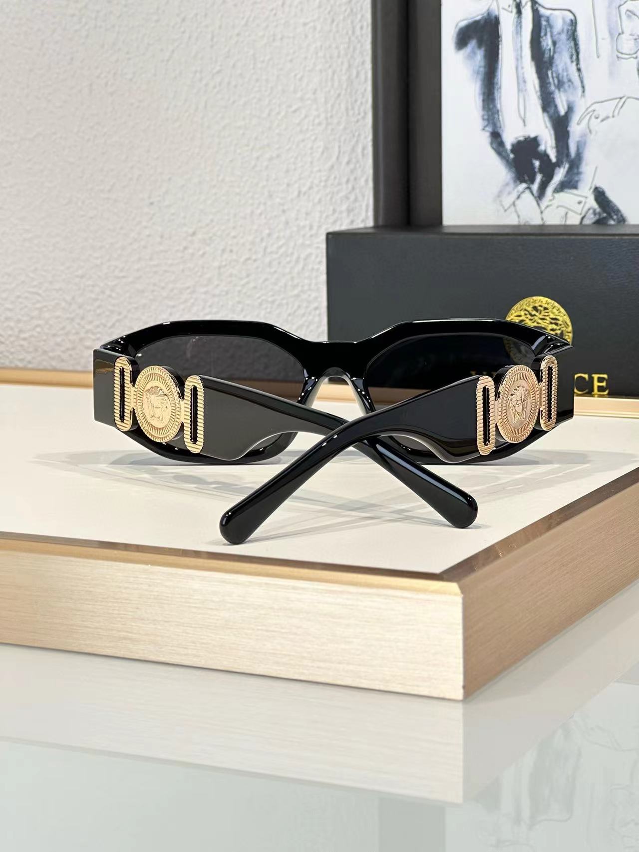 VERSACE范思哲 侧边logo不规则形 板材镜架 长方形 太阳眼镜 男女同款情侣款(AN)