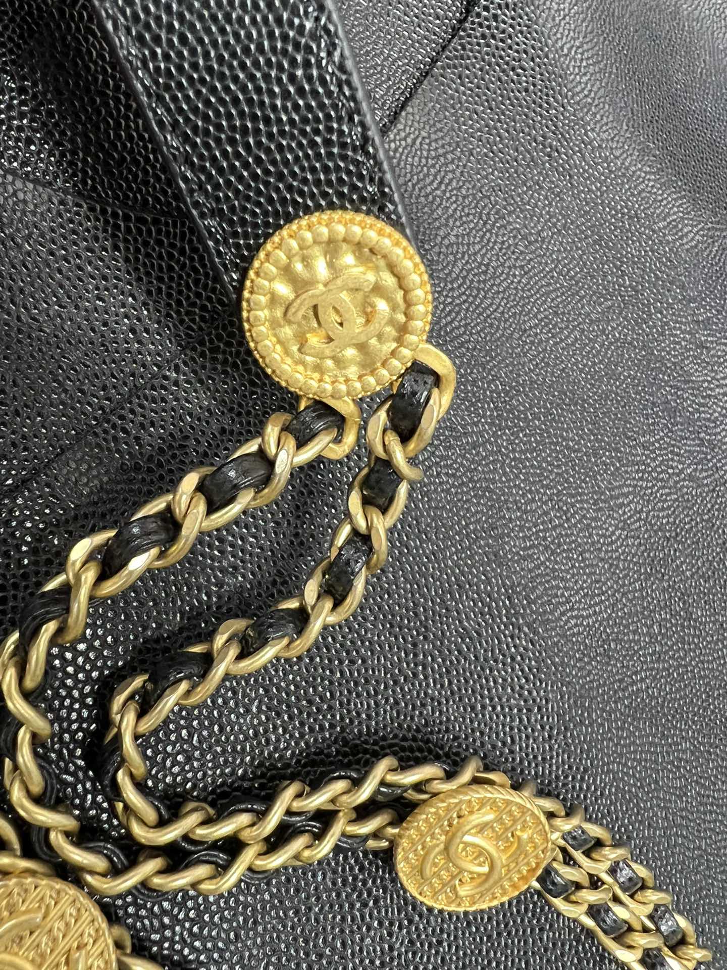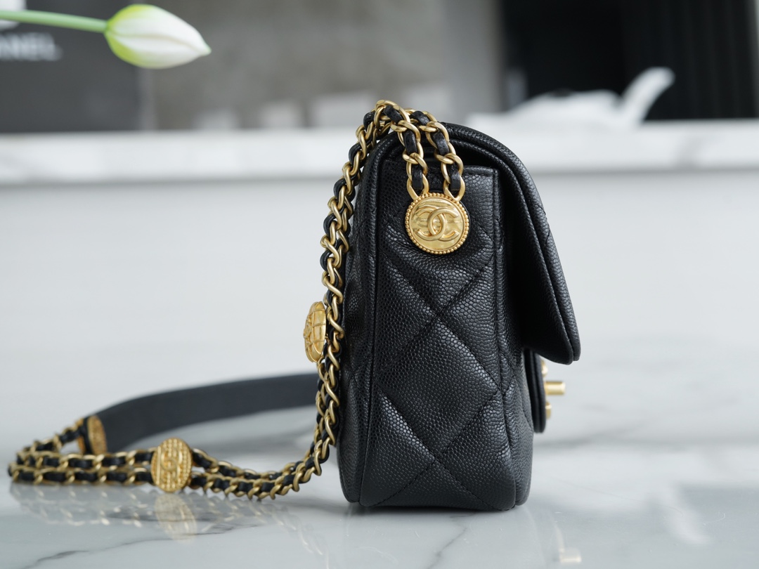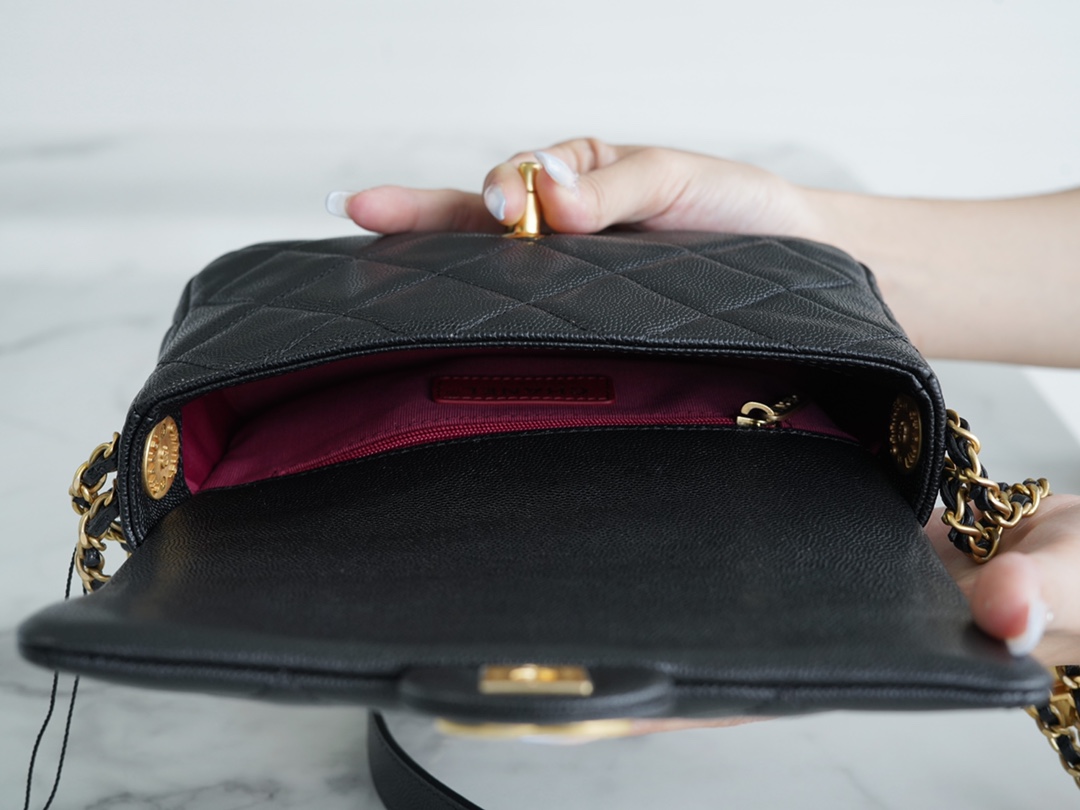荔枝纹牛皮+复古金币扣,皮质亮面有光泽,耐磨性强!皮穿链条中结合了不同图案的金币元素设计,每个都精雕细琢,拼接皮肩带,既有质感又不勒肩,整只包细节满满,疯狂心动??