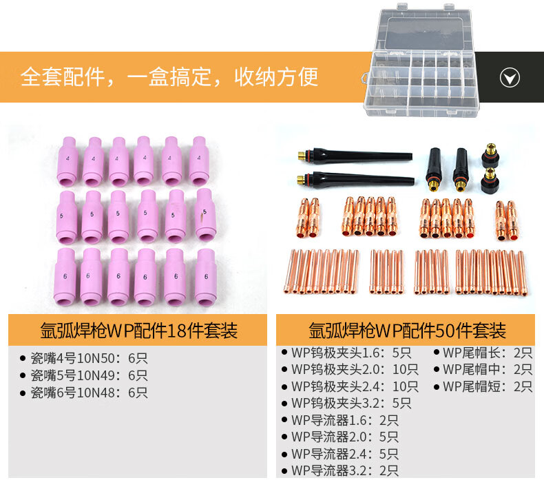 上海沪工氩弧焊枪配件【导流器WP17 18 26】1.6 2.0 2.4 3.2mm导流件钨针夹头连接体 WP导流器50件套