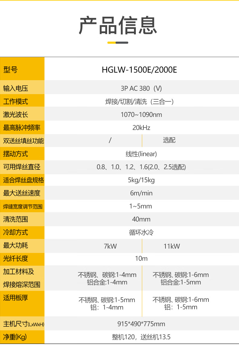 上海沪工激光焊机高端HGLW-1500E手持式铝合金不锈钢金属切割激光焊接清洗除锈机自动送丝