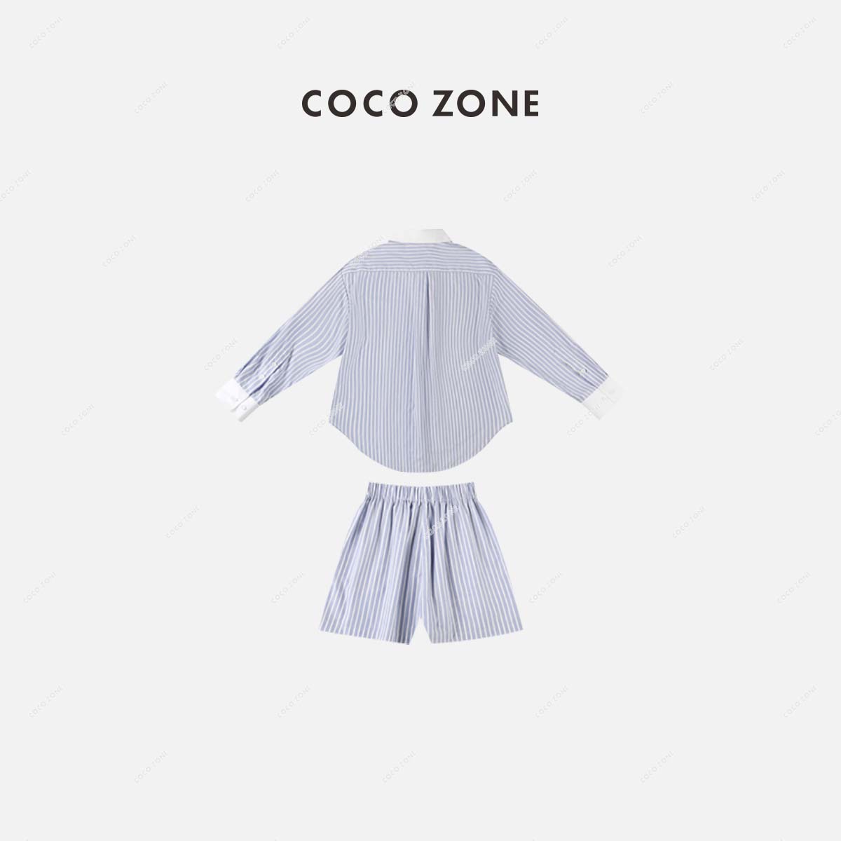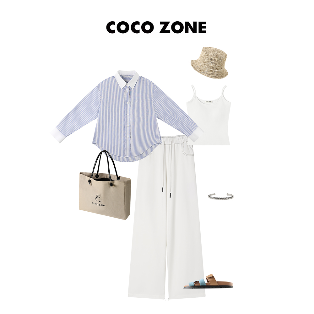 COCO ZONE 通勤风气质撞色条纹衬衫衬衣+百搭显瘦裤子 23C18883