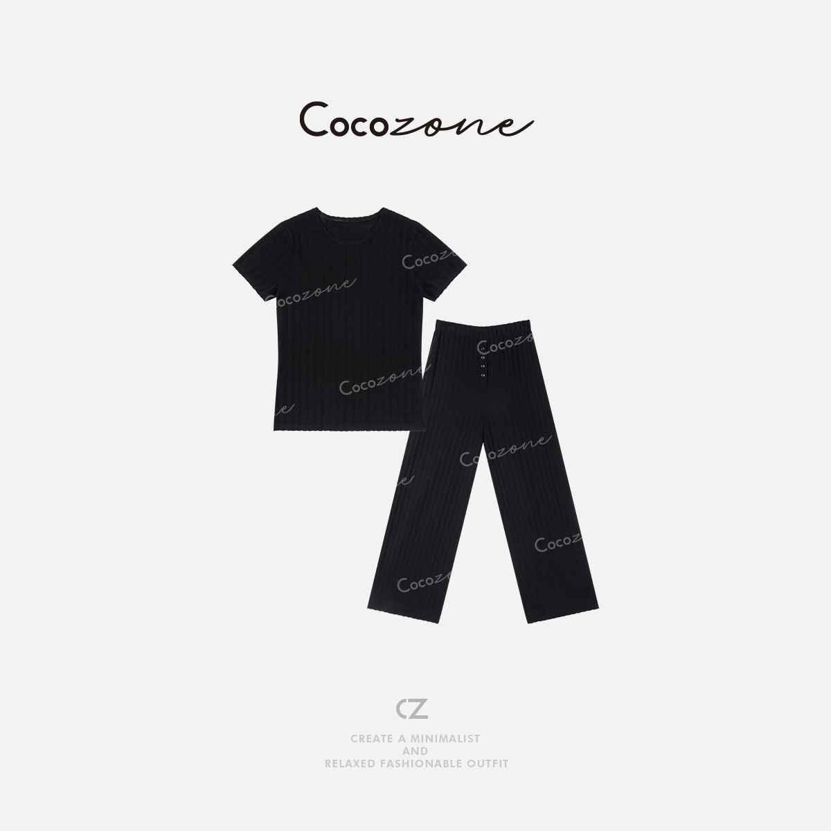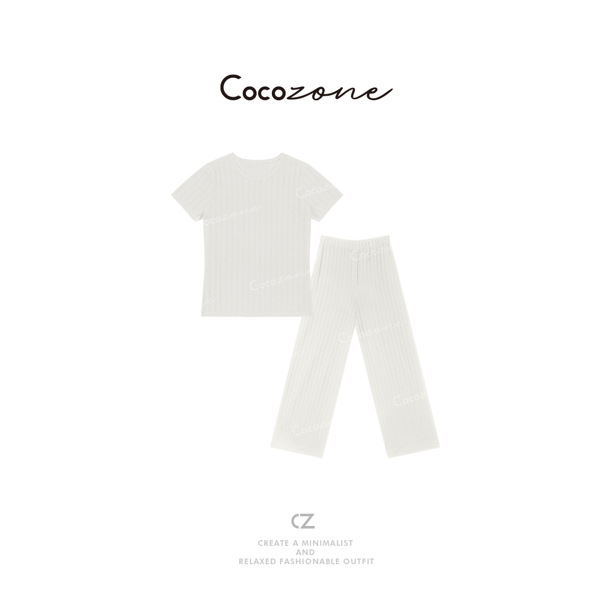 COCO ZONE 刘一一 25春夏时尚条纹休闲裤+简约休闲短袖ACD2A0458