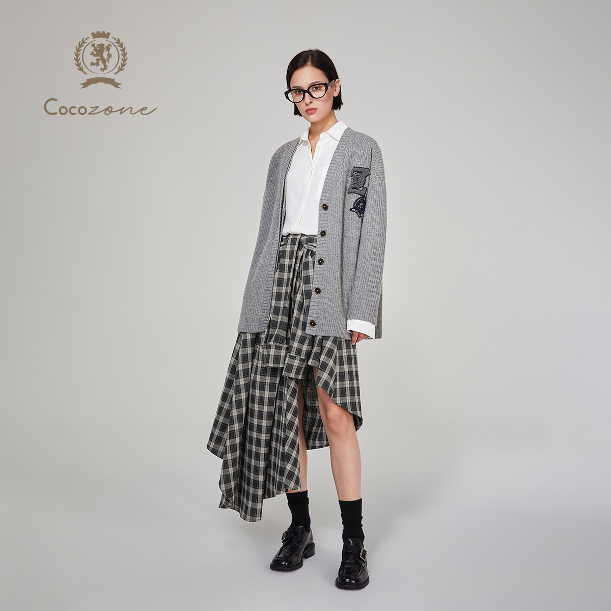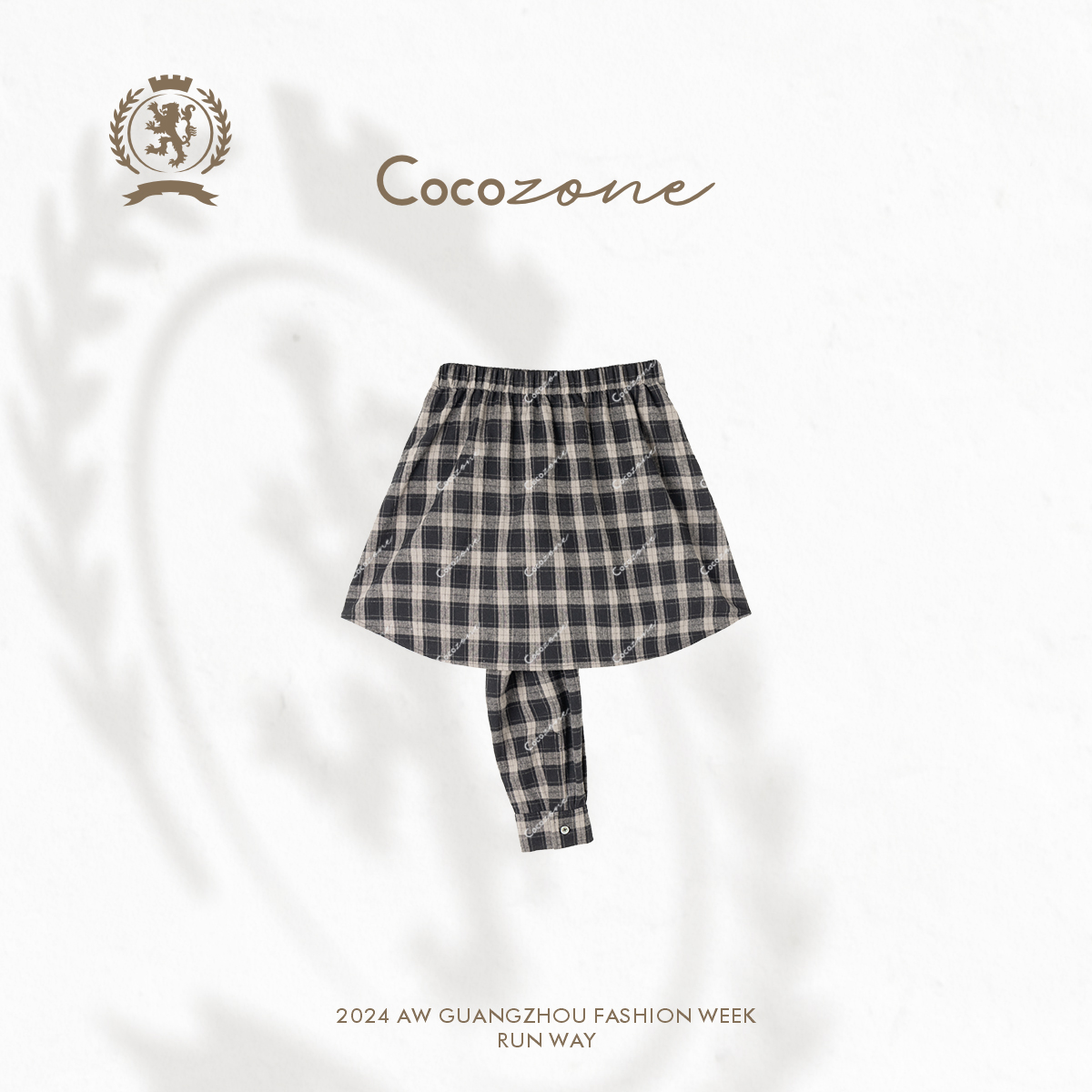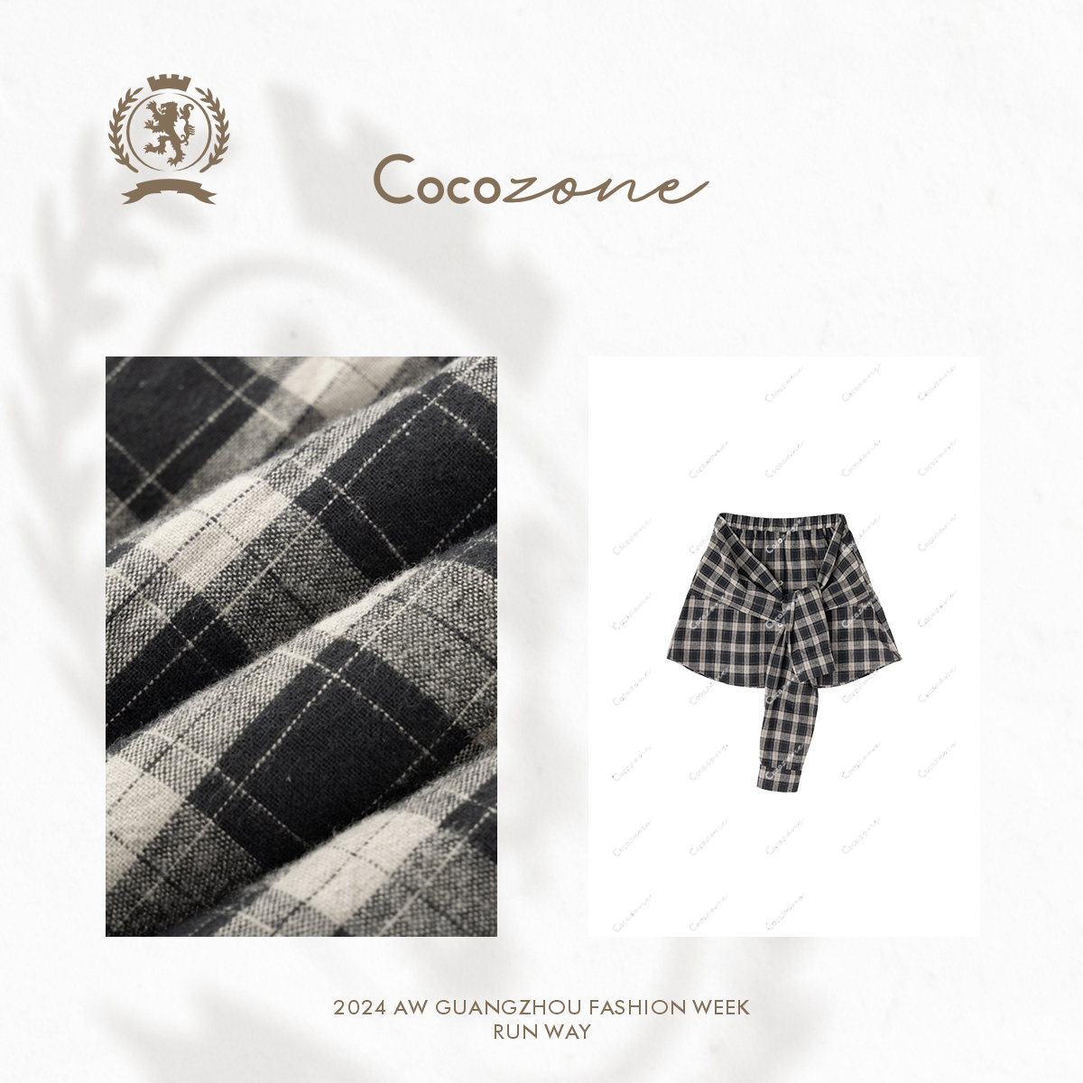 COCO ZONE 设计感格纹显瘦短裙松紧腰撞色半裙CC1C2289