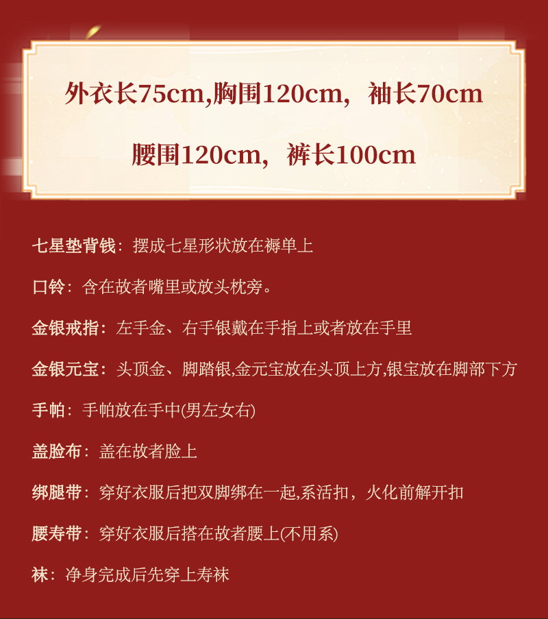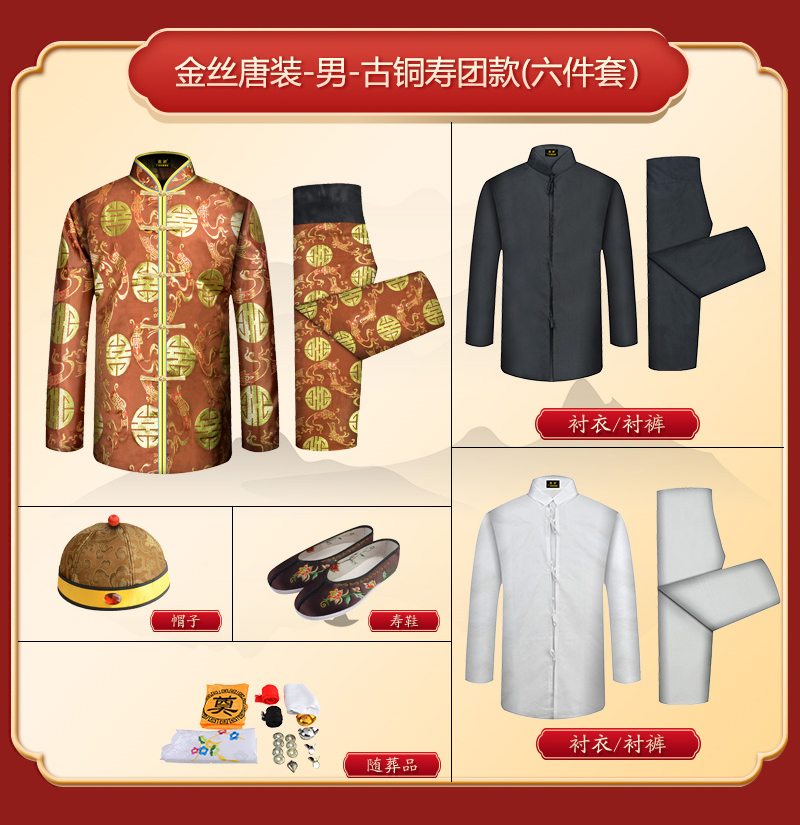男士寿衣金丝唐装古铜寿团薄款6件套寿衣寿服套装