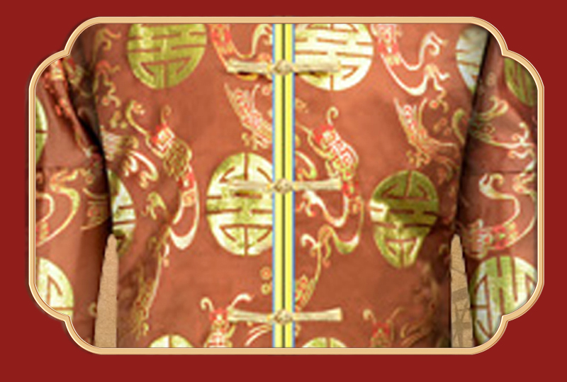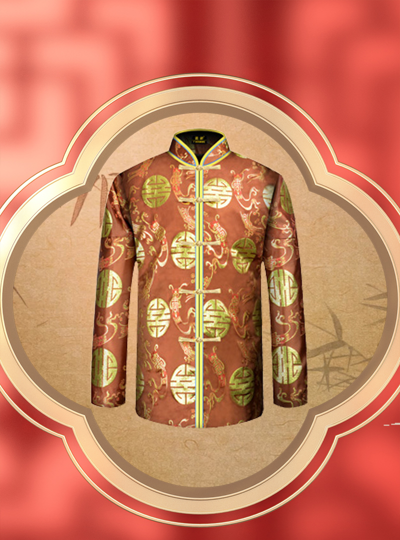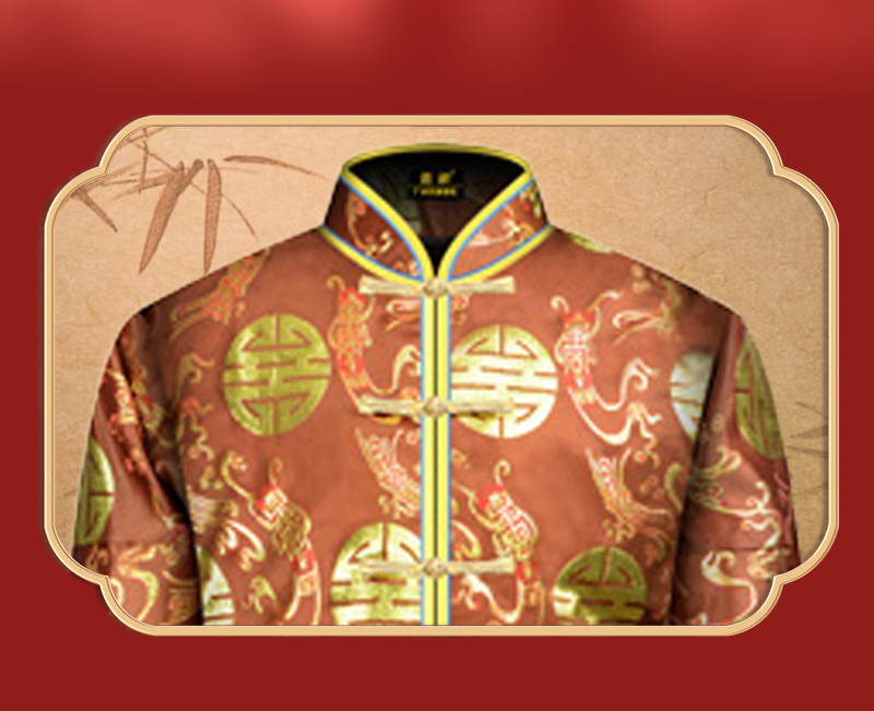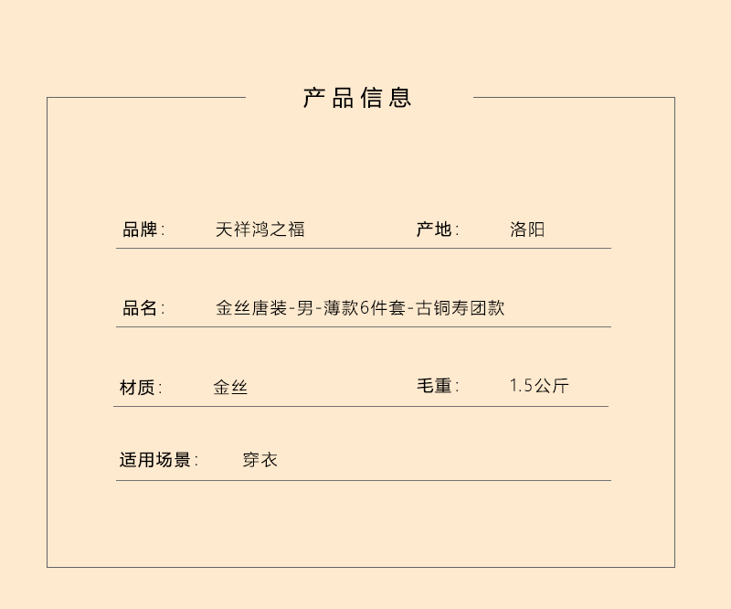 男士薄款织锦唐装咖啡福寿金6件套寿衣寿服套装