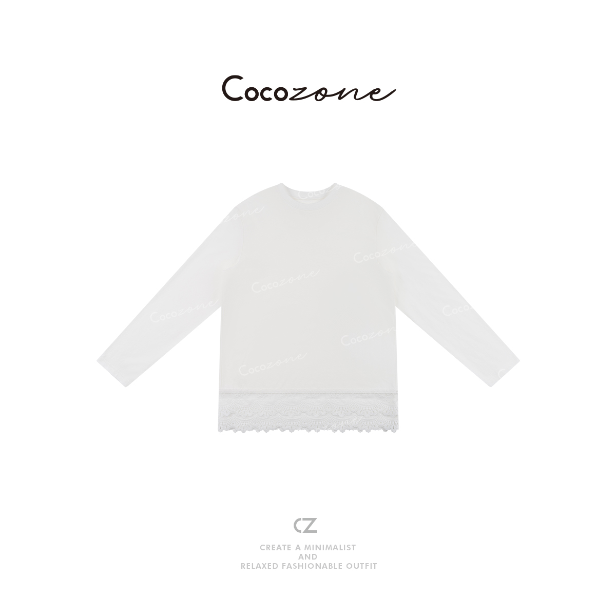 COCO ZONE 2025新款圆领拼接蕾丝设计长袖T恤ACD1A0290