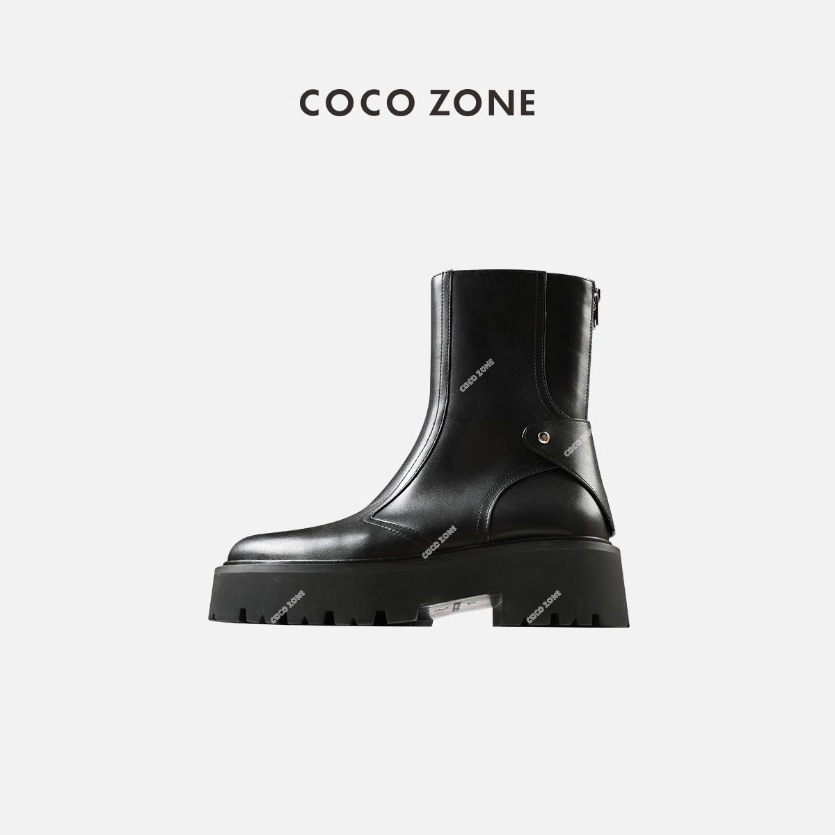 刘一一&COCOZONE马丁靴真皮复古时装平底圆头中筒马丁靴 23C29898