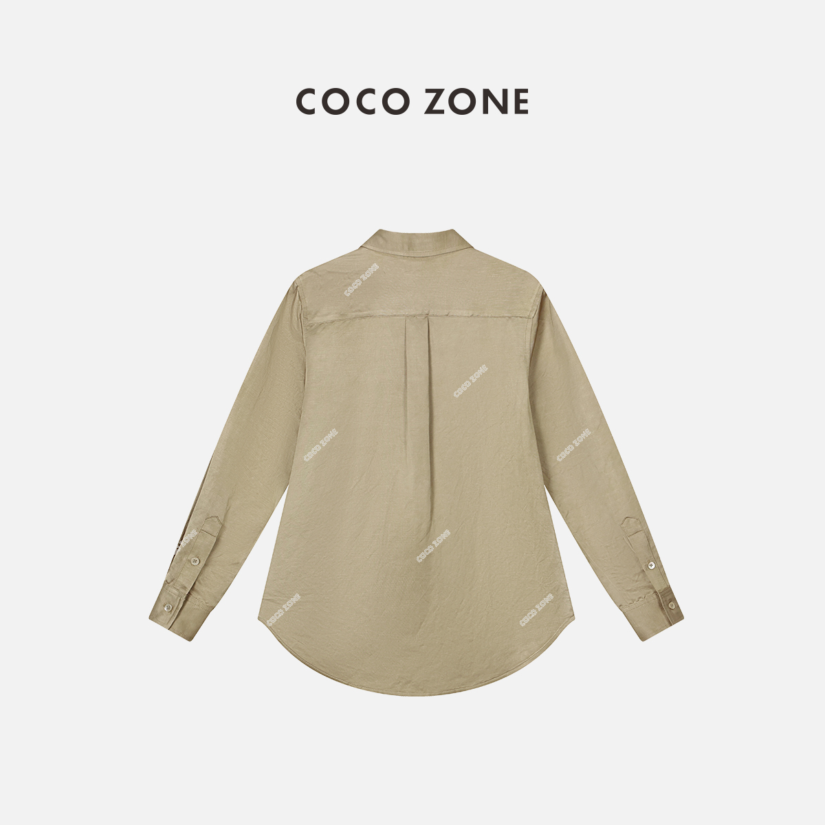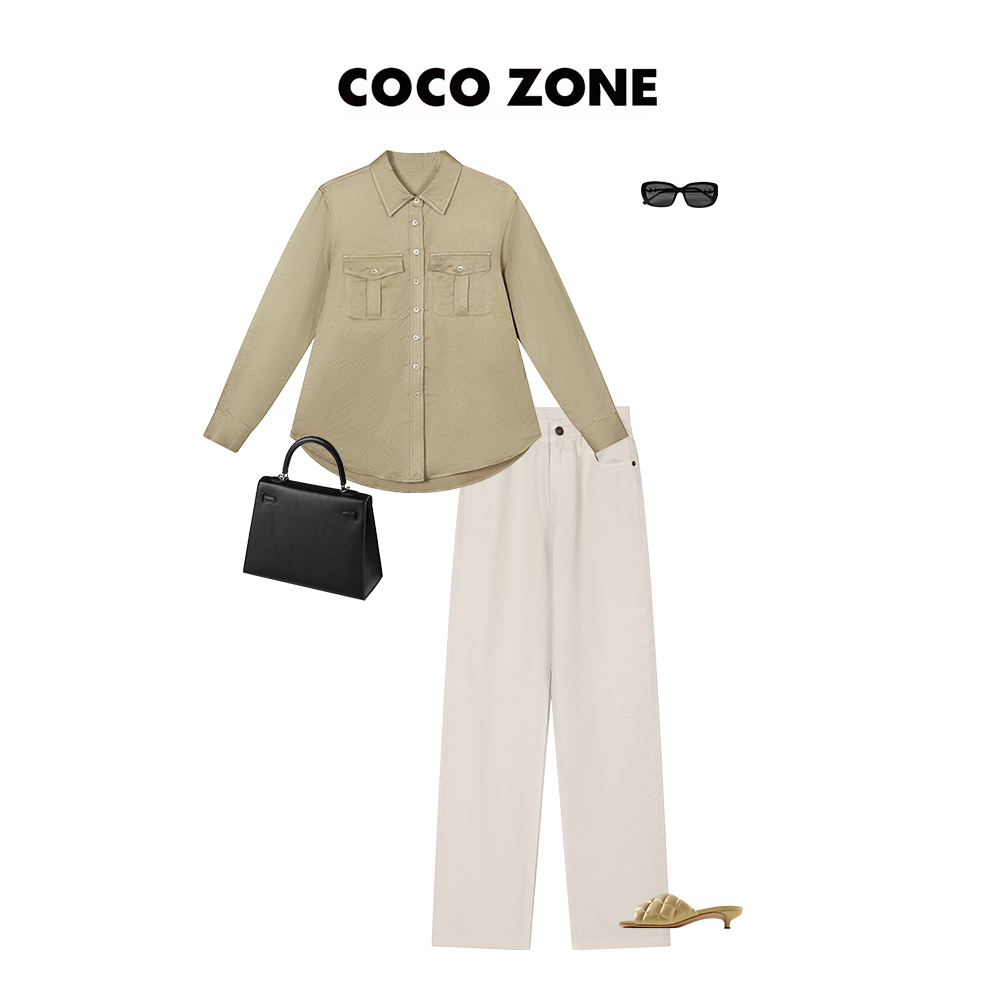 COCOZONE 复古系翻领气质长袖毛呢口袋衬衫春季23C19147