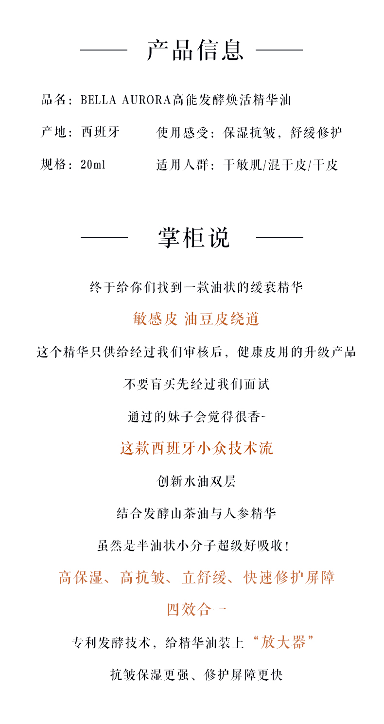 西班牙BellaAurora贝雅欧若拉高能发酵焕活精华油