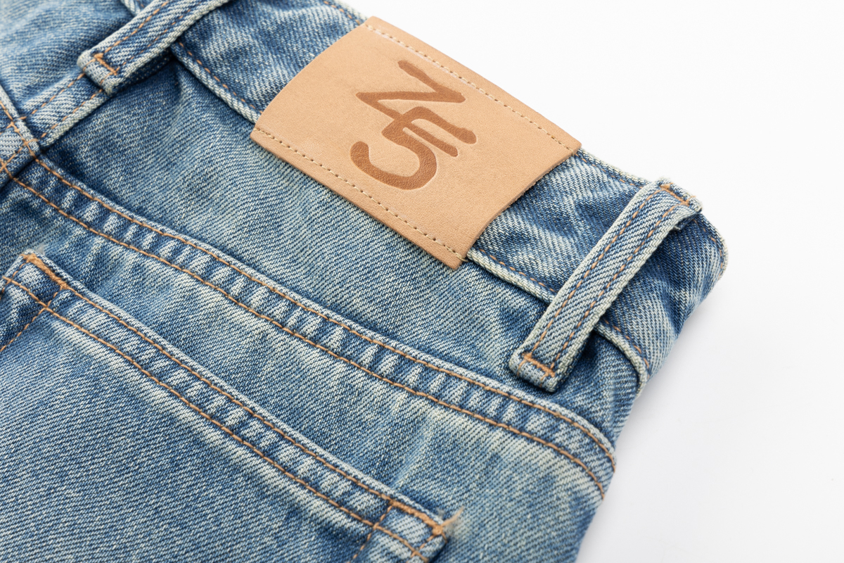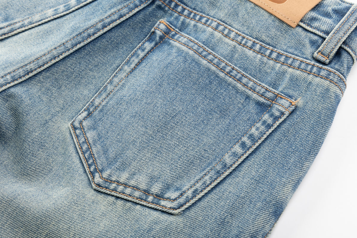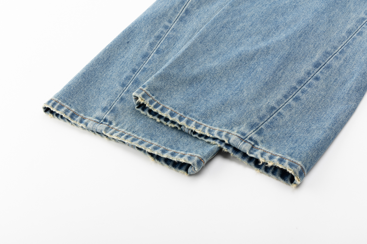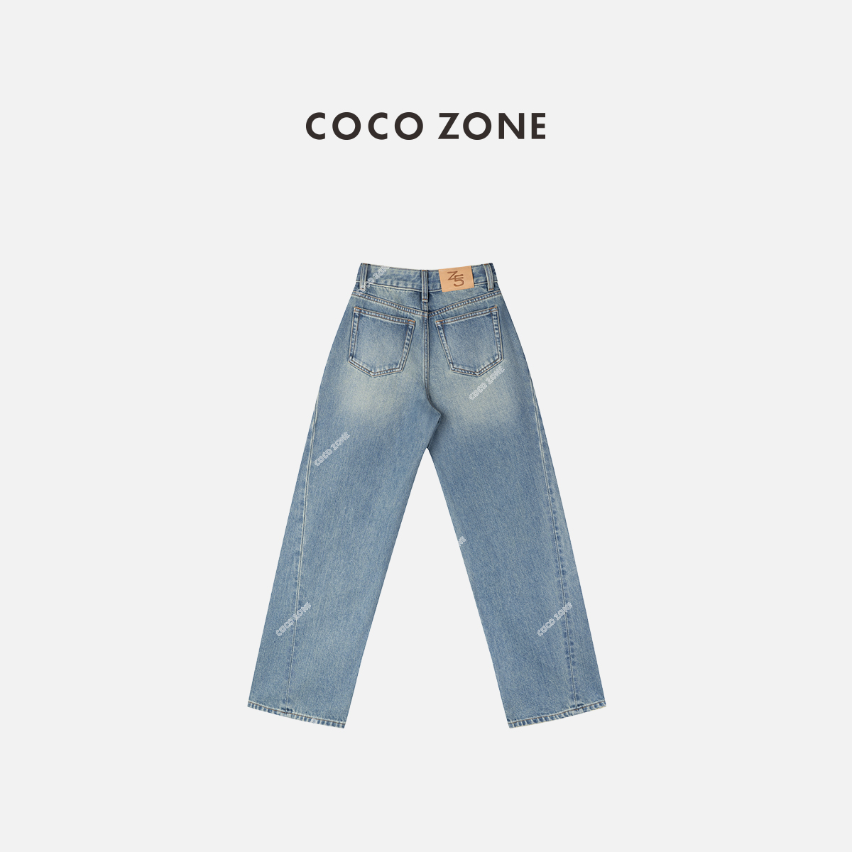 COCO ZONE 复古显瘦蓝色设计感底磨毛直筒牛仔裤CC2D3292
