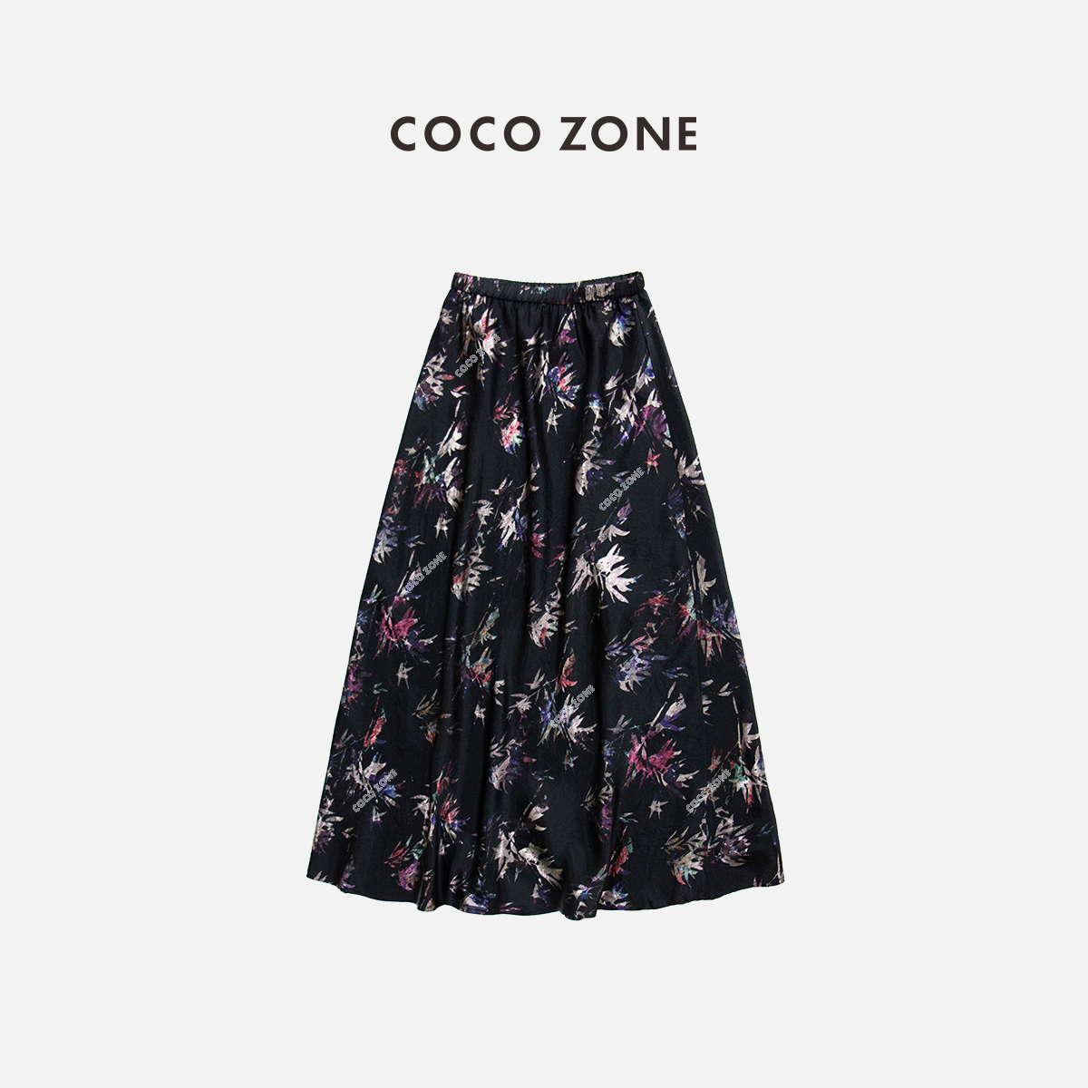 COCO ZONE2024春季时尚黑色提花半身裙褶皱垂感裙子CC1A0499