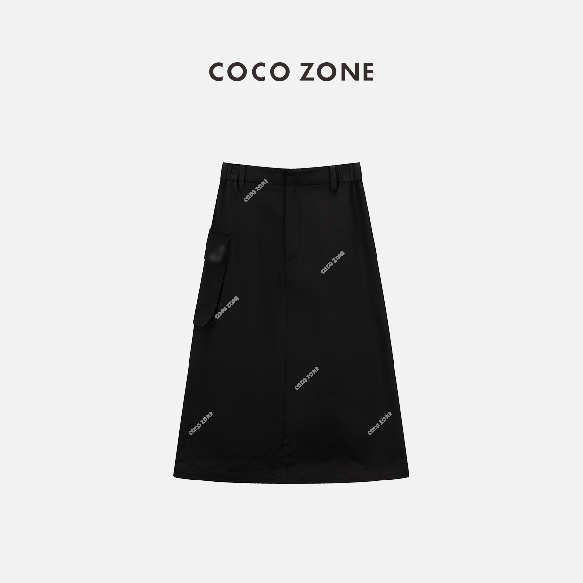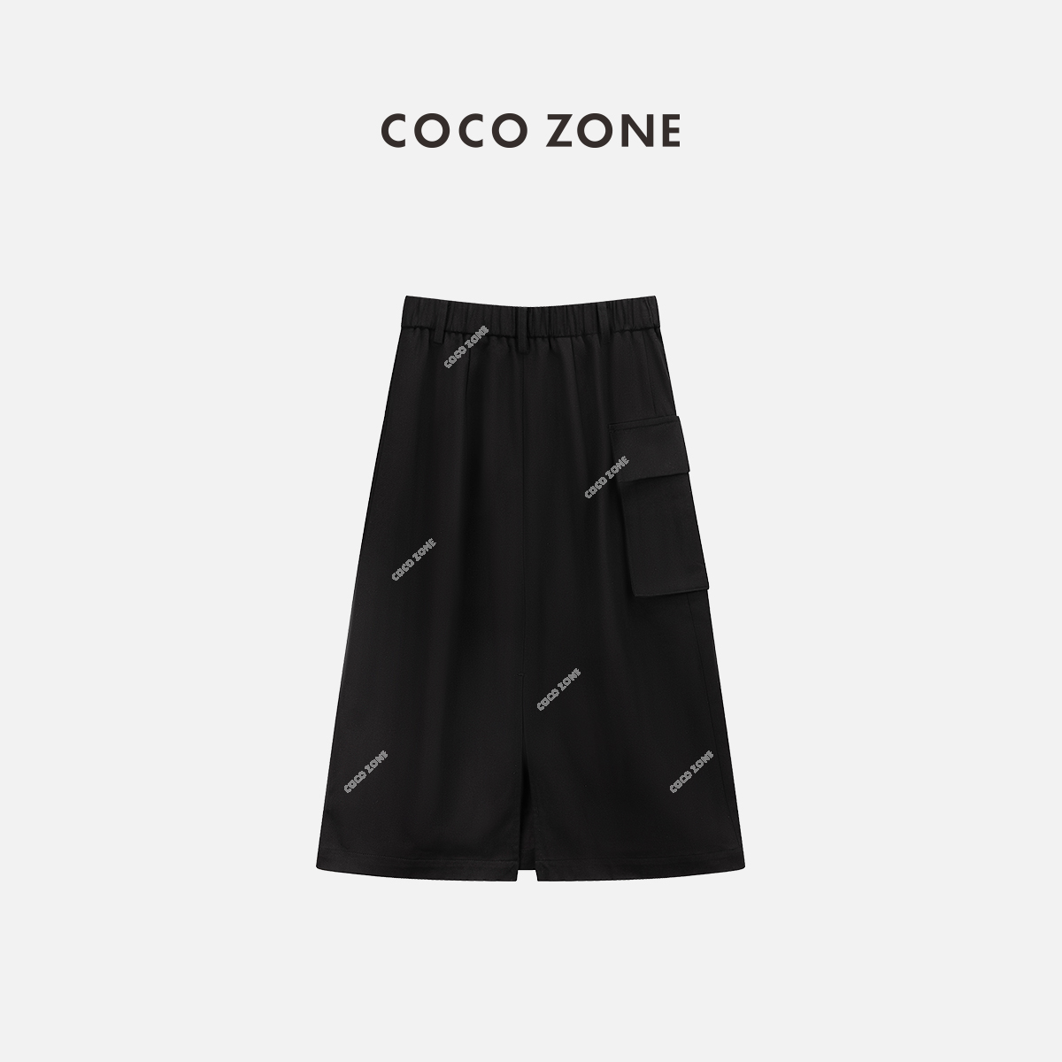 COCO ZONE夏季后松紧腰口袋设计工装半裙显瘦百搭中长裙CC1B0902