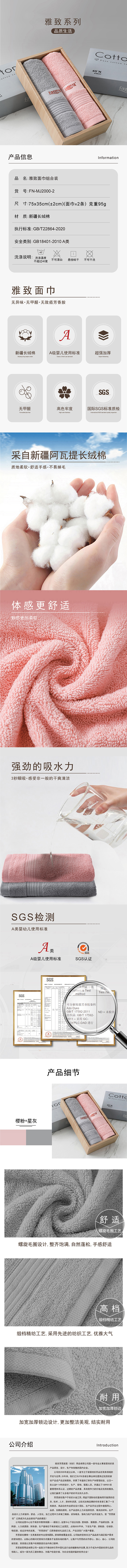 faunen芳恩 FN-MJ2000-2【雅致】面巾组合装 樱粉+星灰