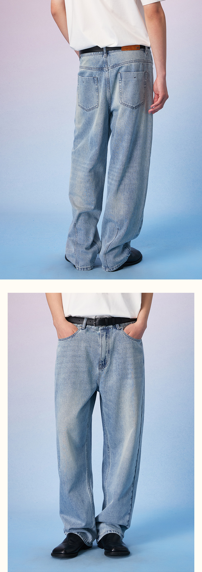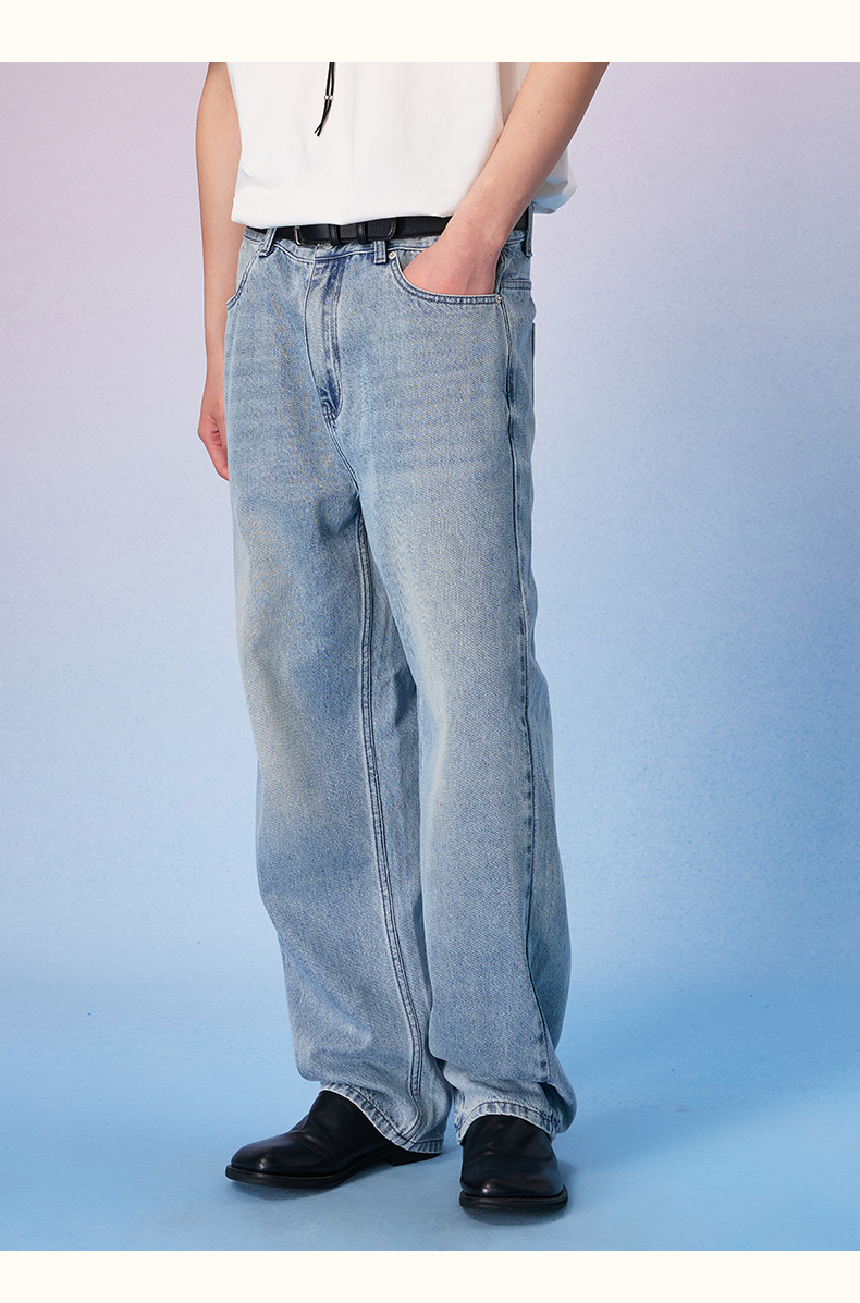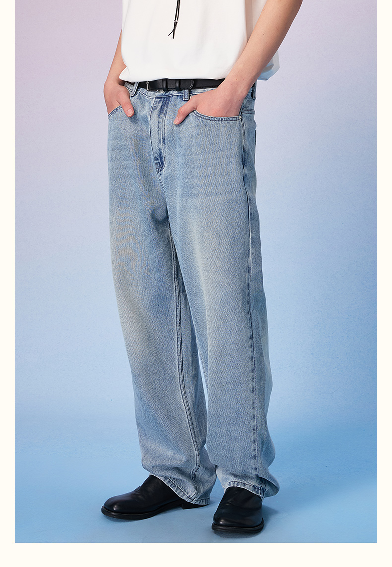 a minimal club重磅【原牛】磨毛皮标直筒牛仔裤调节巴黎扣AM59DT02
