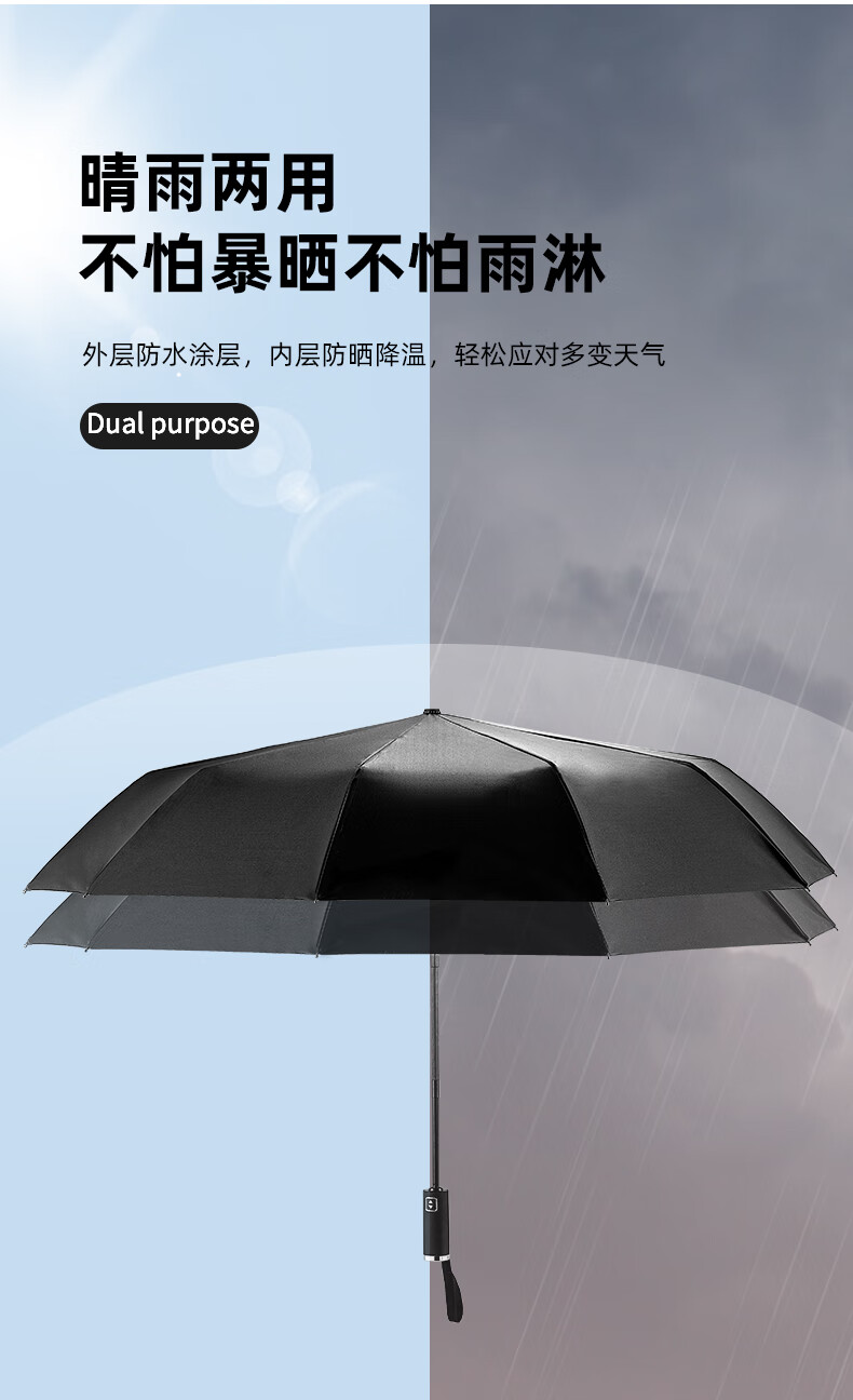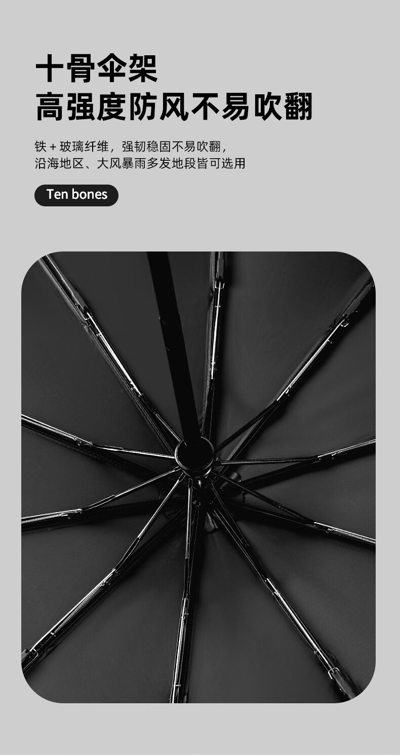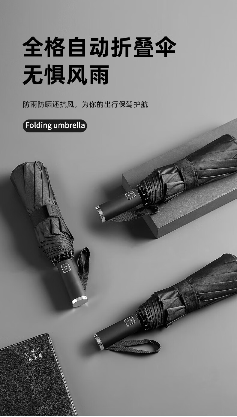 【1000元充值赠品】全格全自动雨伞10骨男士商务折叠伞大号太阳伞遮阳防晒-尊贵黑 黑色 10骨