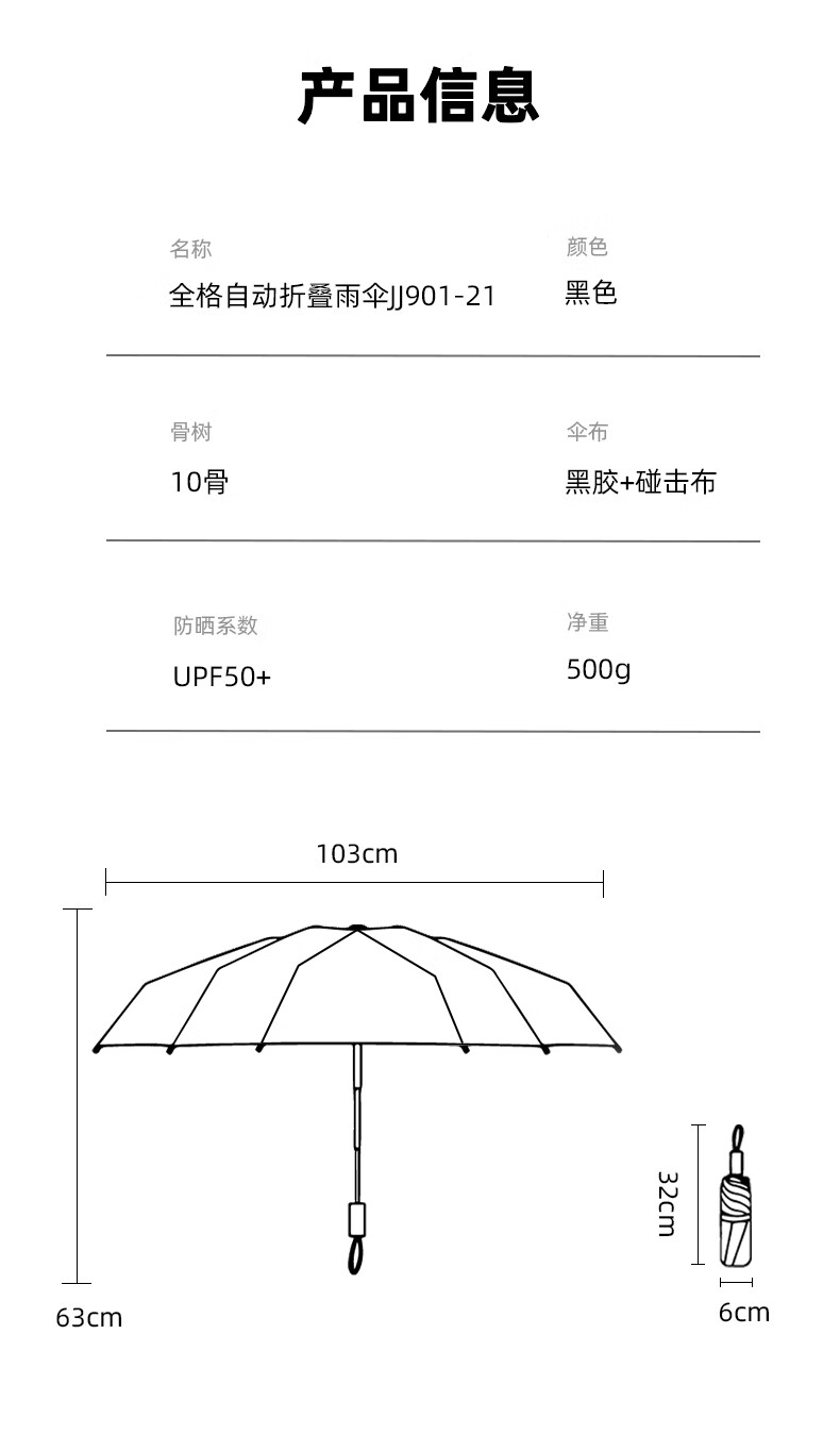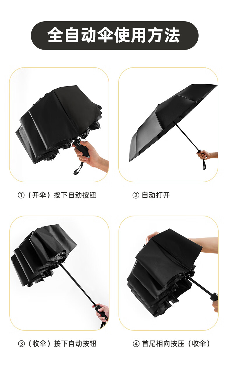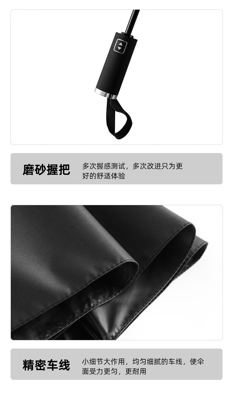 【1000元充值赠品】全格全自动雨伞10骨男士商务折叠伞大号太阳伞遮阳防晒-尊贵黑 黑色 10骨