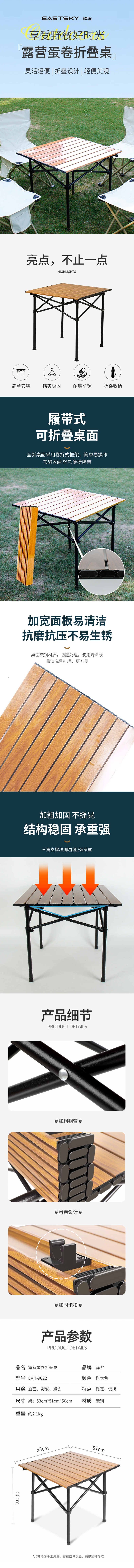 驿客露营蛋卷折叠桌(木色方桌)EKH-9022