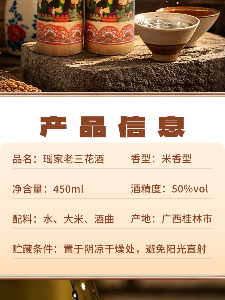 【皇佳香-青云好食城】50°瑶家老三花酒450ml/2瓶装纯粮酿造