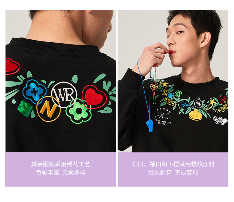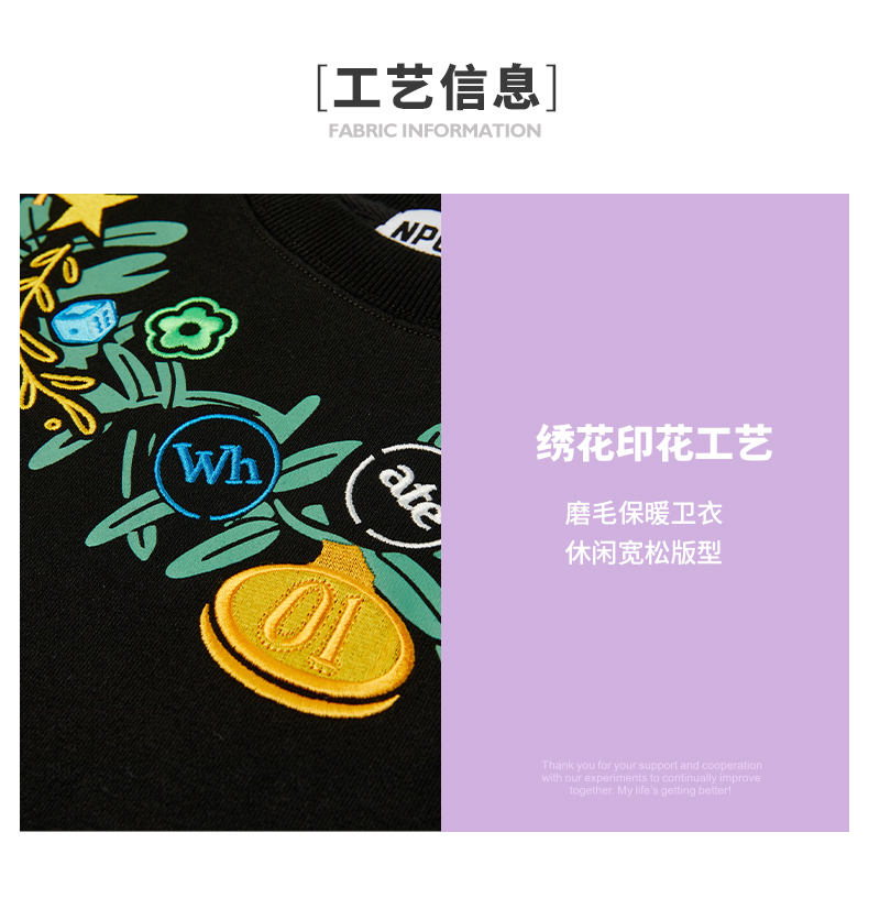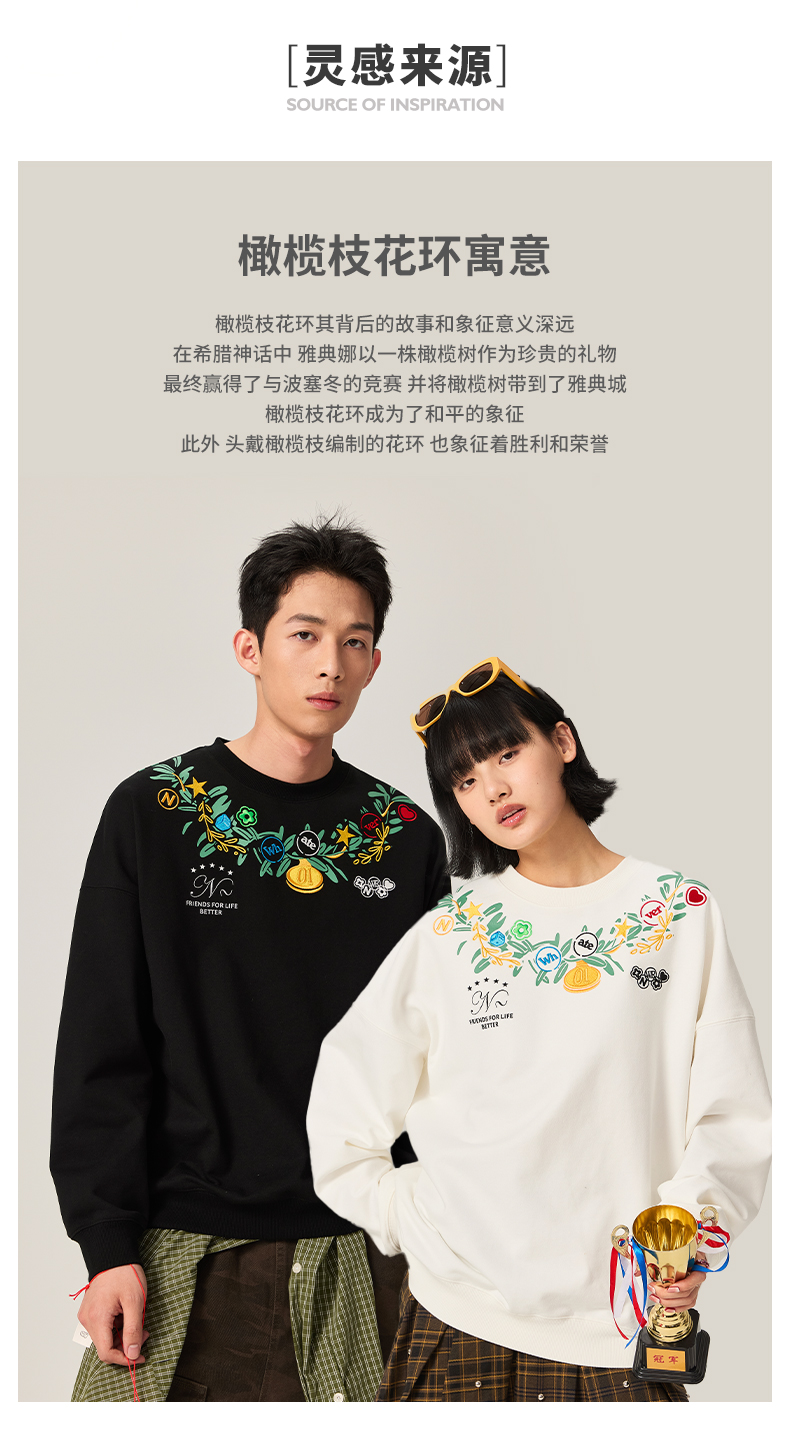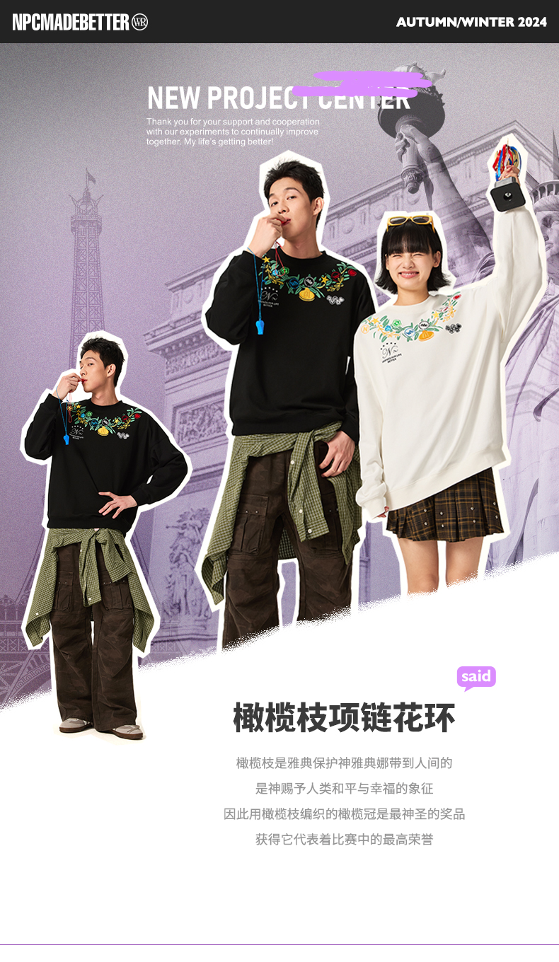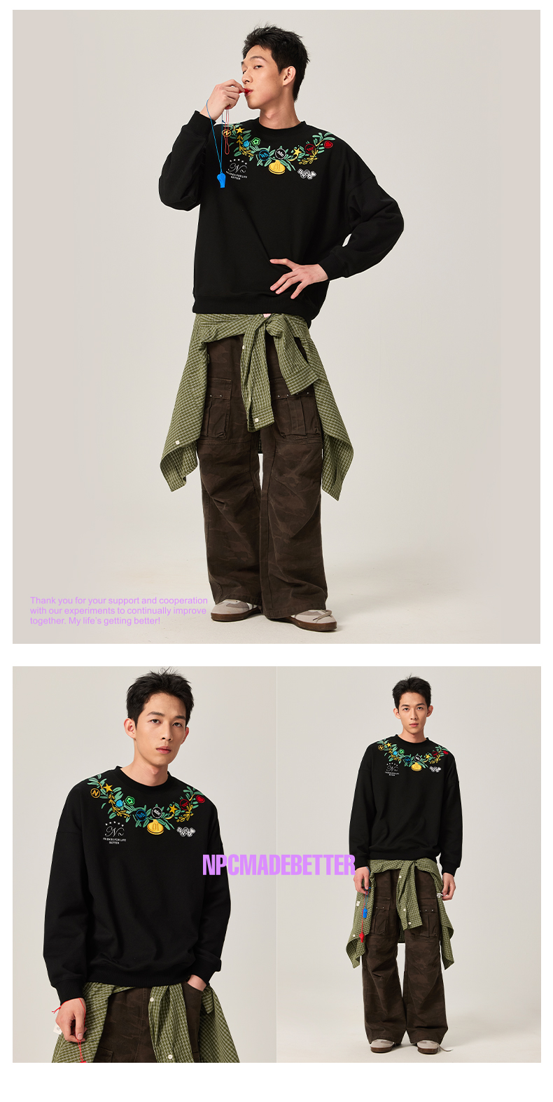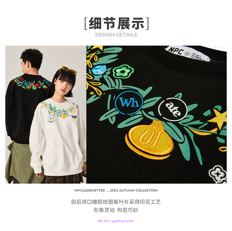 NPC潮牌运动系列重磅430G刺绣橄榄枝花卉圆领卫衣男新款NP47ST03