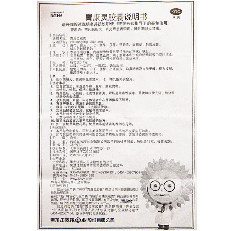 葵花胃康灵胶囊24粒胃疼慢性胃炎嗳气柔肝和胃胃痛胃胀脾胃虚弱