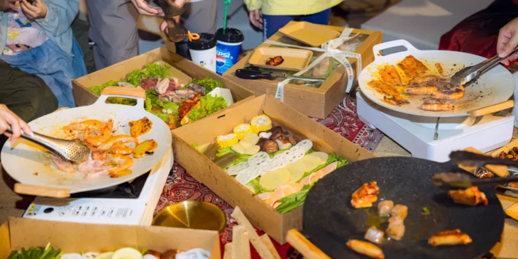 晚上:夜幕降临之后,每个房车管家将会为每个家庭准备一场【烤肉盛宴】,星光、月色、烤肉,让你领略不一样的沙漠露营体验。
