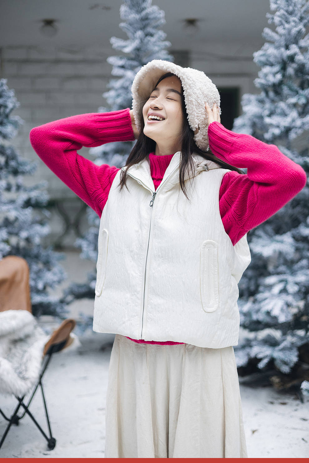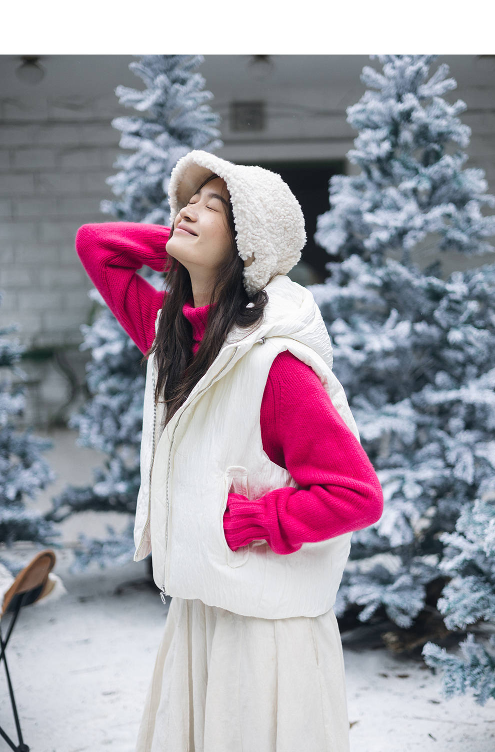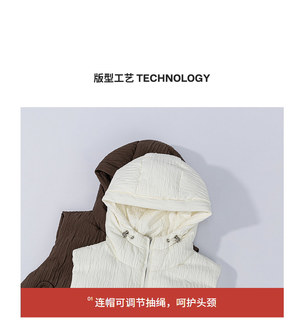 绽放540朵/95鹅绒肌理感连帽羽绒马甲女百搭冬季新款宽松厚款马夹