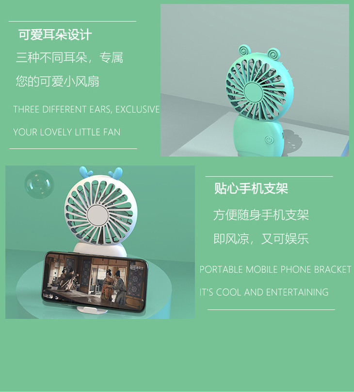 【巴掌大小!还能当手机支架】可充电多功能mini口袋风扇,手持桌面两用,随时随地把风带上!三档可调,萌宠便携式电风扇,超静音,清爽一夏不怕花妆