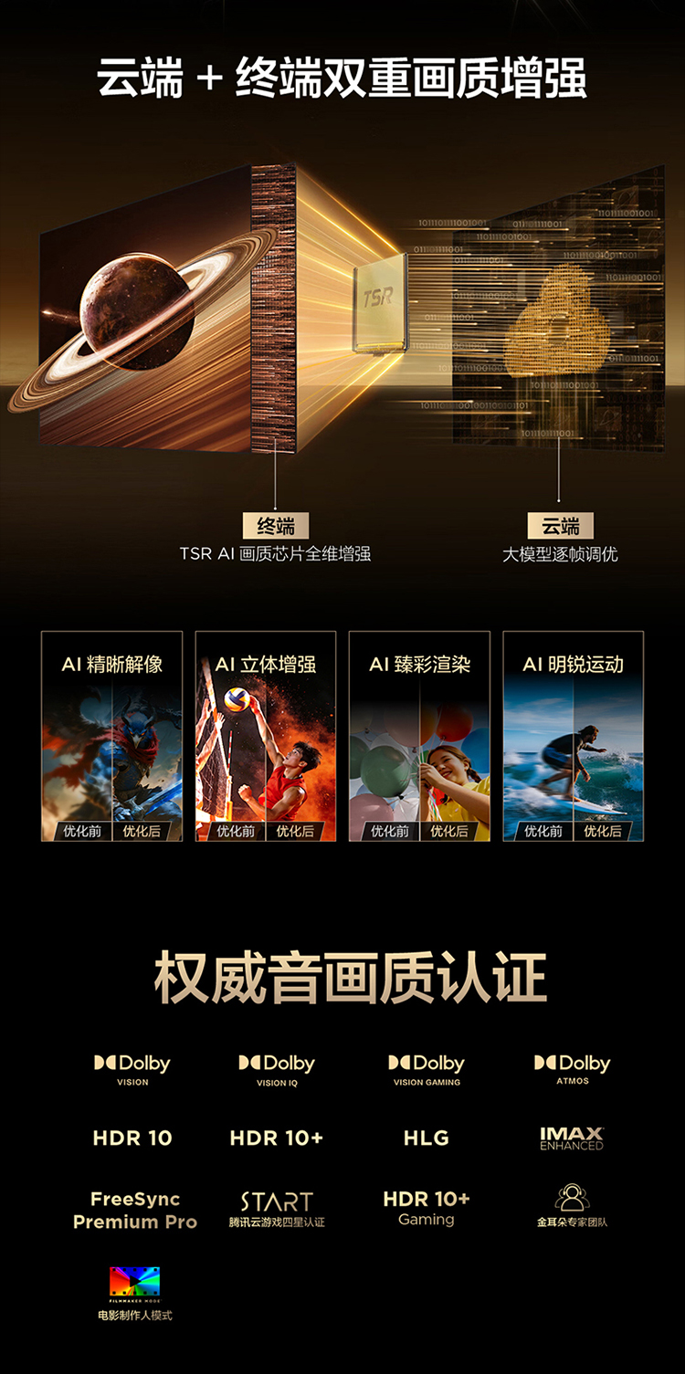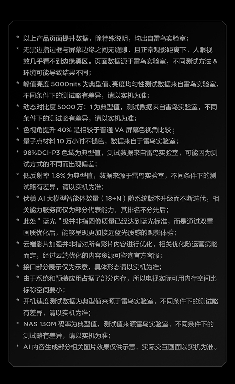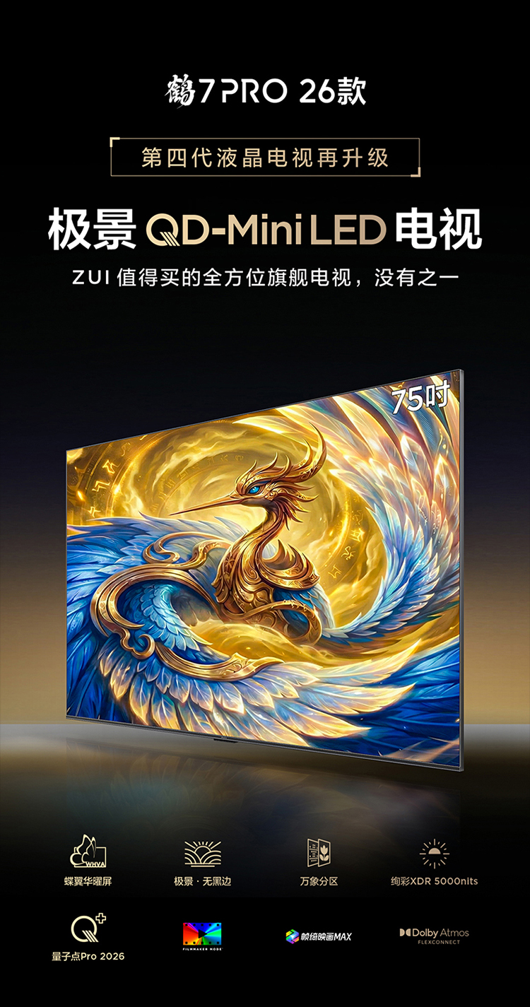 【FFALCON雷鸟】75鹤7 PRO 26款 75英寸 极景QD-MiniLED 蝶翼华曜屏 万象分区 平板电视机75R79A Pro