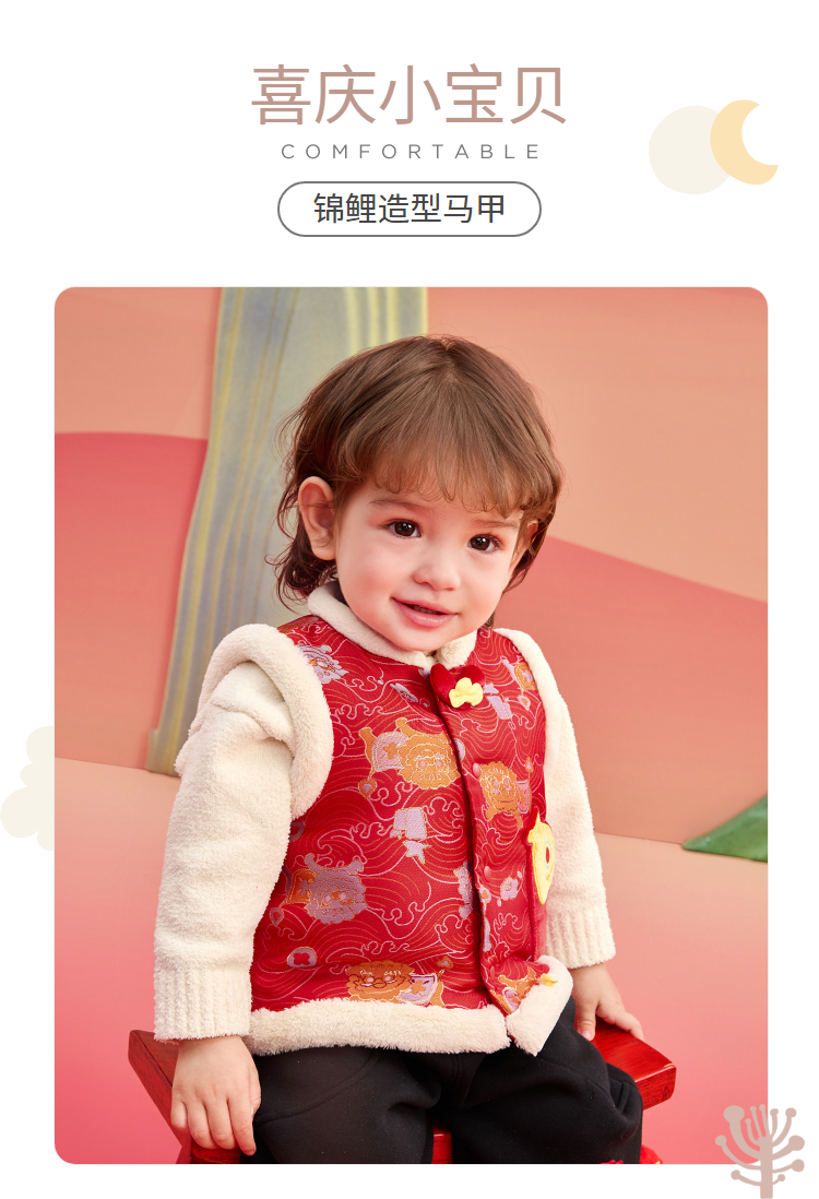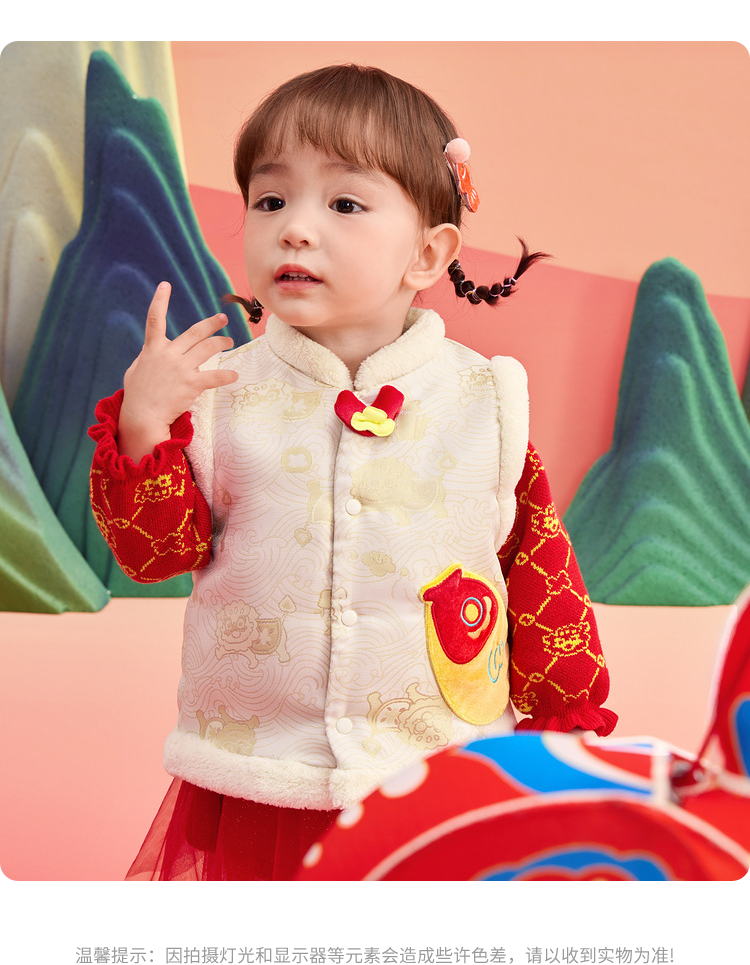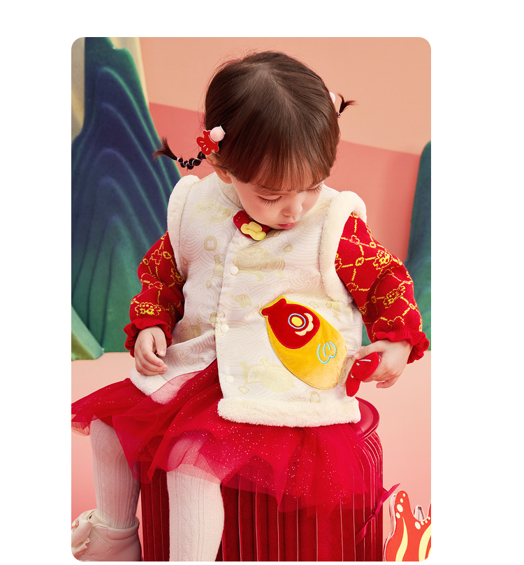 巴拉巴拉童装儿童马甲婴儿背心宝宝春秋2025新款新年季新中式萌趣