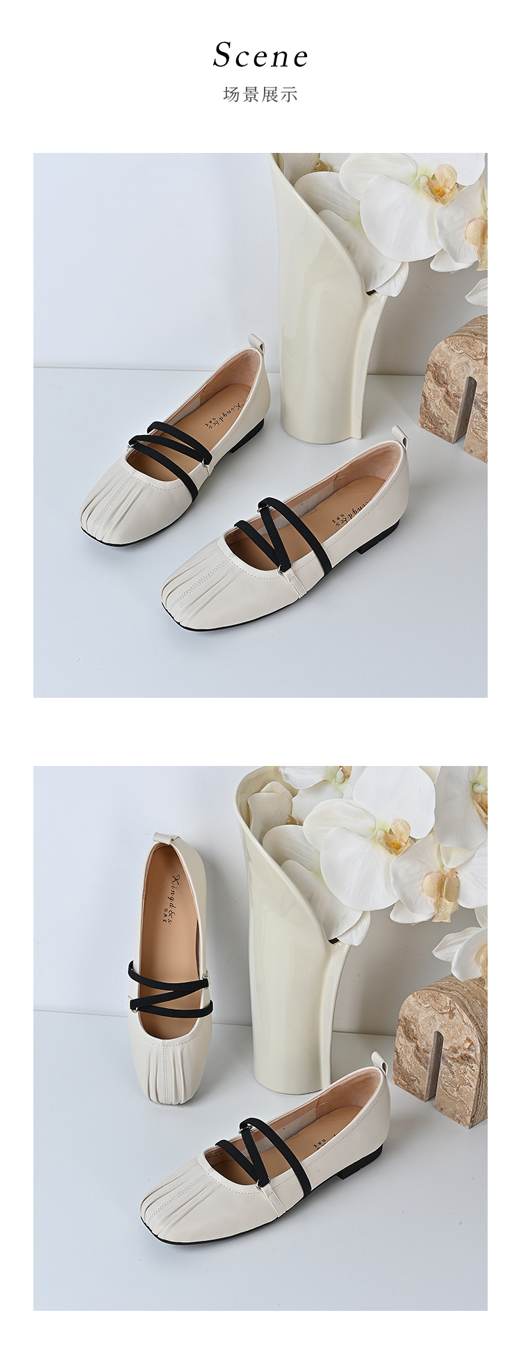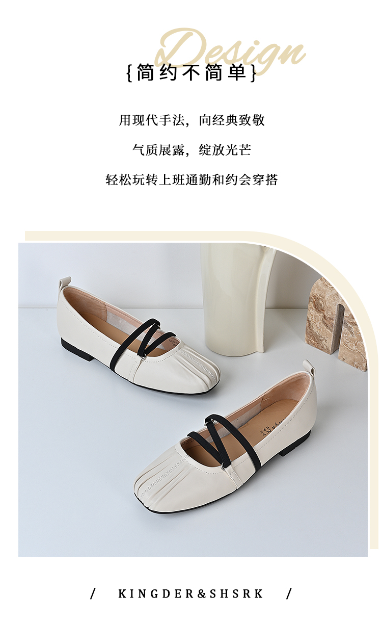 经典鲨2024年秋新品时尚方头平底浅口舒适气质芭蕾舞单鞋女KG25-D37181
