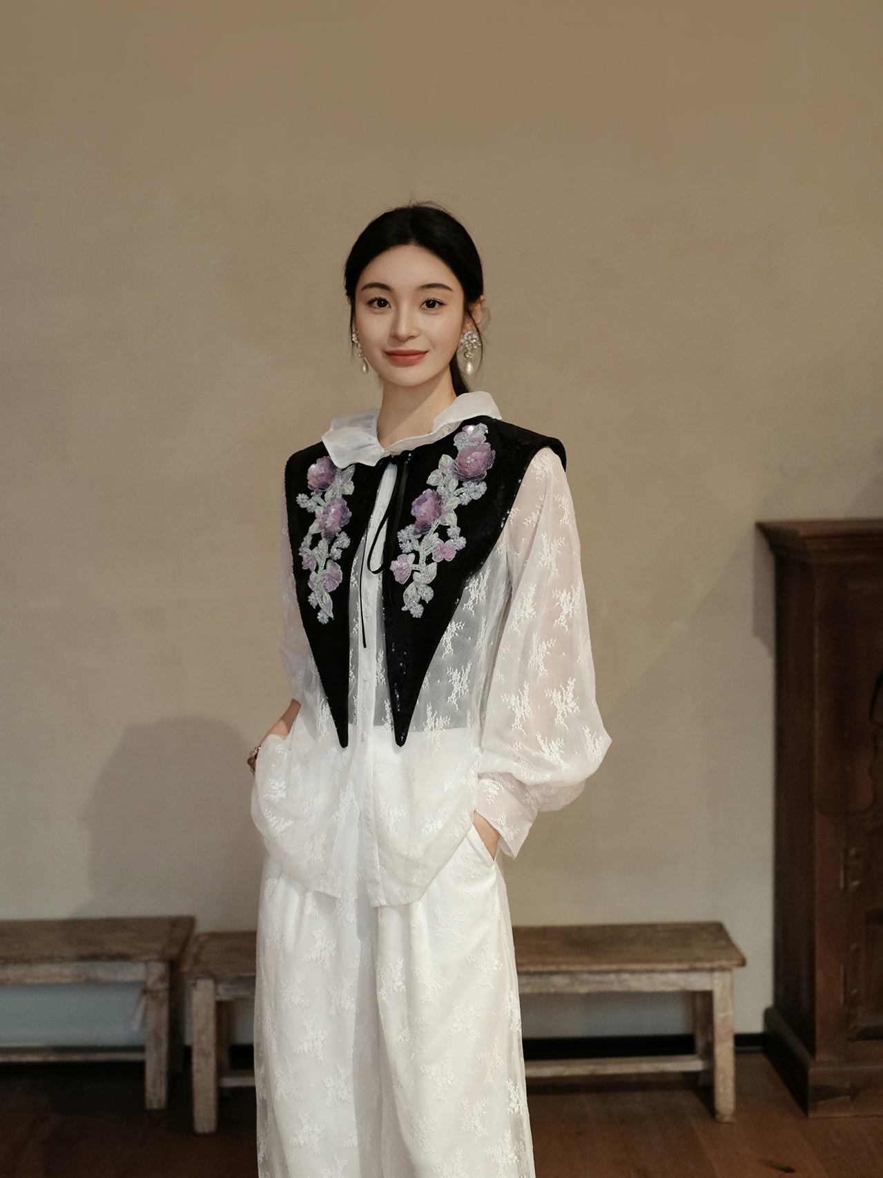 盛唐牡丹 | 时髦玉扣花香引蝶对襟女衬衫