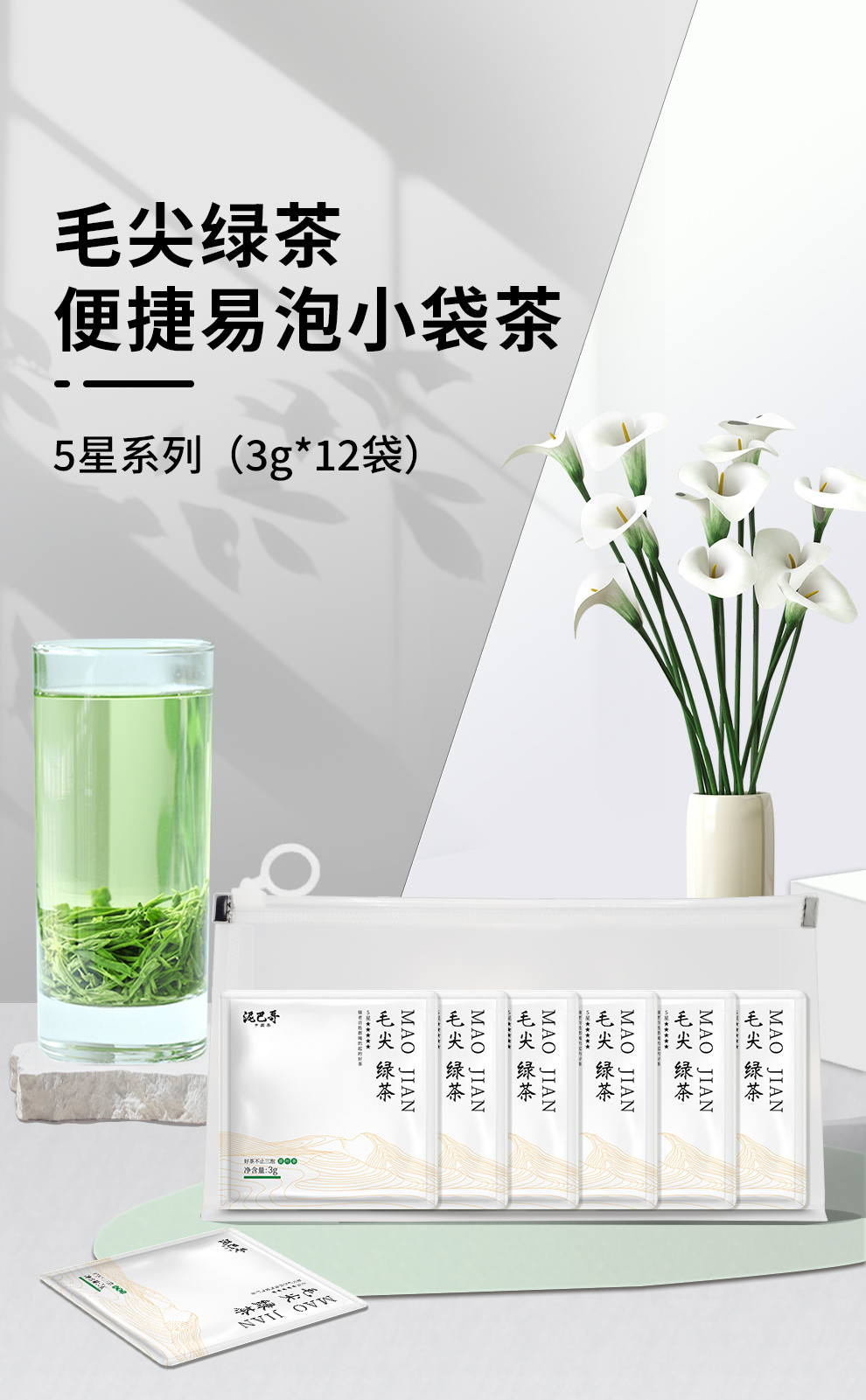 2026新茶5星毛尖小泡茶 独立包装 原叶绿茶12袋共36g