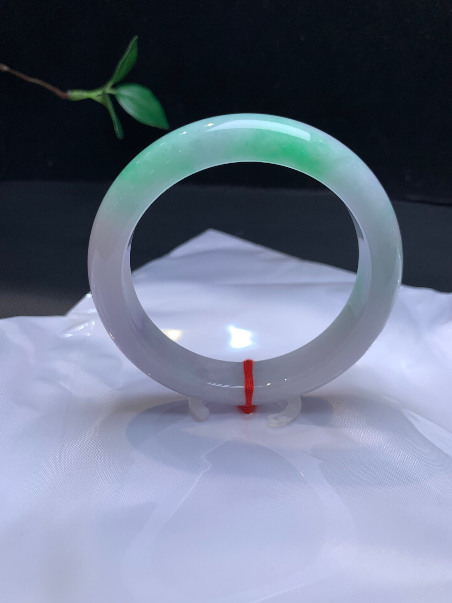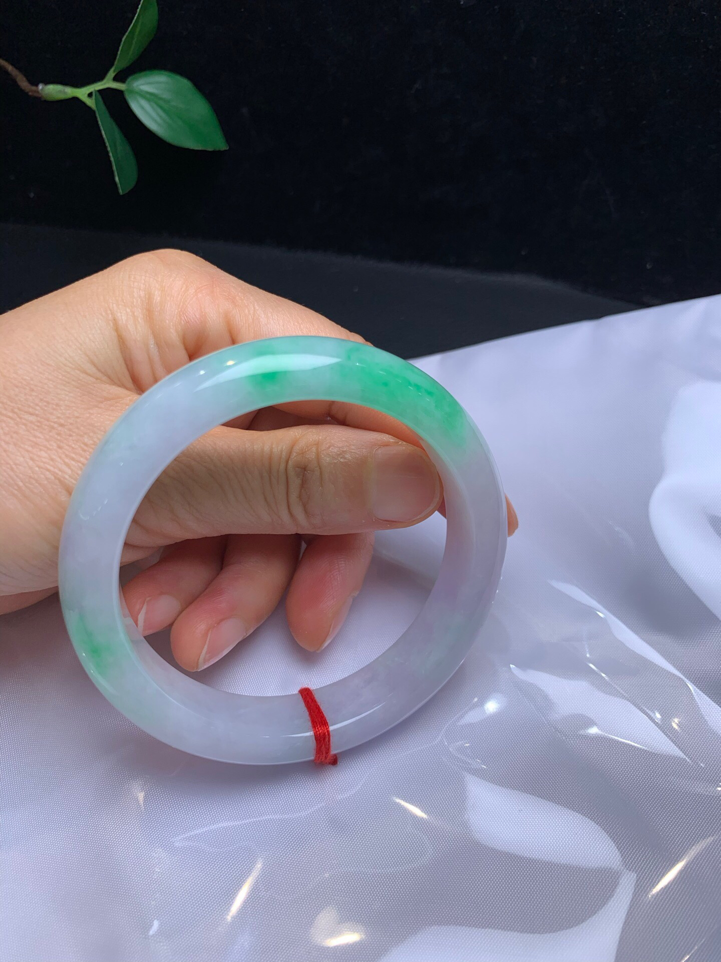 612992,58.5 飘绿手镯,俗称:白底青,一大截阳绿色,整条干净清爽,内圈有纹,不扣手,超值价💰45000 #优石客珠宝#香玉荟萃