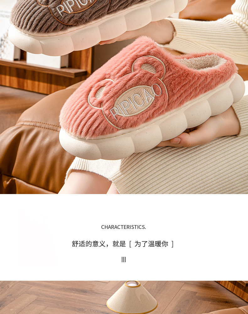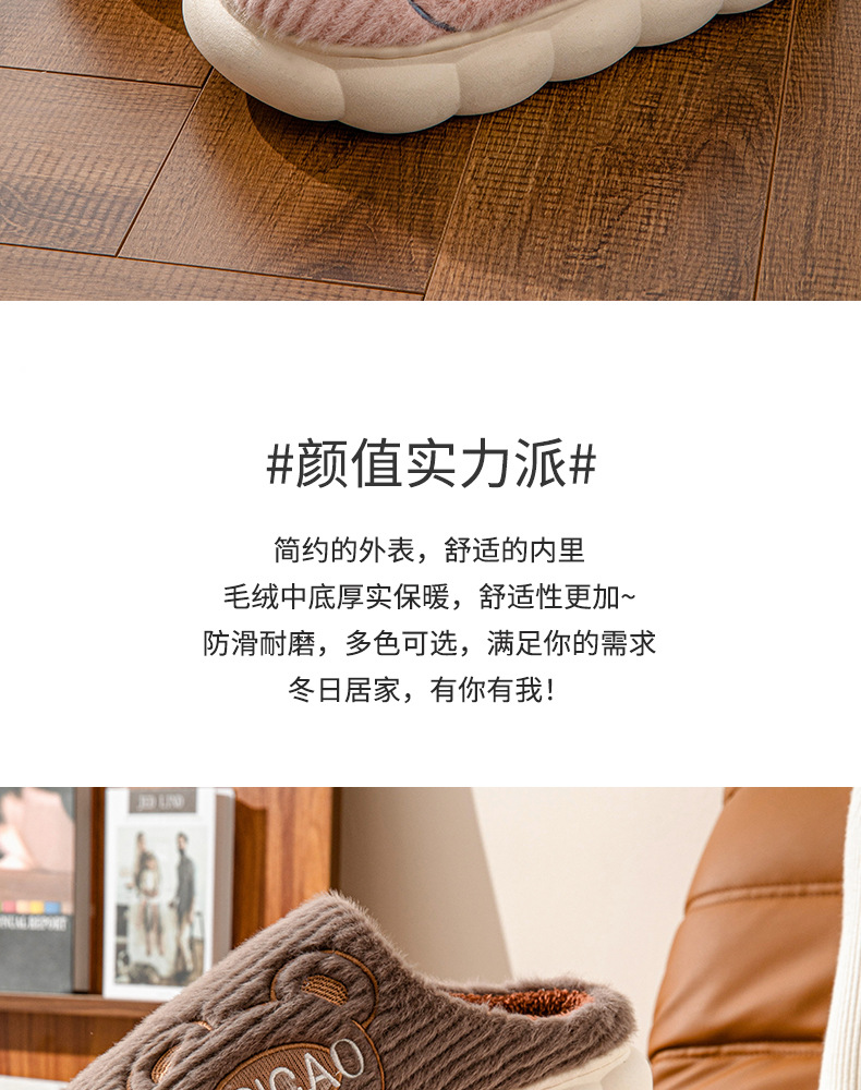 【毛绒绒的触感,暖你整个冬天】秋冬新款居家舒适棉踩屎感拖,恒温保暖 优质棉绒 舒适透气,加厚底室内家居防滑情侣拖鞋男士冬天月子鞋外穿QQ